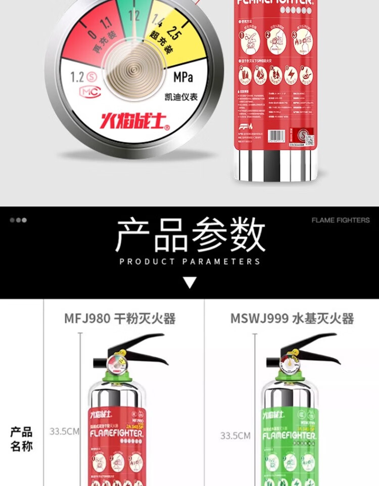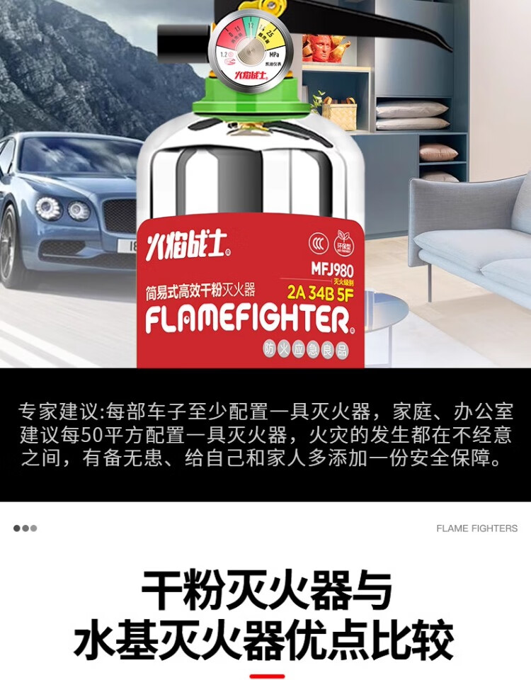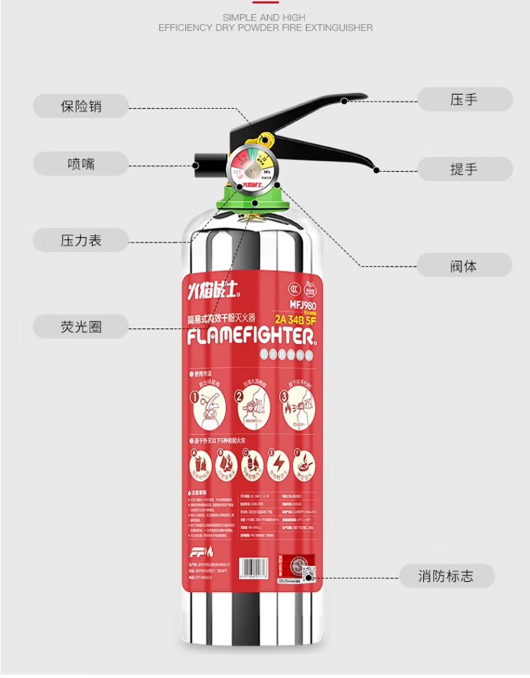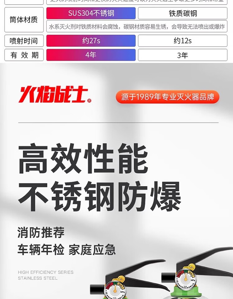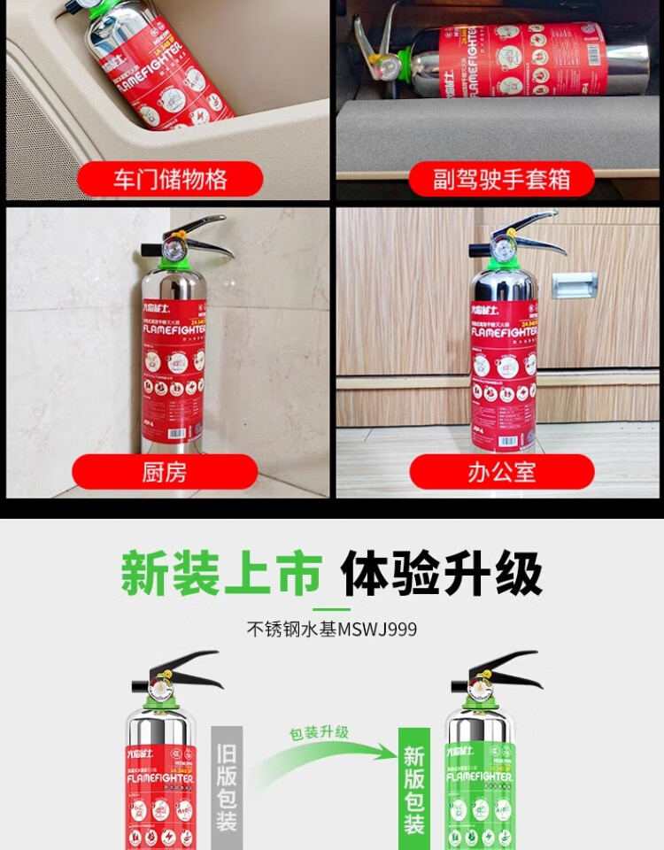 Flame Warrior stainless steel vehicle-mounted water-based fire extinguisher 2025 new private car household small explosion-proof 1L water-based environmentally friendly stainless steel rust-proof and explosion-proof