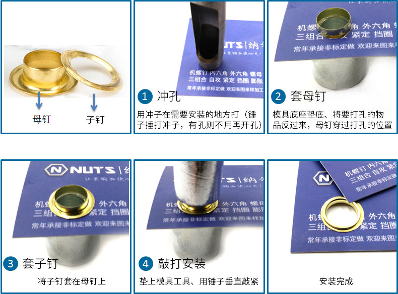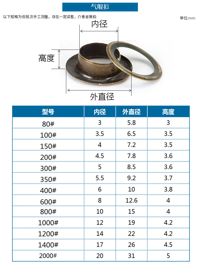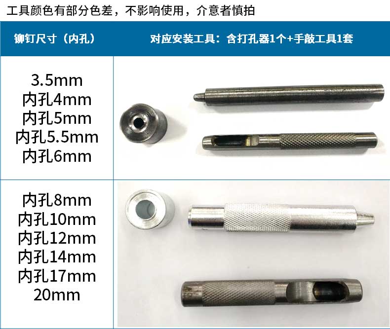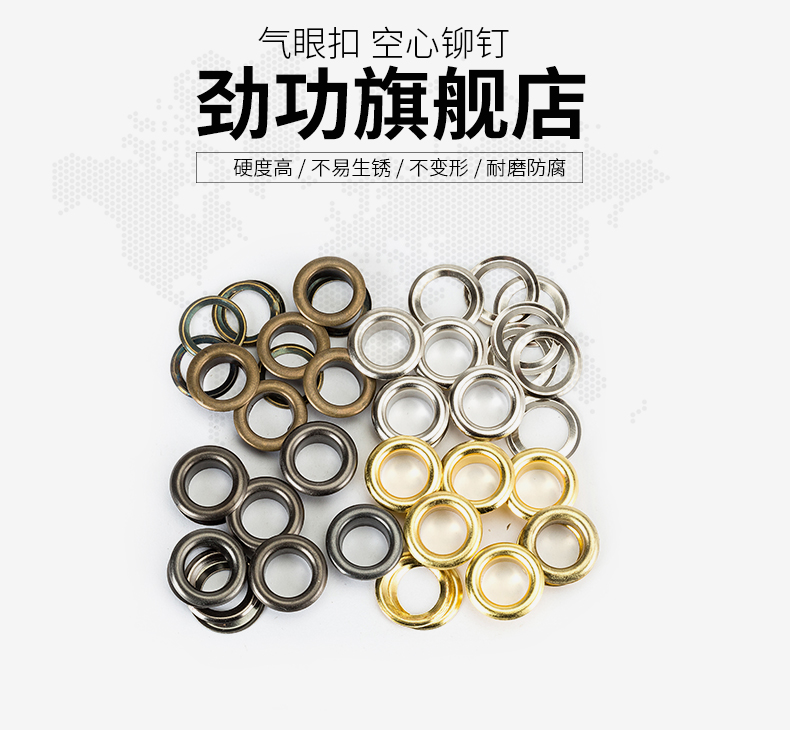 Jinggong Copper/Iron Air Eye Buckle Iron Eye Buckle Installation Tool Set Anti-rust Clothes Eye Buckle Shoe Eye Button Hollow Rivet Iron 6mm 200 Sets Silver