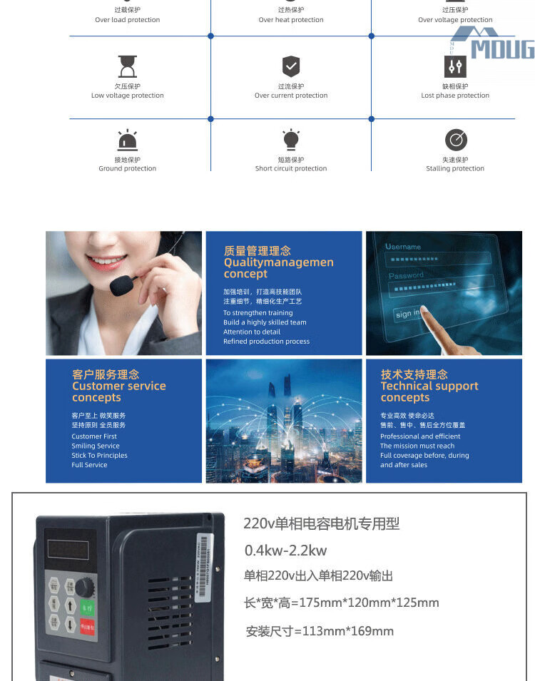 Frequency converter single-phase 220v motor capacitor motor single-input single-output fan water pump temperature control constant voltage special speed regulator single-phase capacitor motor 220v-0.4kw