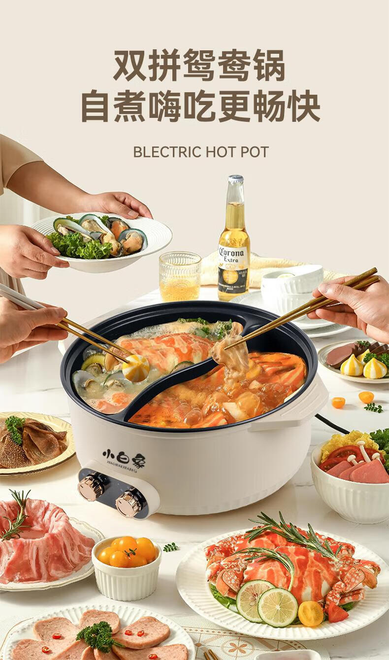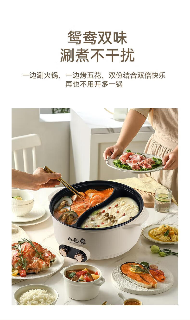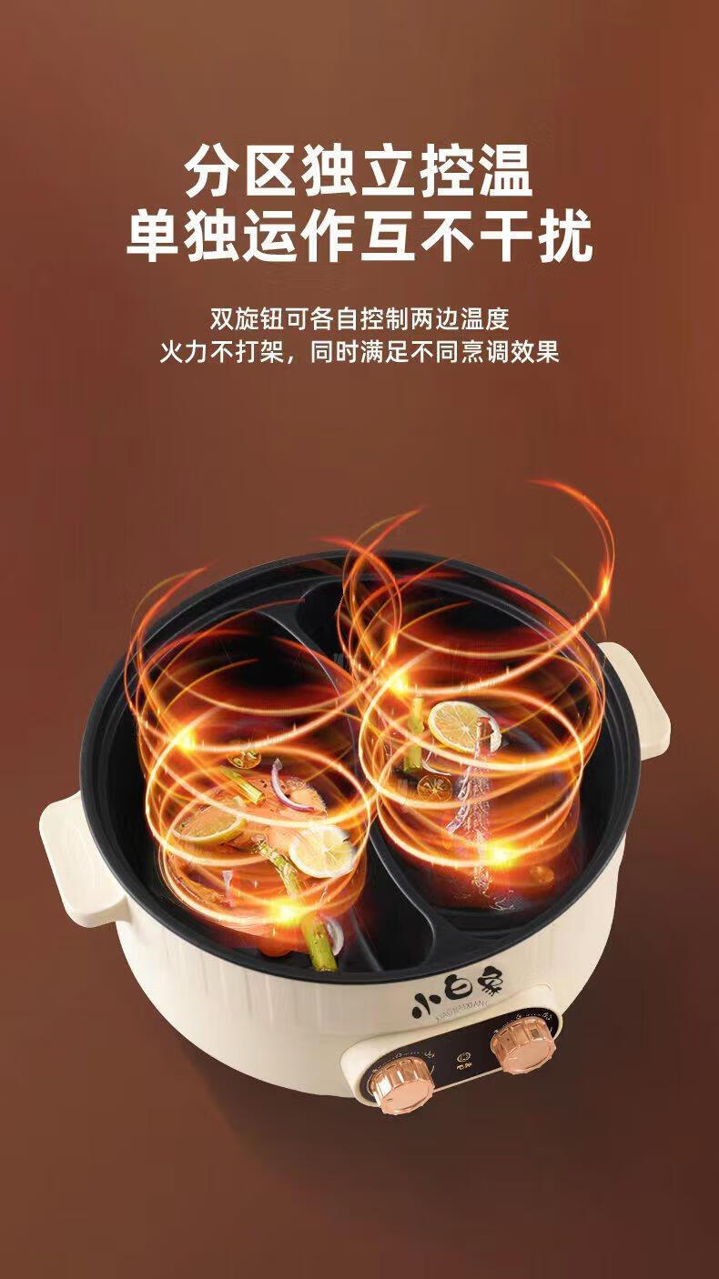 Xiaobaixiang 7L Large Capacity High Power Yuanyang Pot Household Electric Hot Pot Dual Temperature Control Multi-Function Large Capacity Dual Temperature Control Yuanyang Large Capacity Dual Temperature Control Yuanyang 32cm Standard