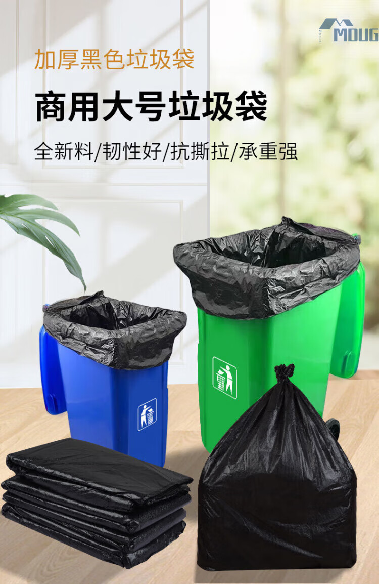 Large garbage bag large commercial thickened black plastic catering kitchen sanitation property hotel 60 extra large 80 extra large 60 80cm 3.5 wire 100 pieces gift 30 bags thickened