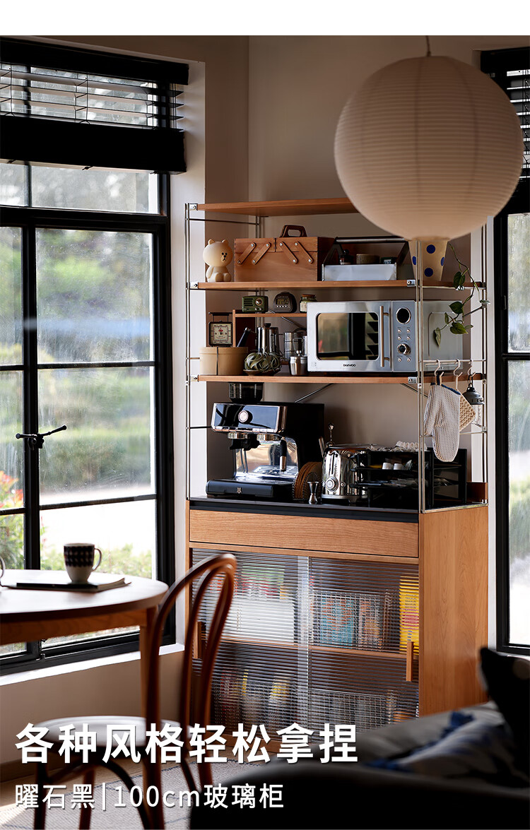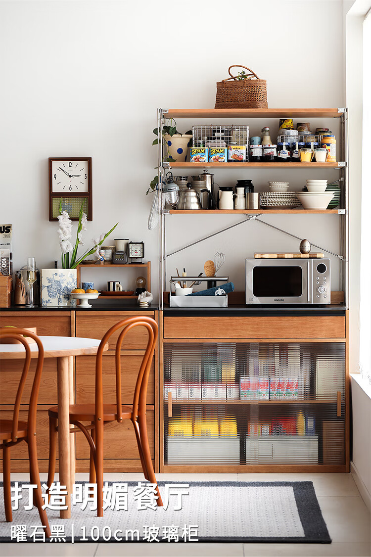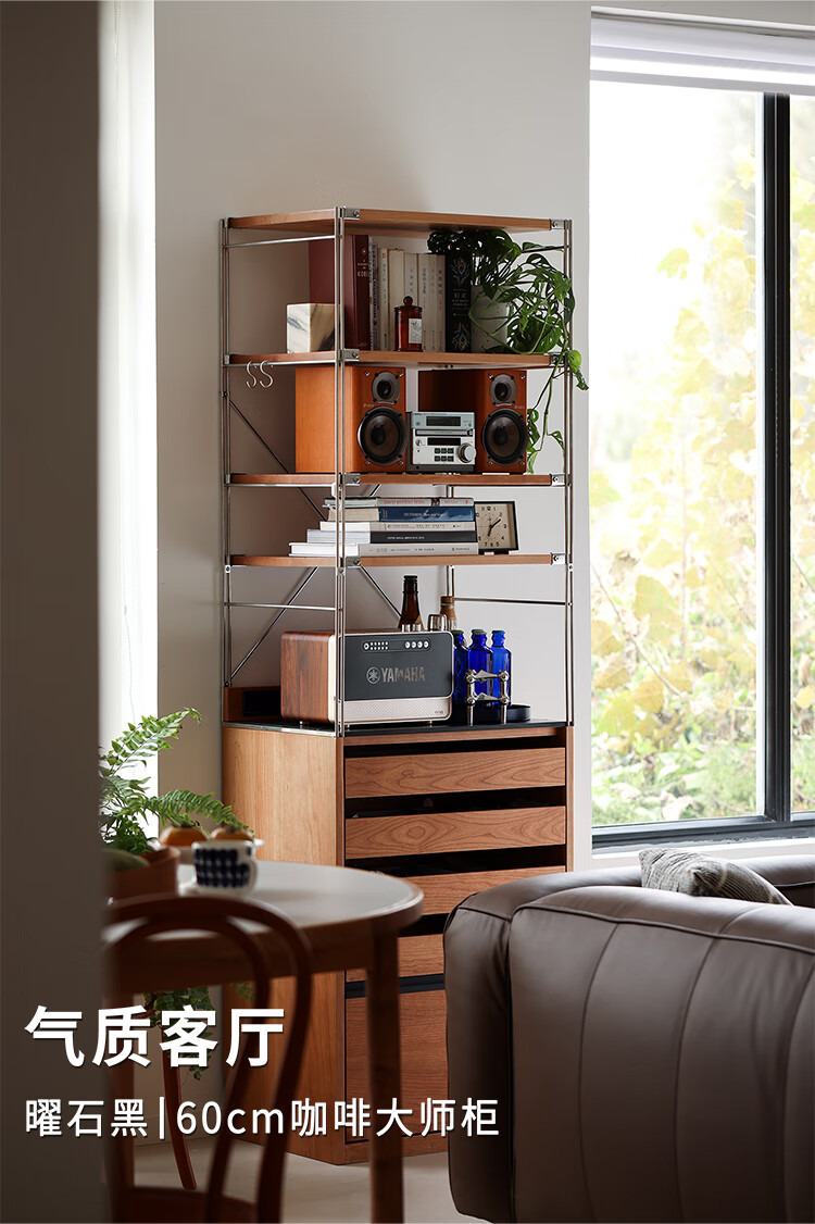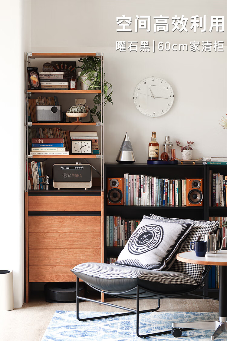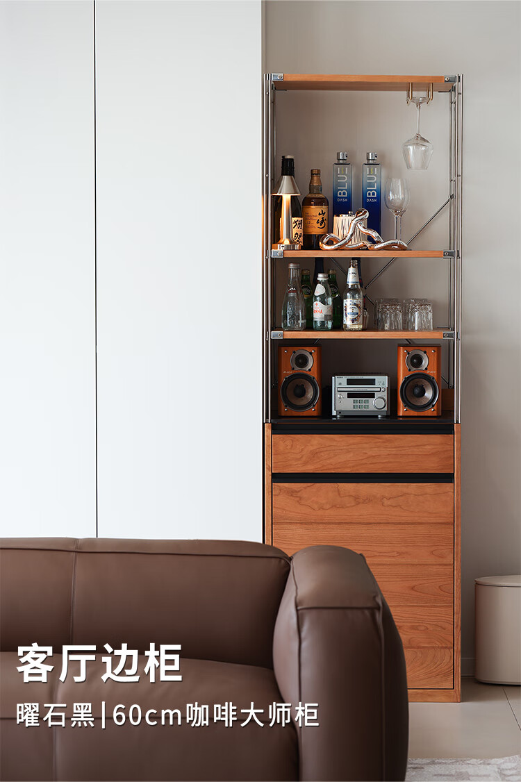 Fu Sheng Ji Fu Sheng Ji/sideboard wall-mounted solid wood stainless steel cabinet living room wine cabinet multi-functional storage cabinet extremely narrow 60cm storage cabinet/obsidian black