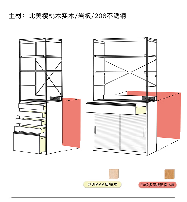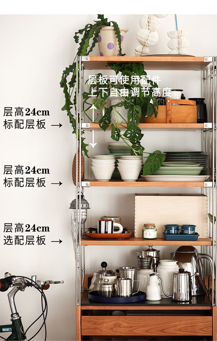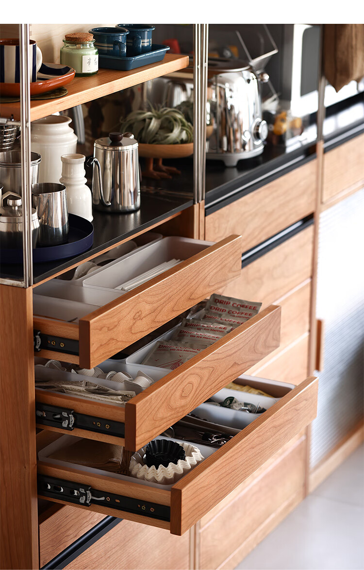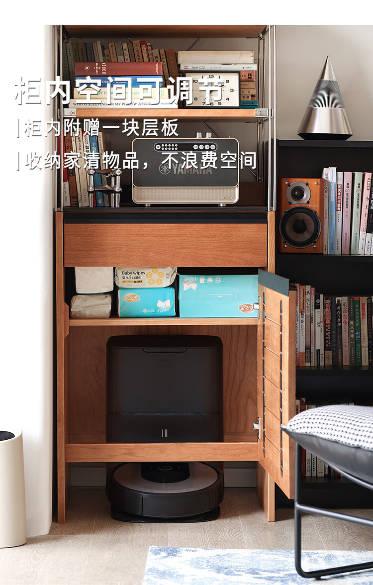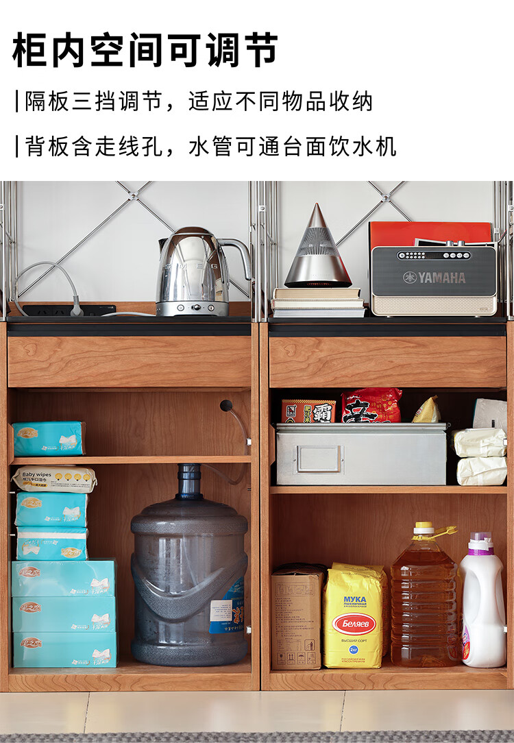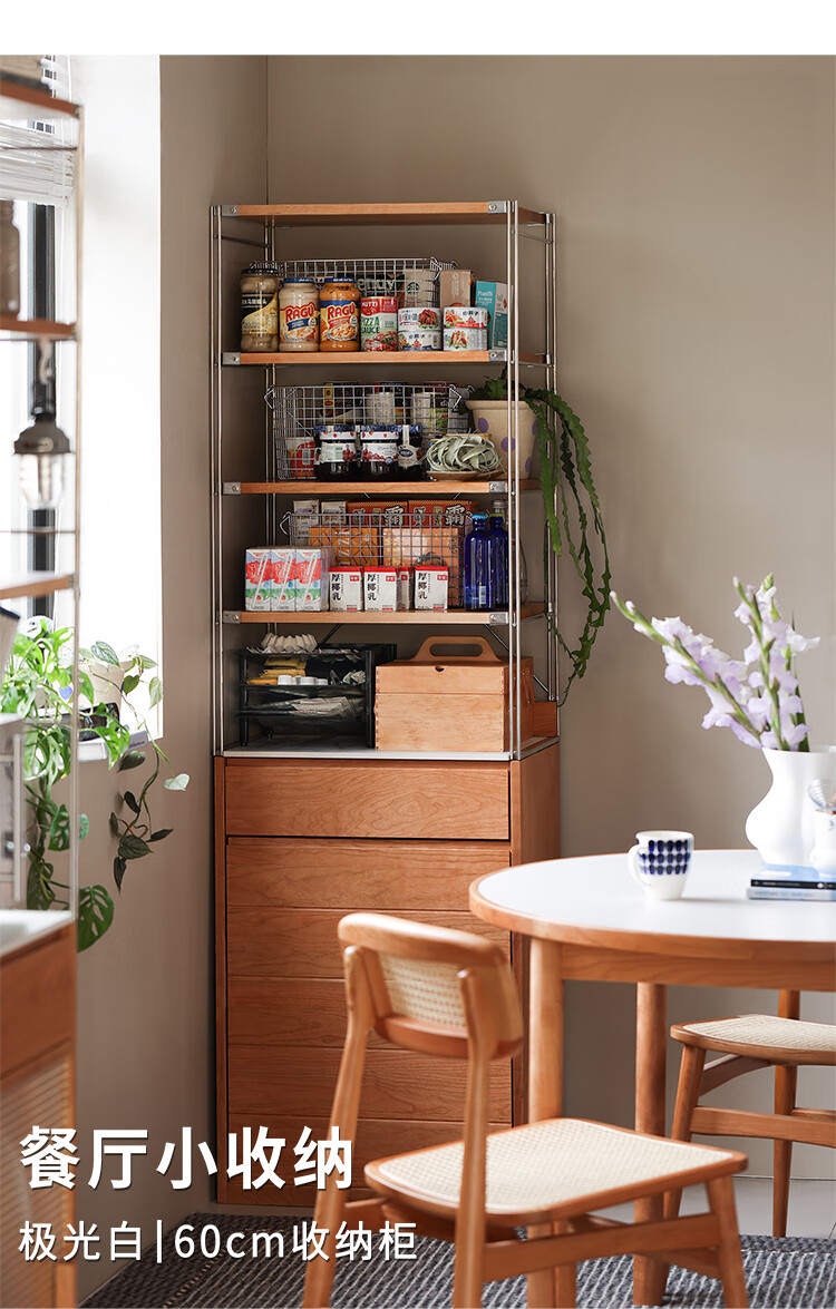 Fu Sheng Ji Fu Sheng Ji/sideboard wall-mounted solid wood stainless steel cabinet living room wine cabinet multi-functional storage cabinet extremely narrow 60cm storage cabinet/obsidian black