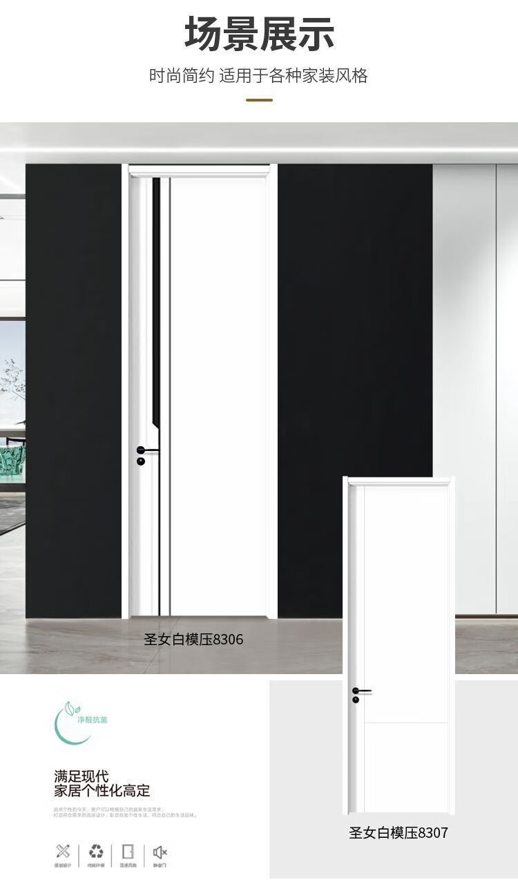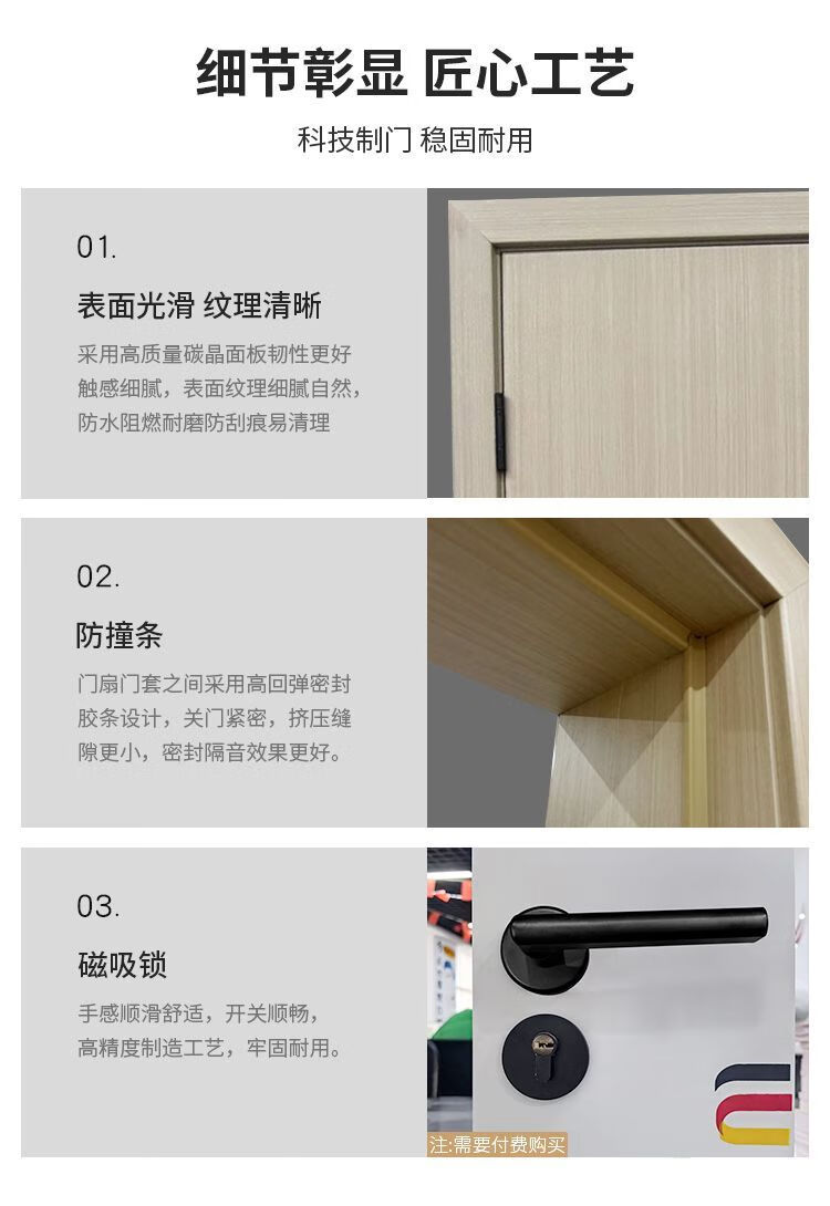 New indoor home wooden door bedroom door modern simple solid wood composite door paint-free door silent door carbon crystal door room door set package installation paint-free carbon crystal door molded model (engraved model + 30) does not include installation cedar solid wood filling/set + split lock