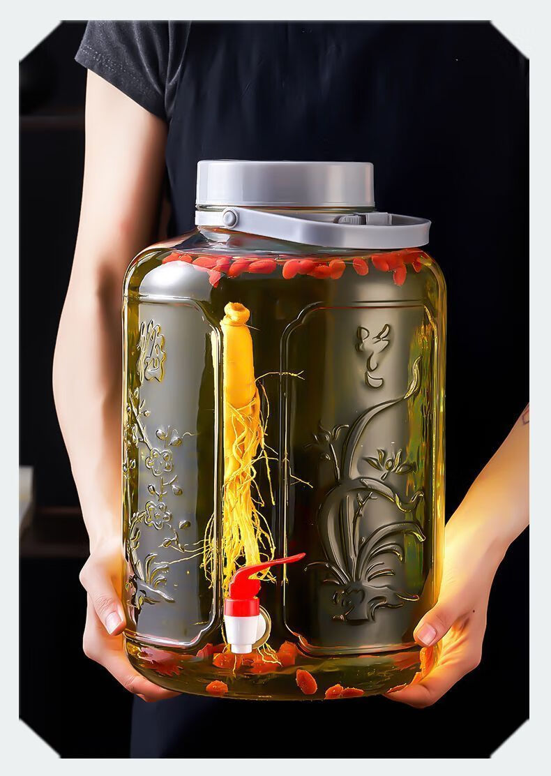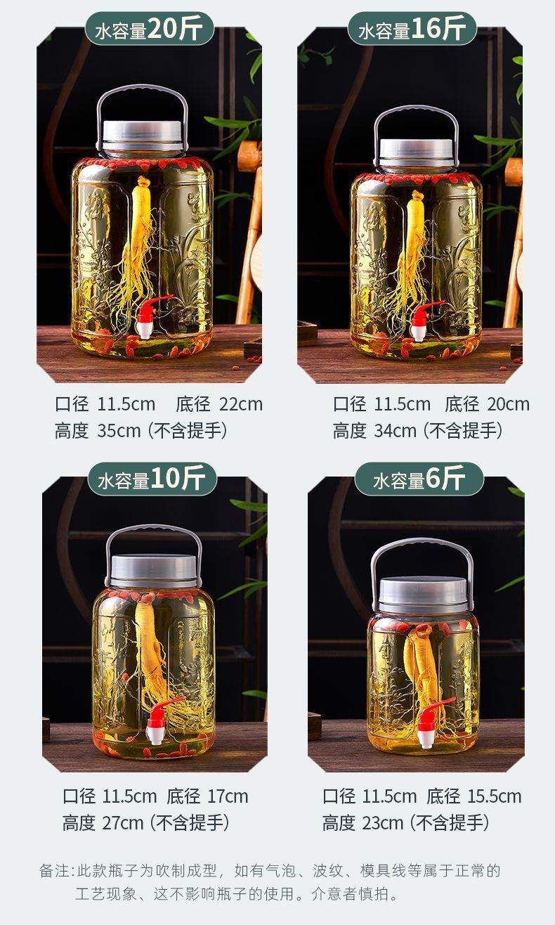 Kashiwa Chao bubble wine special glass bottle with faucet thickened green plum wine jar bayberry medicinal wine material ginseng wine jar (bubble wine) punched style water spout 6 pounds thickened