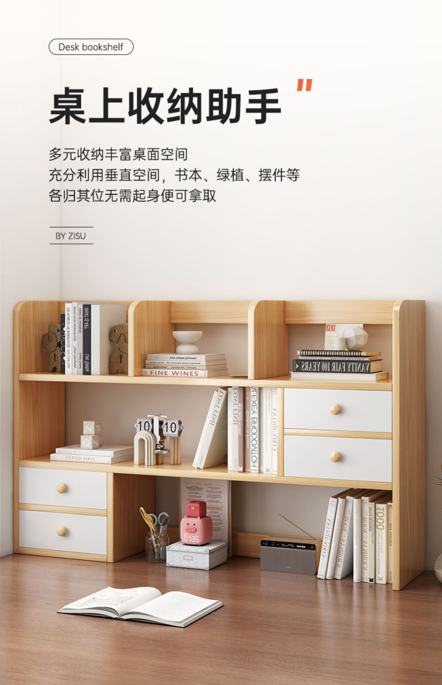 Lezao bookshelf desktop storage rack student home desk small bookcase office desk multi-layer storage simple cabinet four-door large fir walnut color 83*17cm