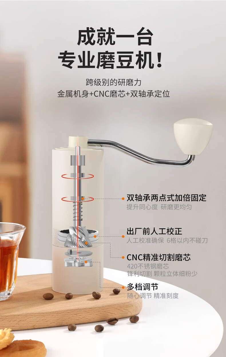 MONDINO hand grinder steel core hand grinder coffee machine manual coffee grinder coffee grinder bean grinder deep space gray Italian six-star grinding core