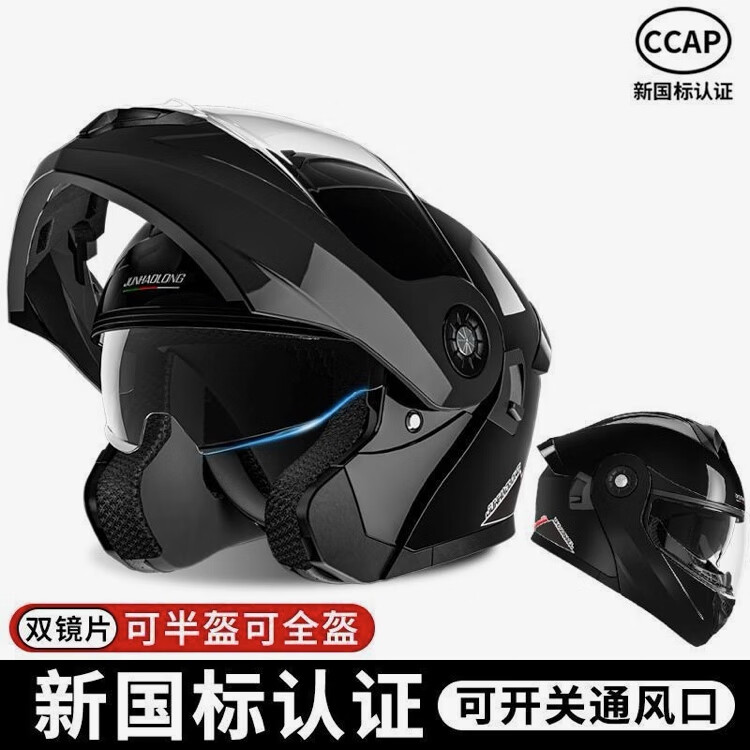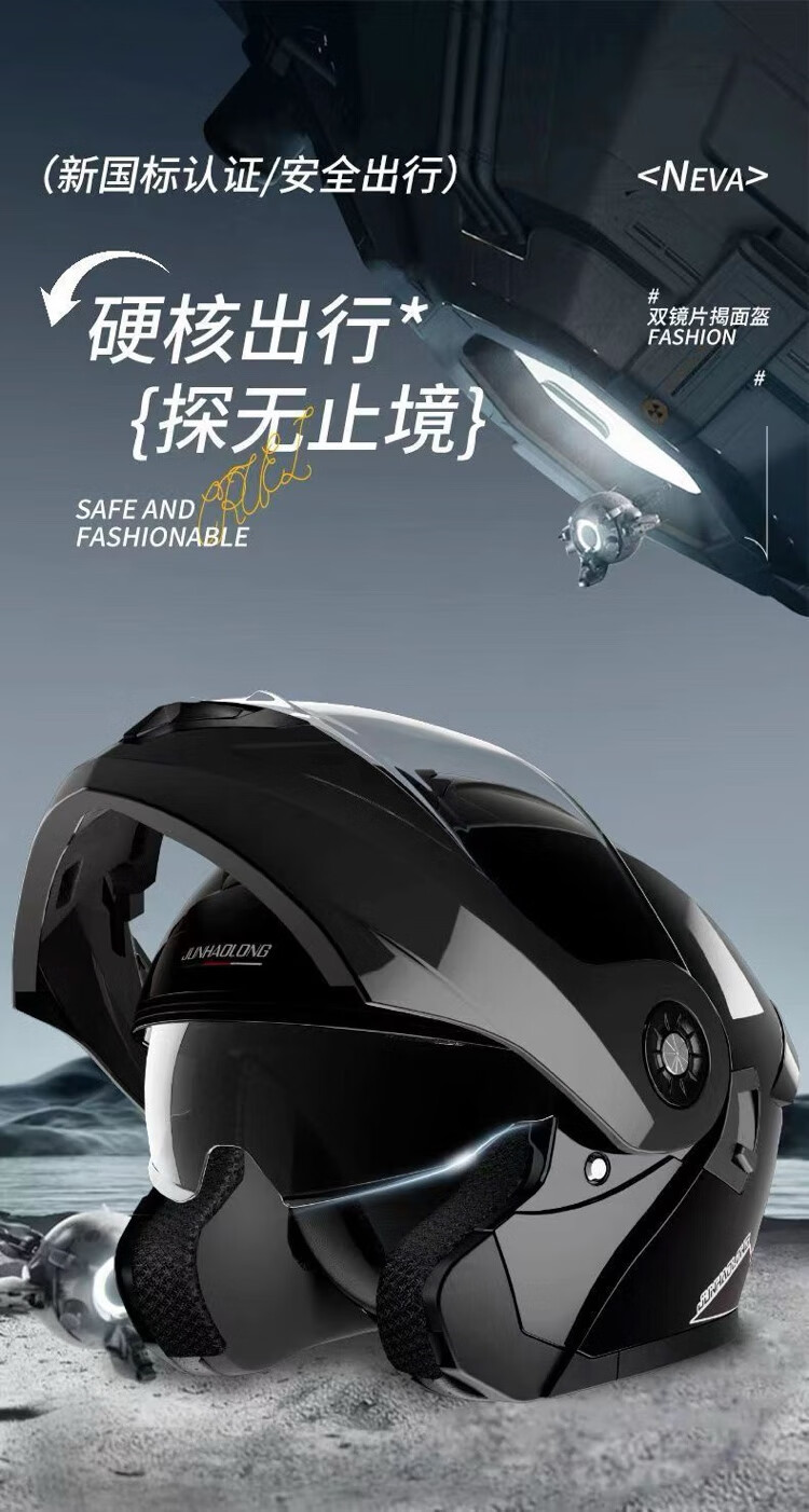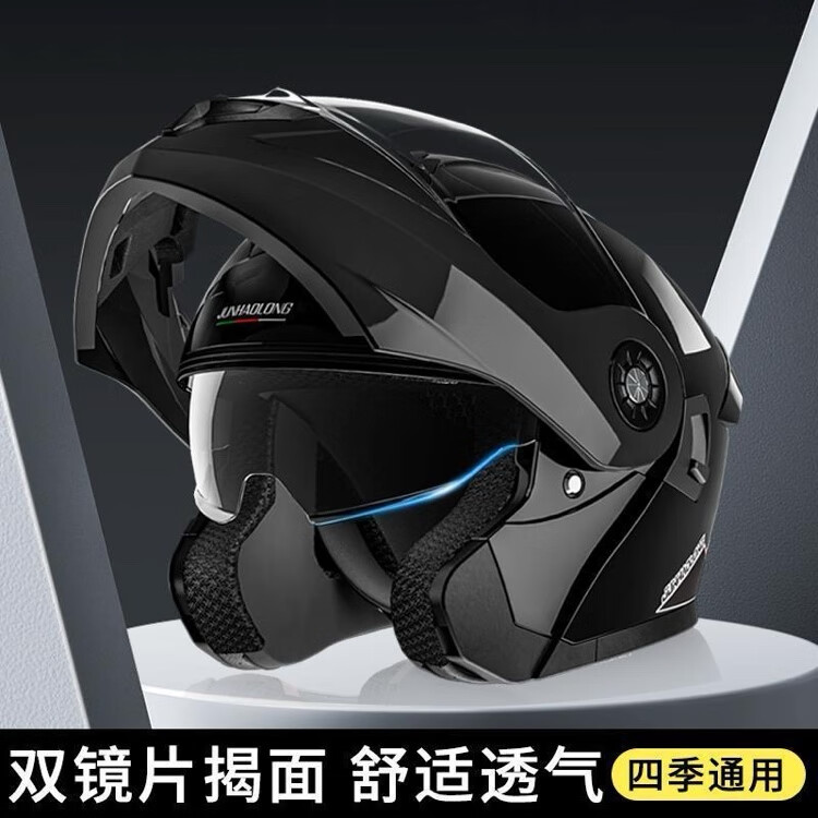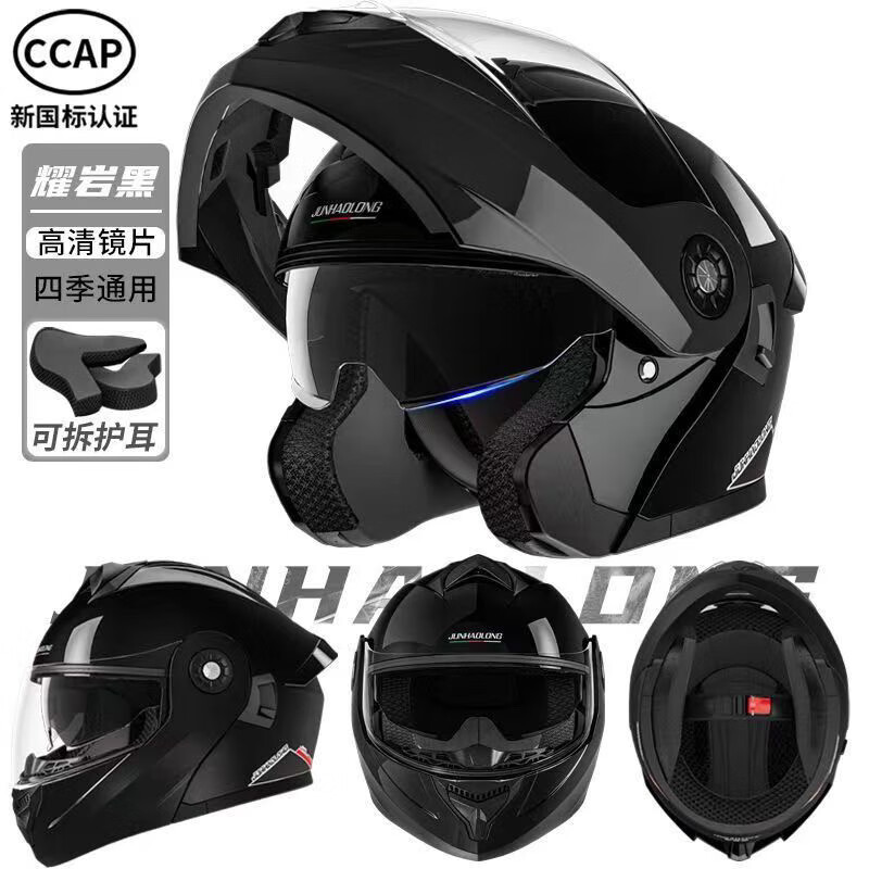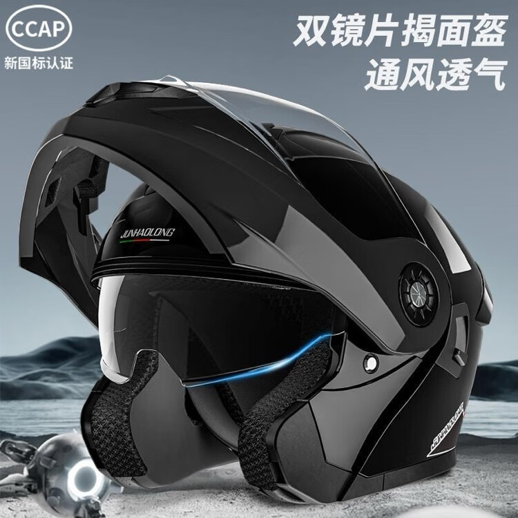 Junhaolong high-quality double-mirror motorcycle electric vehicle helmet 3C certified all-season open-face helmet for men and women flagship high-end version Naduo gray-high-definition double mirror adult size 54-62 head circumference