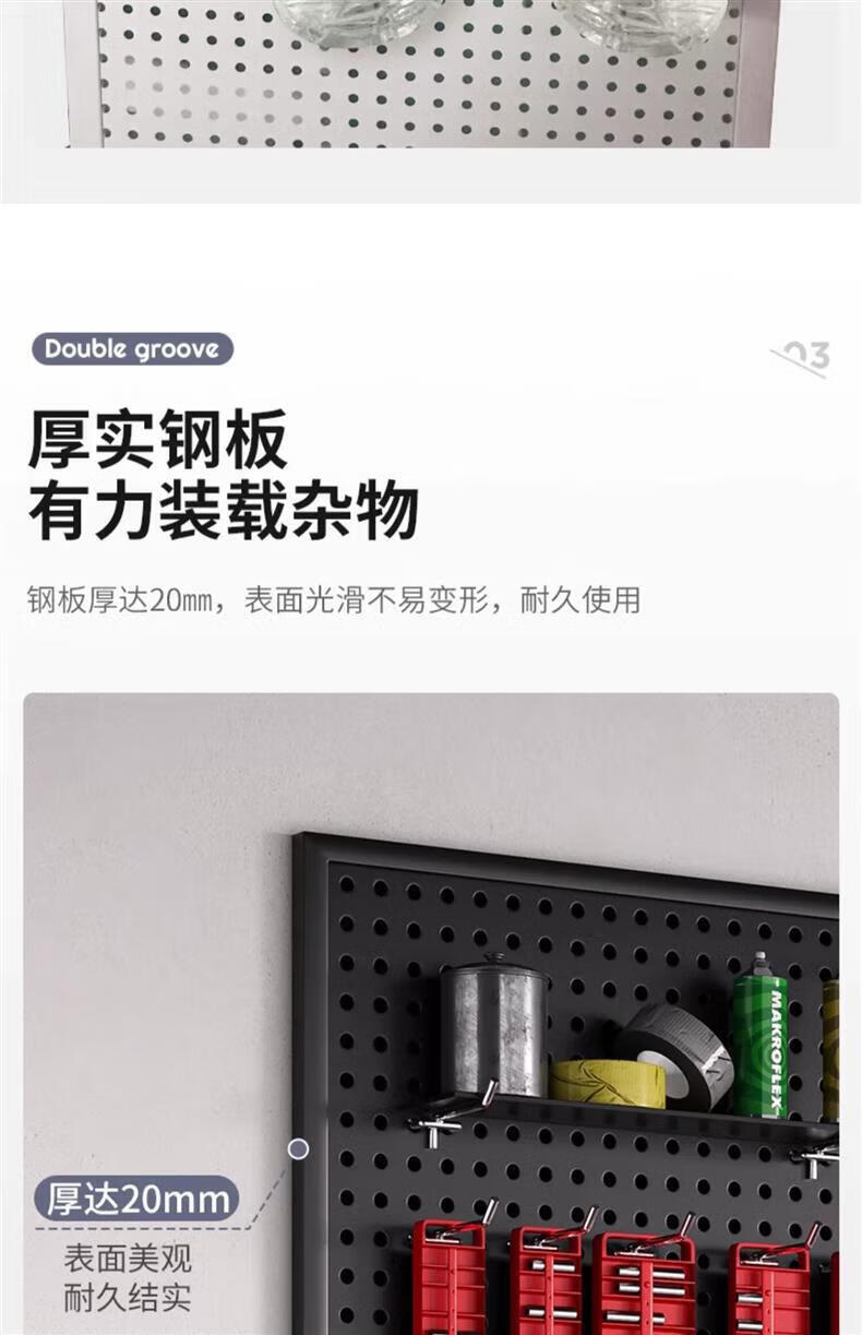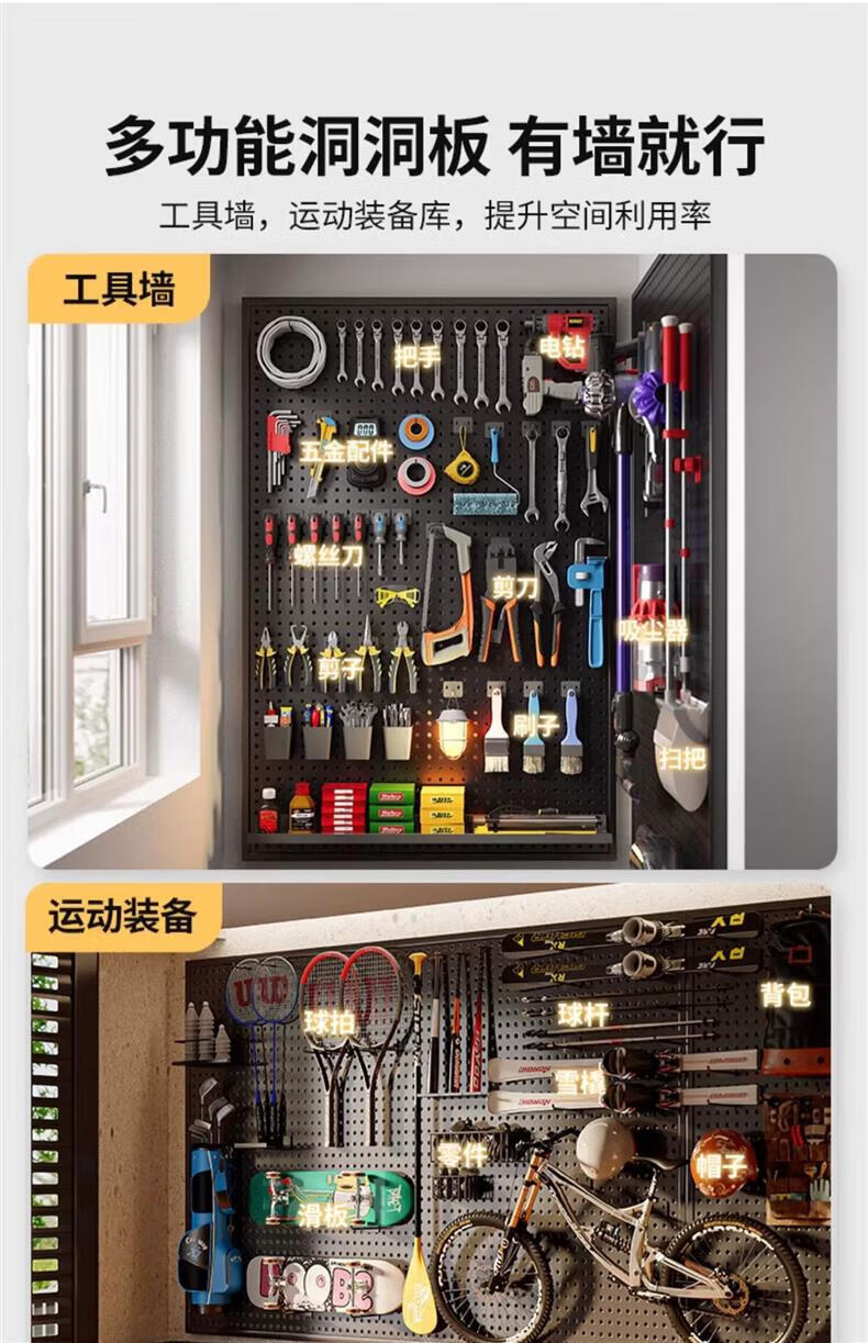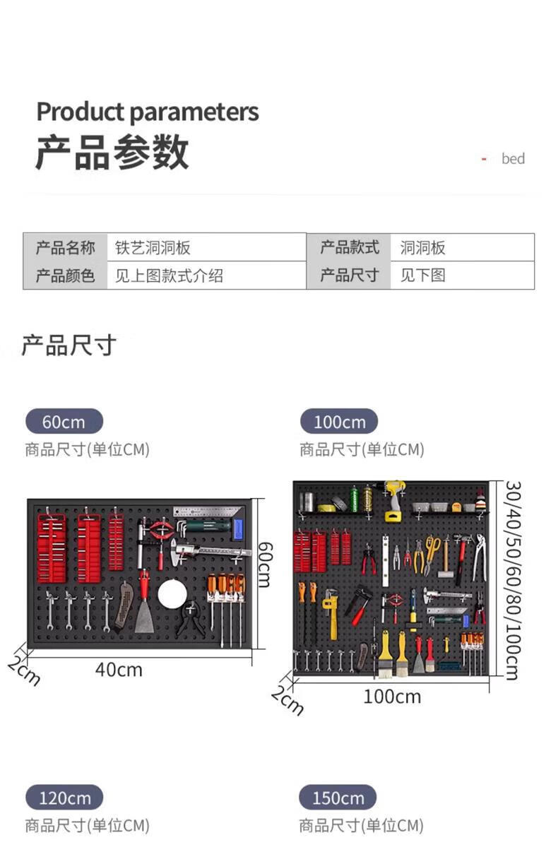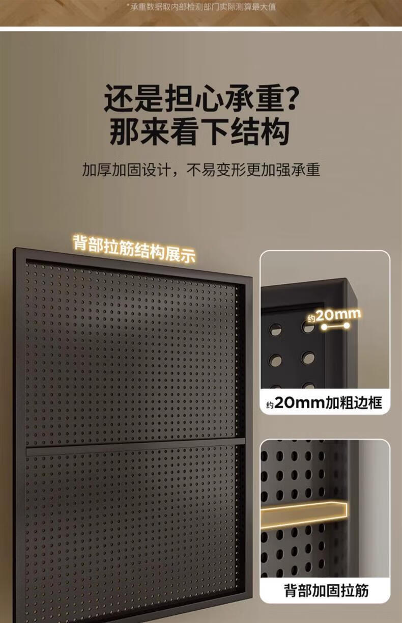 Wood grid tool wall hole board hanging board storage shelf wall storage rack punching board hardware stainless steel organizer warm white with frame thickened version 120*80cm