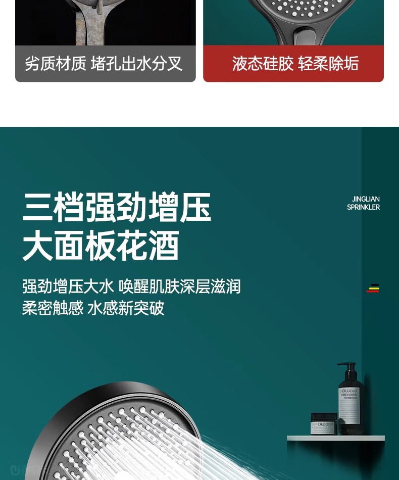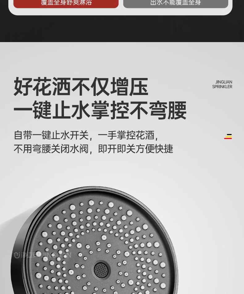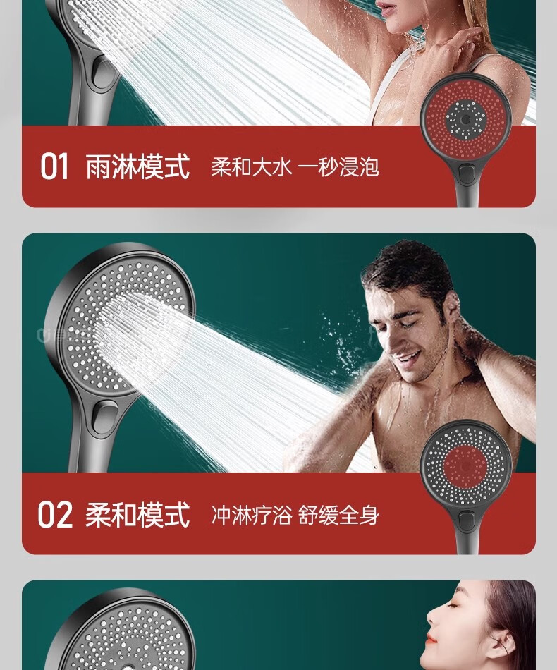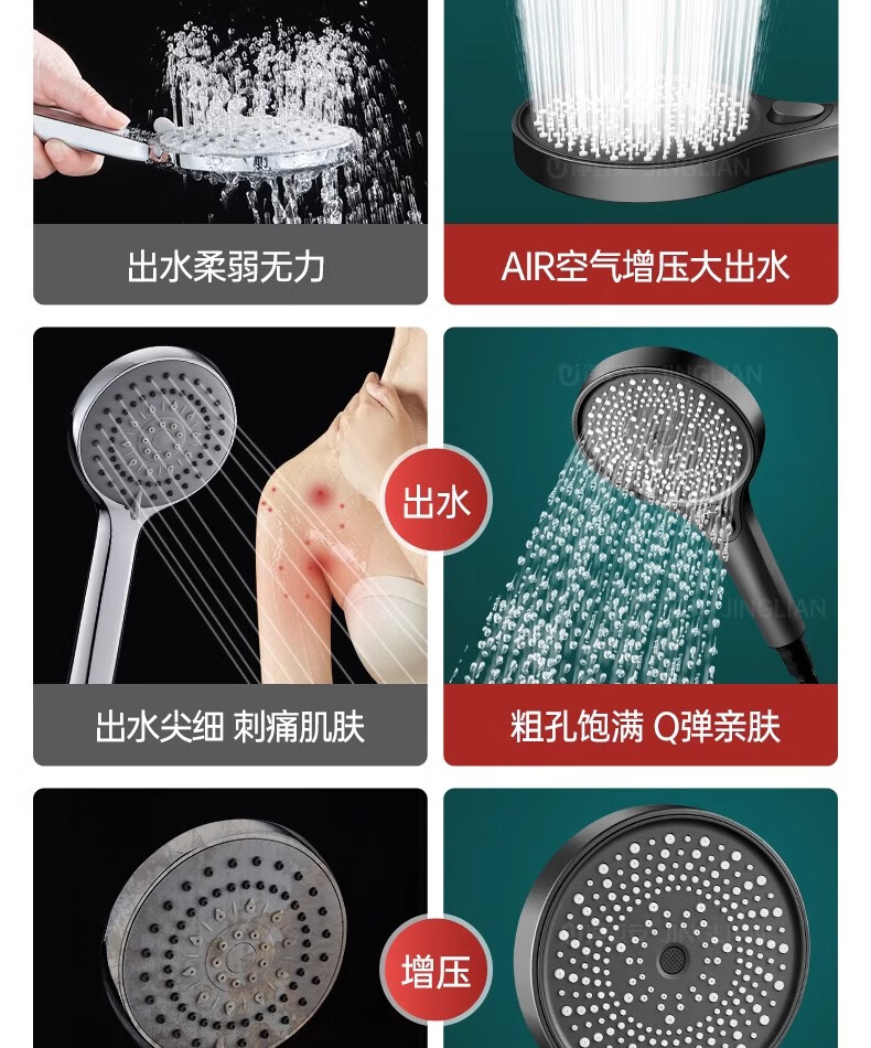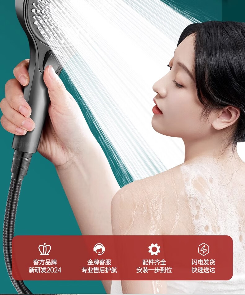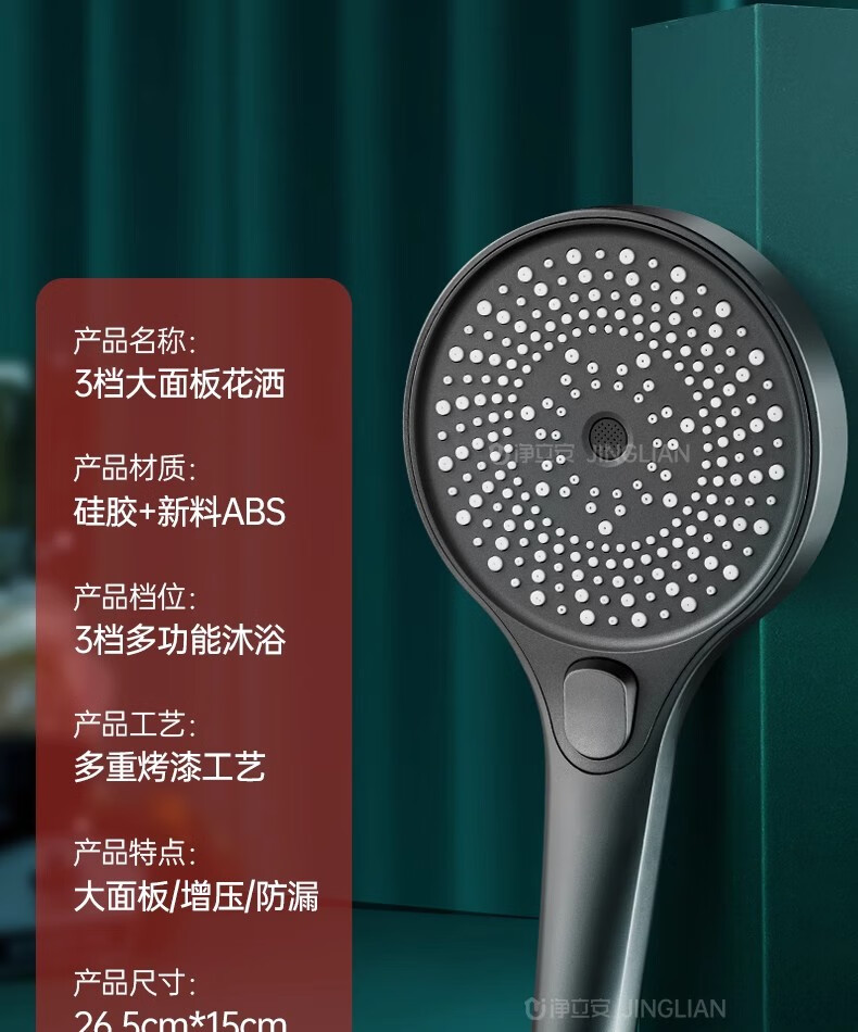 Huida (HUIDA) pressurized shower head household bathroom water heater bath heater shower head pressurized gray supercharged three-speed shower + bracket