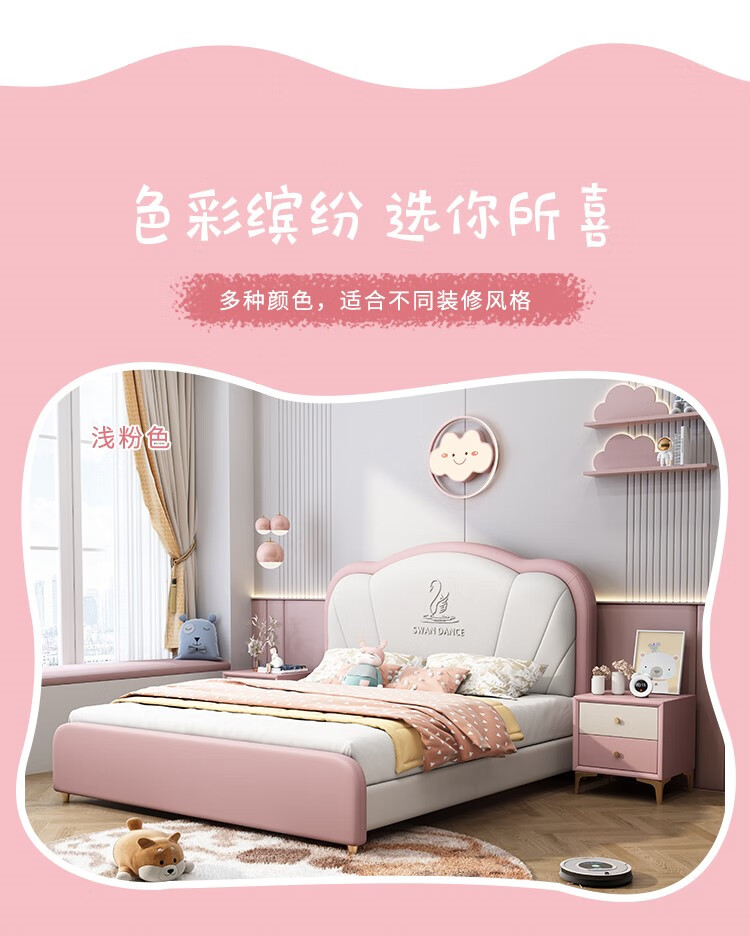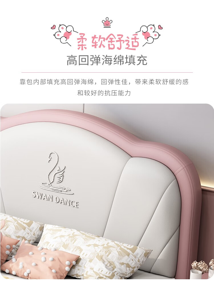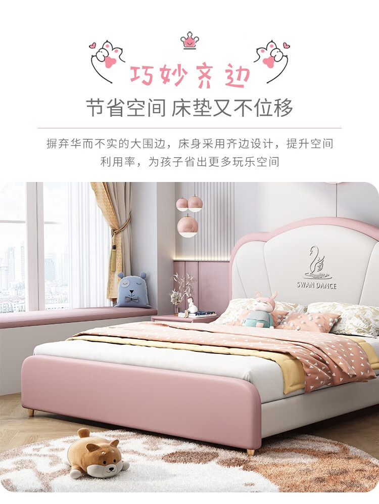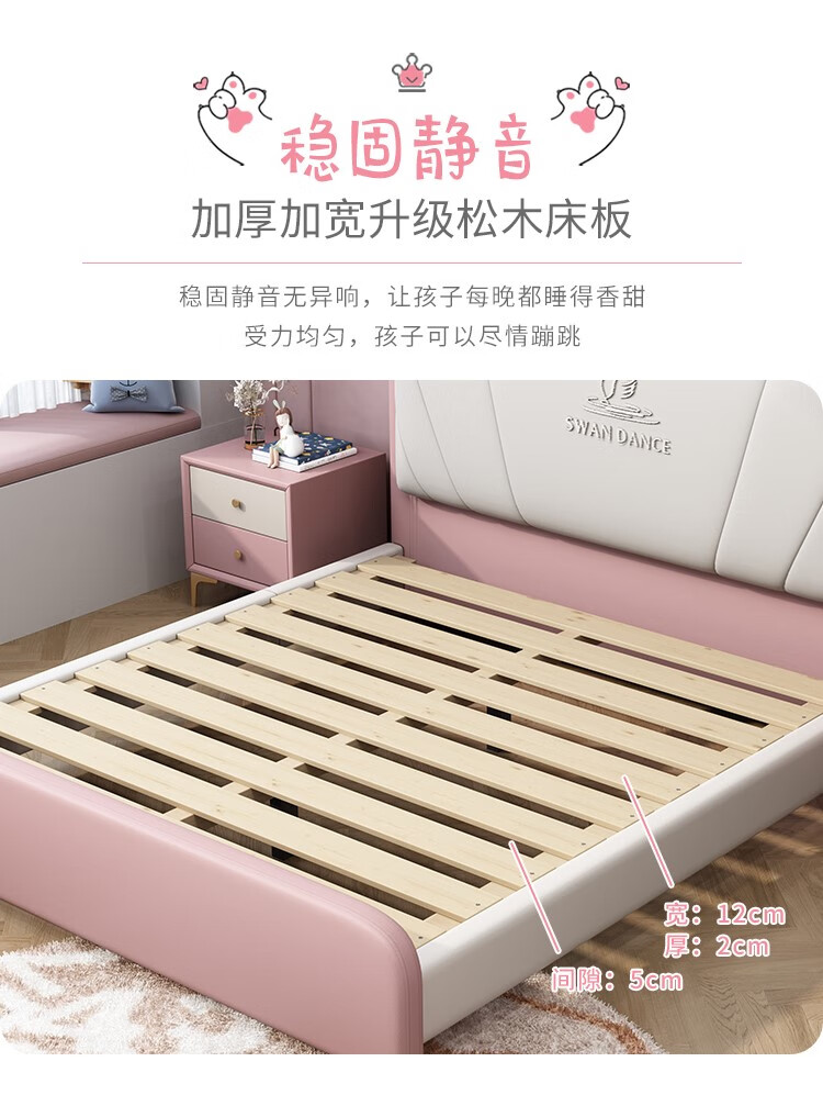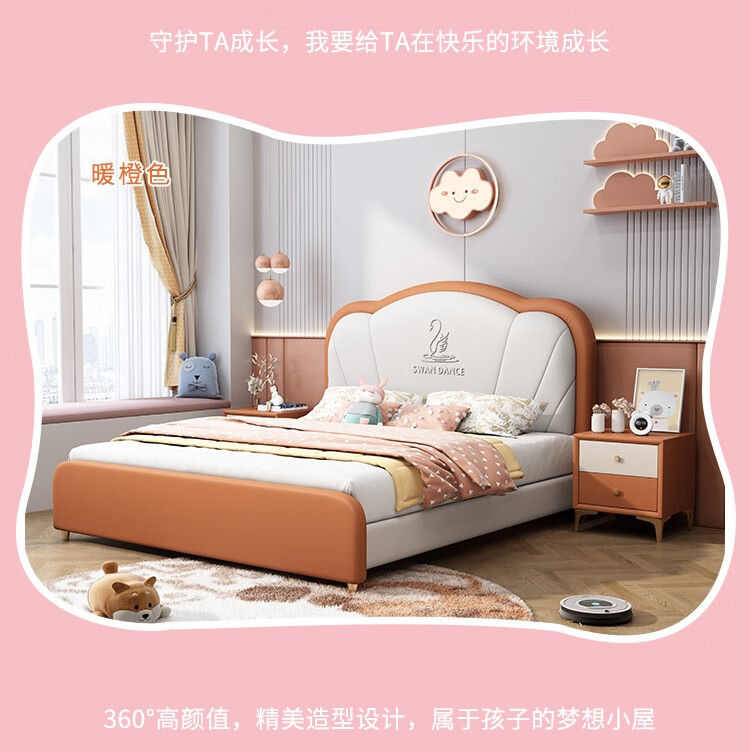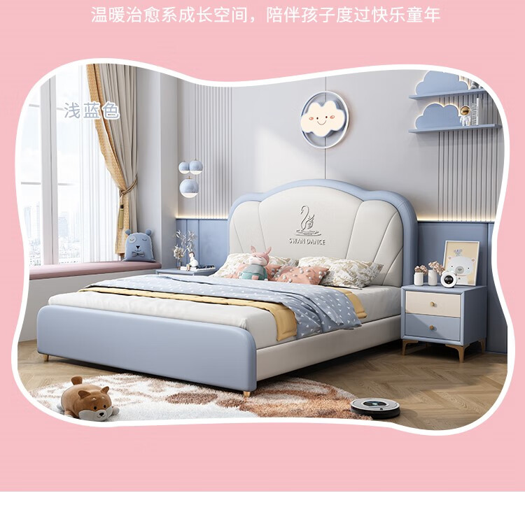 Songbao Kingdom Teenage Children's Bed Boys Girls Princess Bed Modern Simple 1.2m Single Bed Small Apartment Second Bedroom Children's Room Standard Version Napa Leather Bed + Environmentally Friendly Coconut Palm Mattress +1 1500mm*1900mm Without