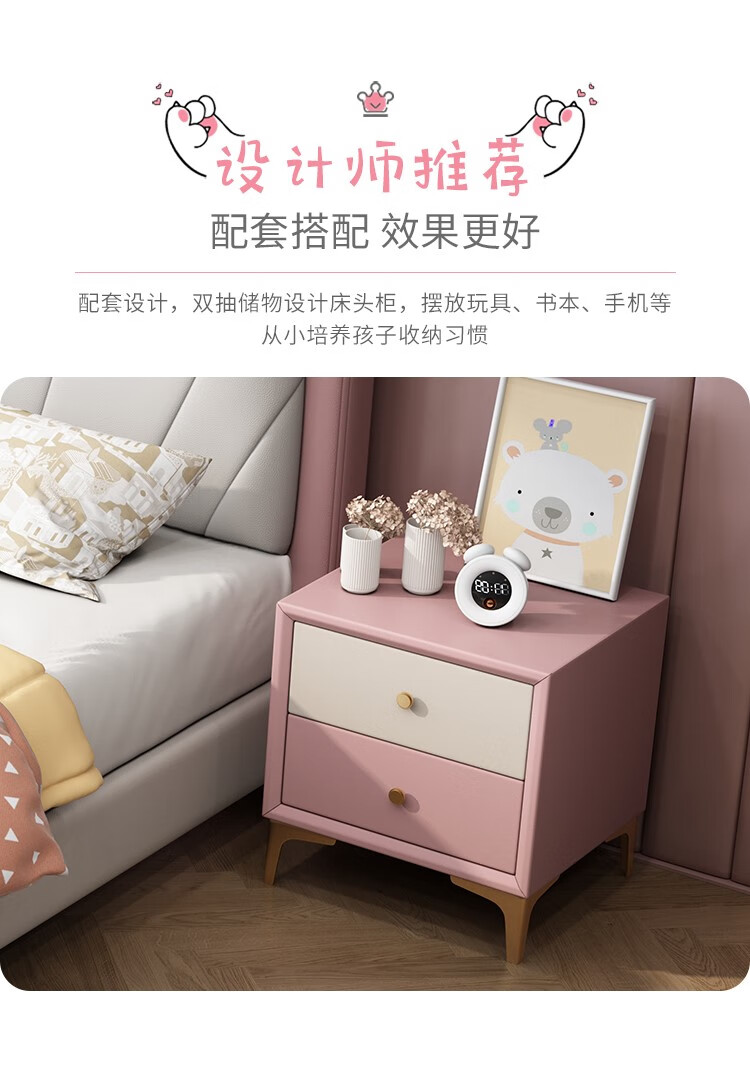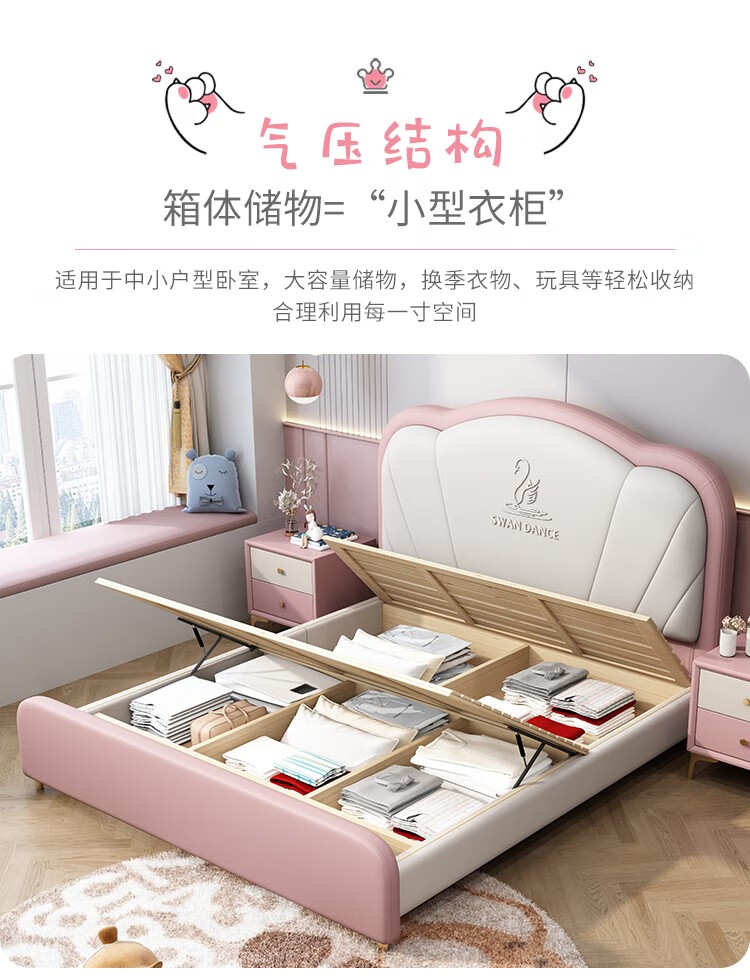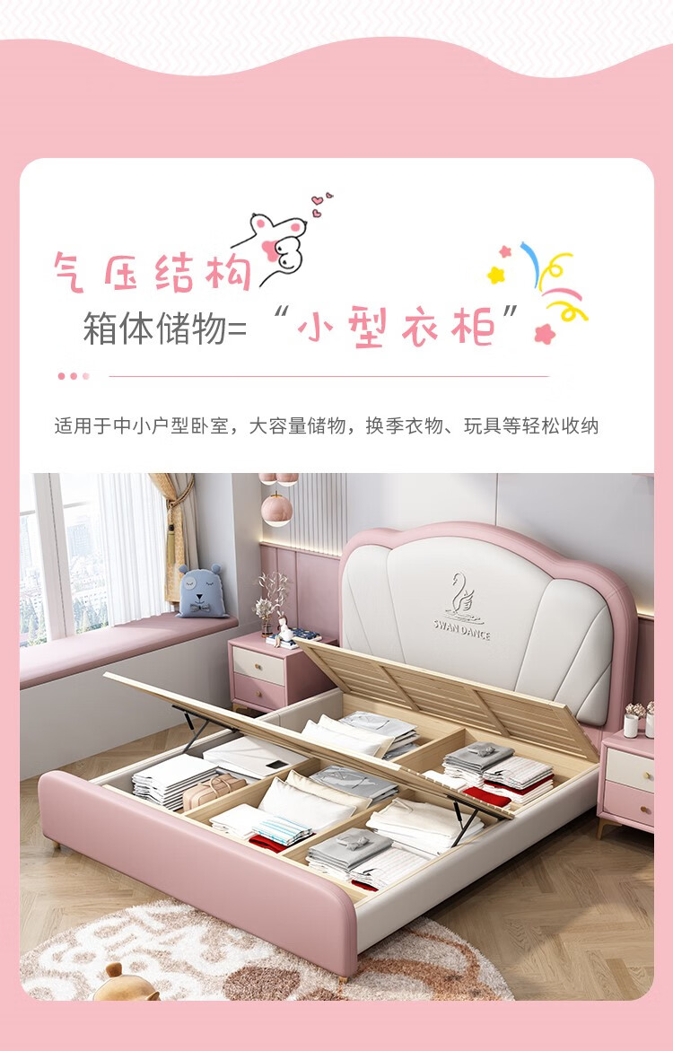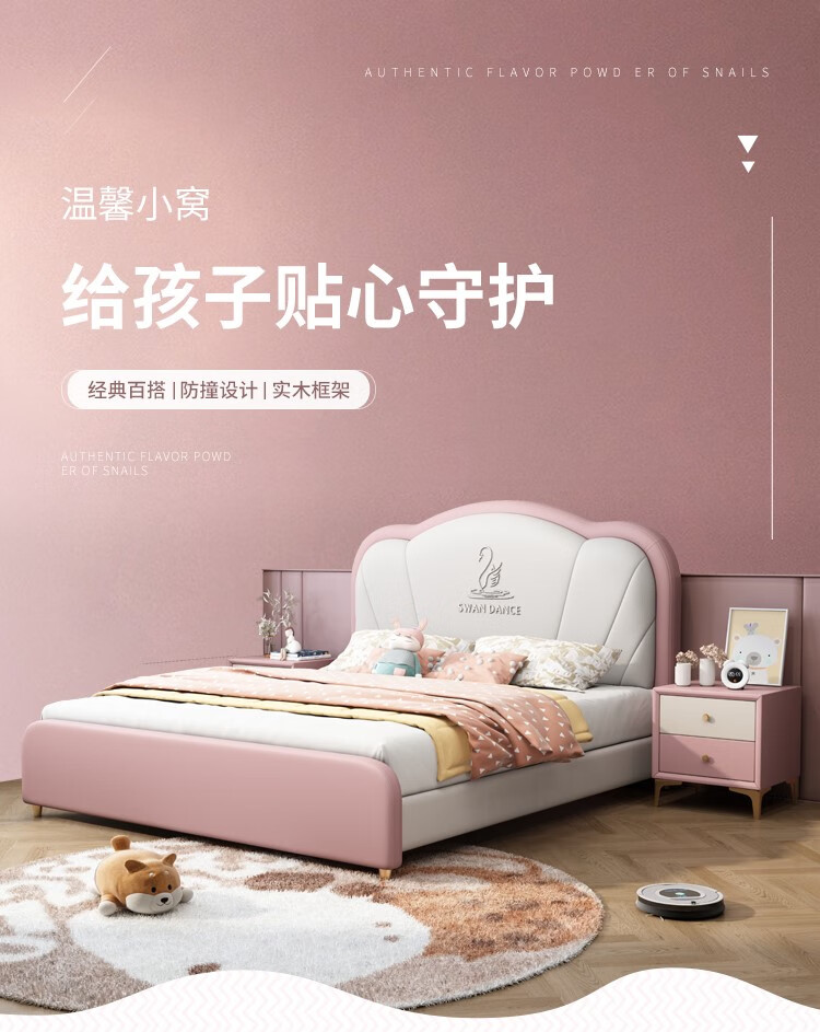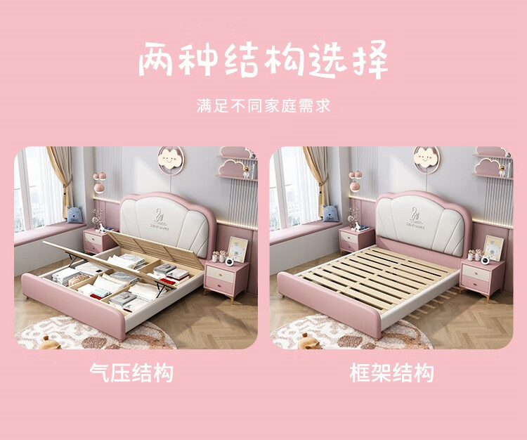 Songbao Kingdom Teenage Children's Bed Boys Girls Princess Bed Modern Simple 1.2m Single Bed Small Apartment Second Bedroom Children's Room Standard Version Napa Leather Bed + Environmentally Friendly Coconut Palm Mattress +1 1500mm*1900mm Without