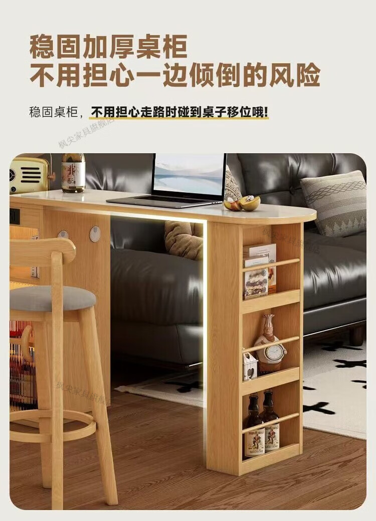 Maple Leaf Slate Bar Table Home Integrated Sideboard Living Room Island Dining Table Small Apartment Retractable Partition Storage New Style Log Color Bar Cabinet + Mobile Combination Table Including Sensor Light Socket Master Comes to Install