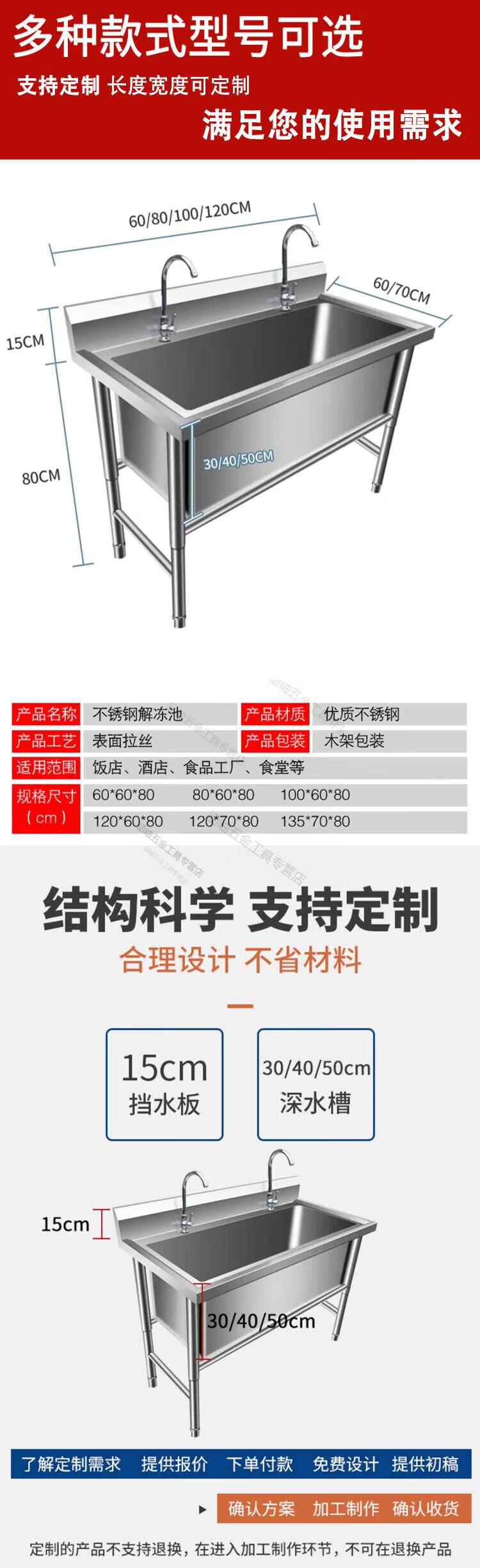 Sijie commercial kitchen stainless steel sink double slot thickened and deepened large sink canteen kitchen thawing pool pickle 3041 3041.2 thick-150*70*80 double slot-40 deep