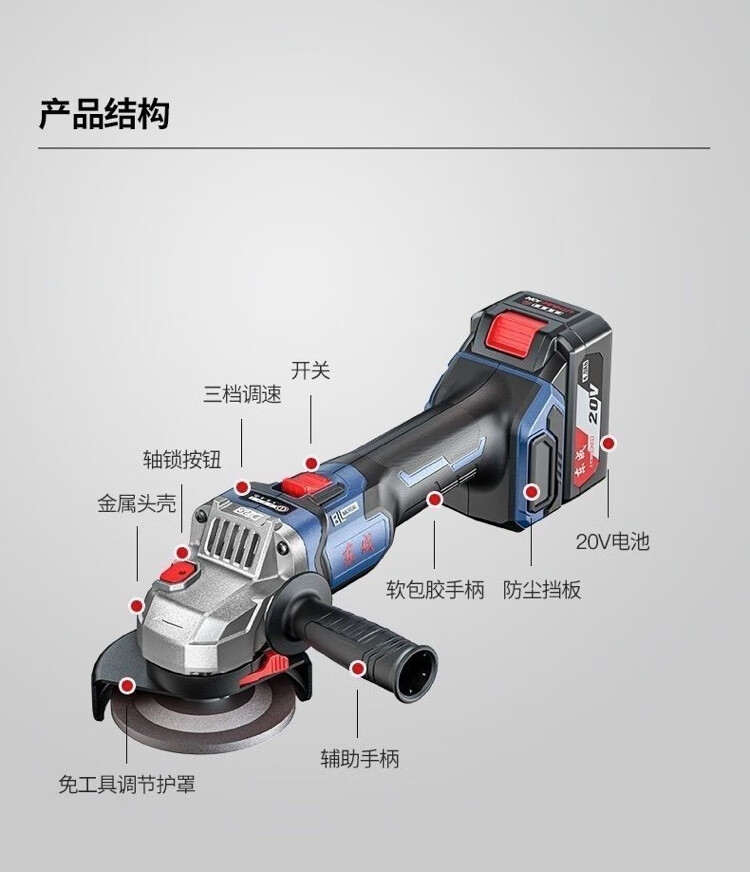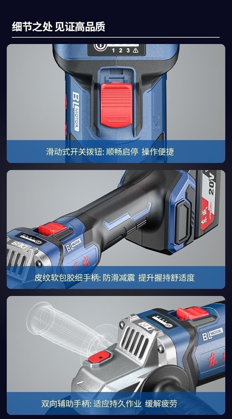 Dongcheng 20V brushless rechargeable angle grinder DCSM04-100 lithium battery grinder cutting machine throwing hand grinder Dongcheng DCSM04-100 bare metal