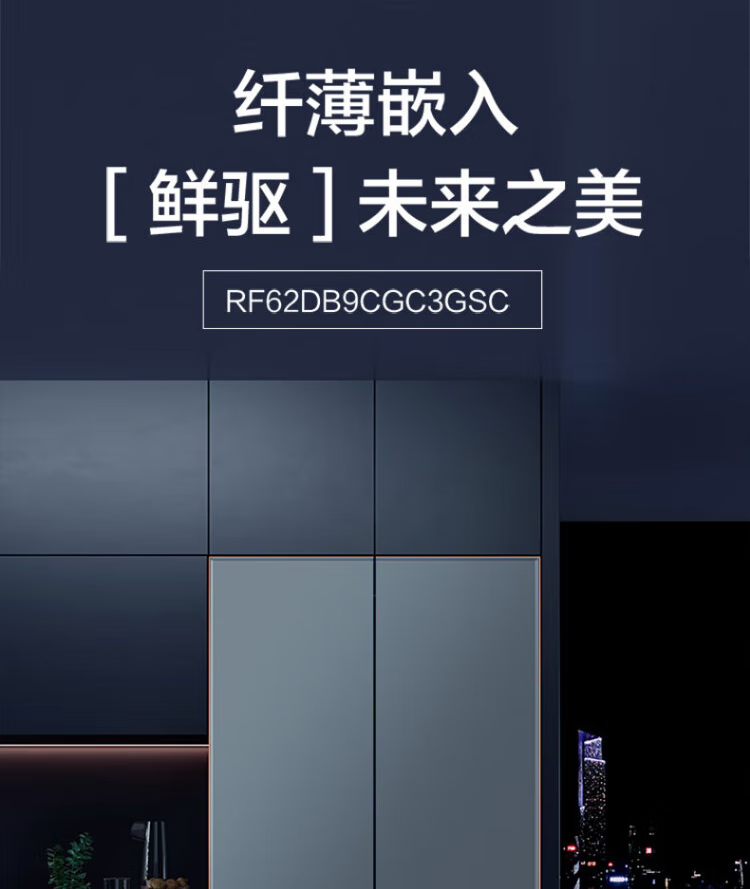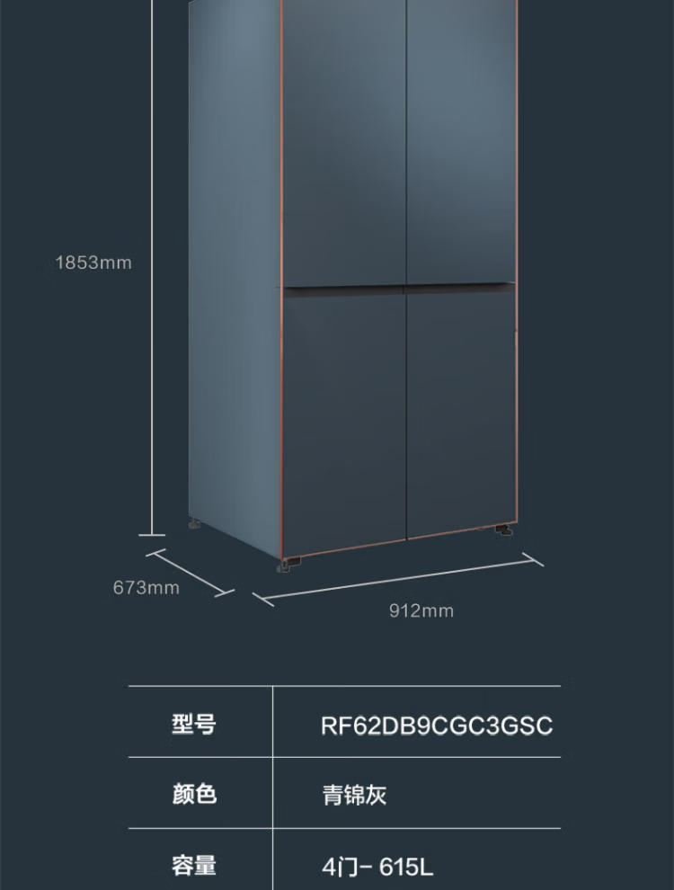 Samsung (SAMSUNG) original imported AI refrigerator 9 series 615L embedded four-door cross door automatic door automatic ice making frequency conversion three-system household large capacity large refrigerator official machine RF62DB9CGC3GSC Green Jin Gray