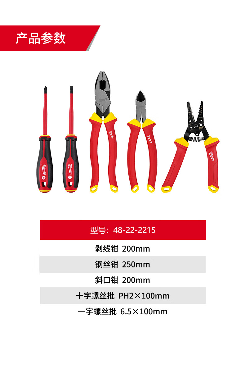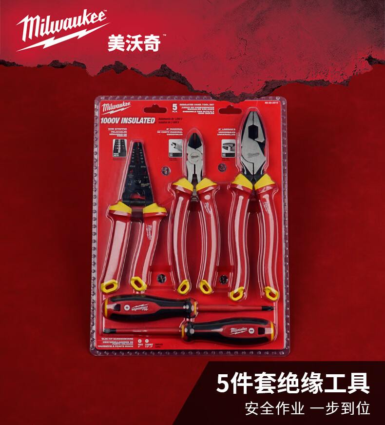 Milwaukee Milwaukee Milwaukee insulated electrician's set 1000V pliers screwdriver set VDE certified electrician's insulation 5-piece set (48-22-2215)