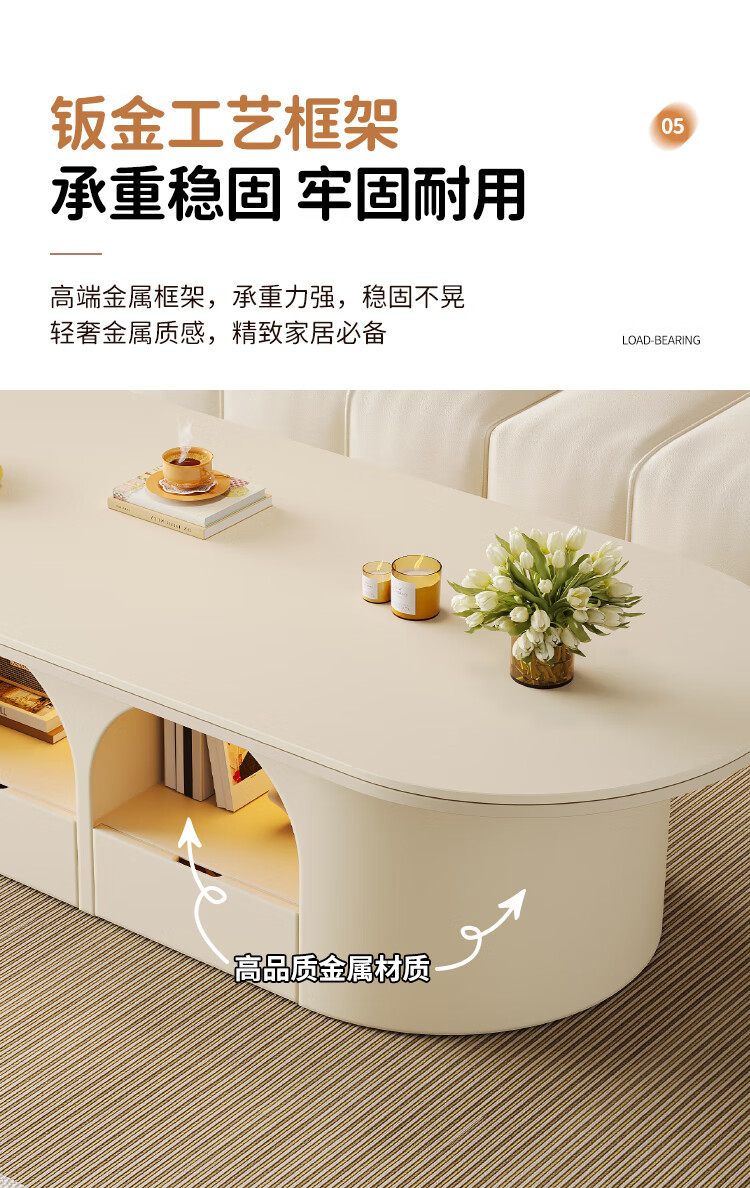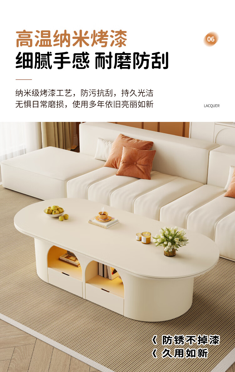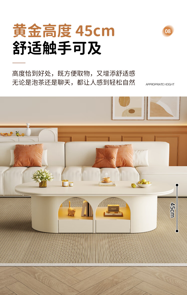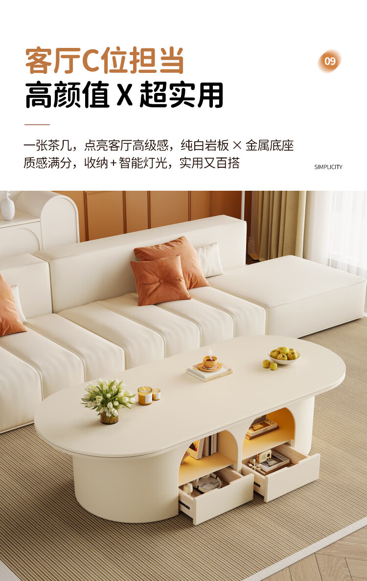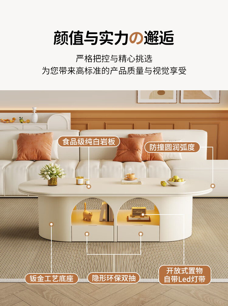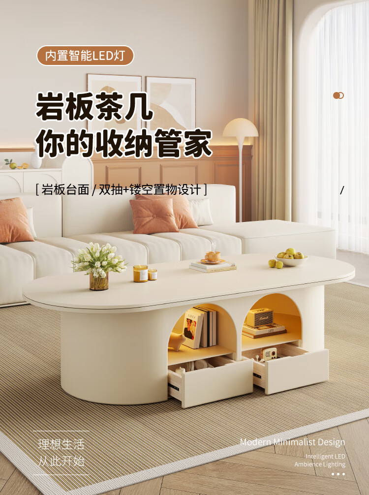 Home slate coffee table cream style living room small apartment creative light luxury high-end home modern small table 2026 new style white pure white matte slate 120*60*45
