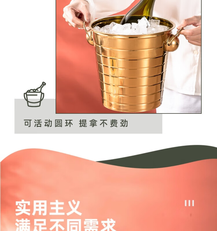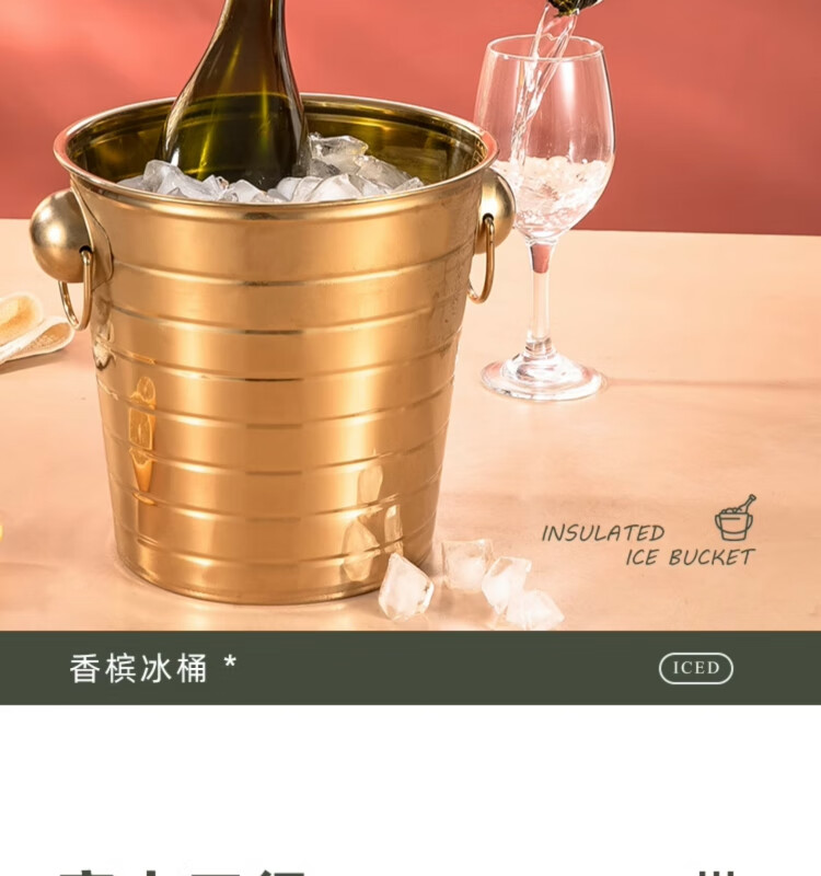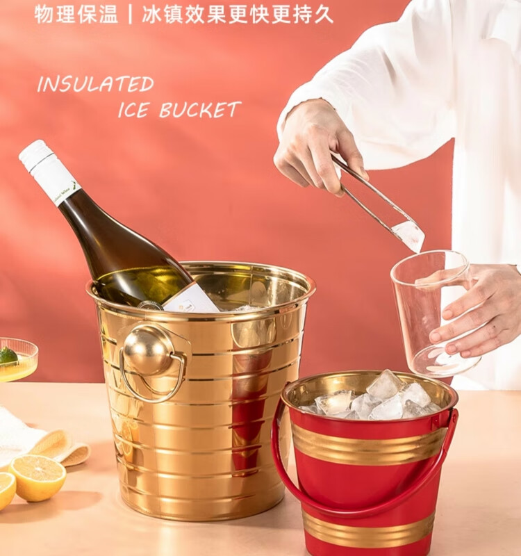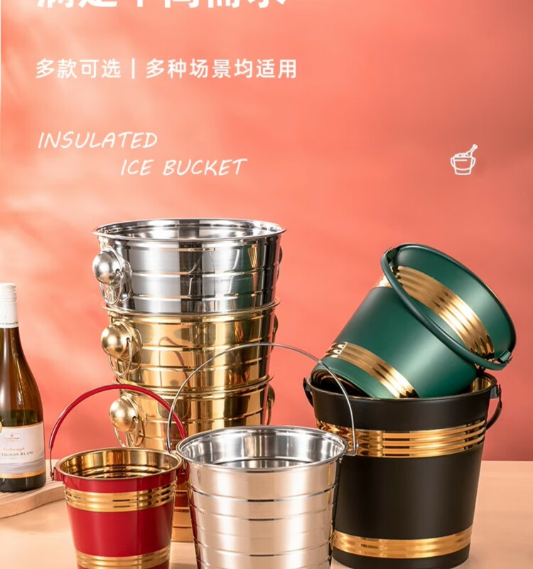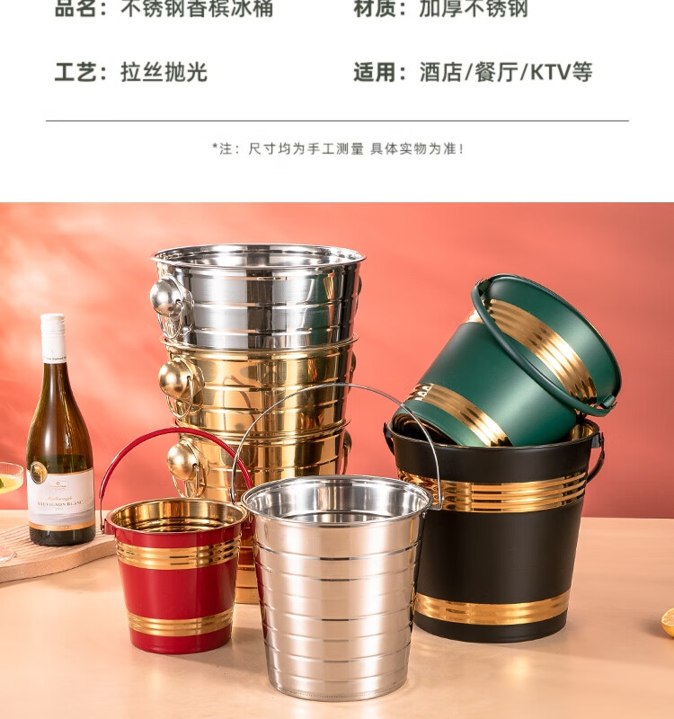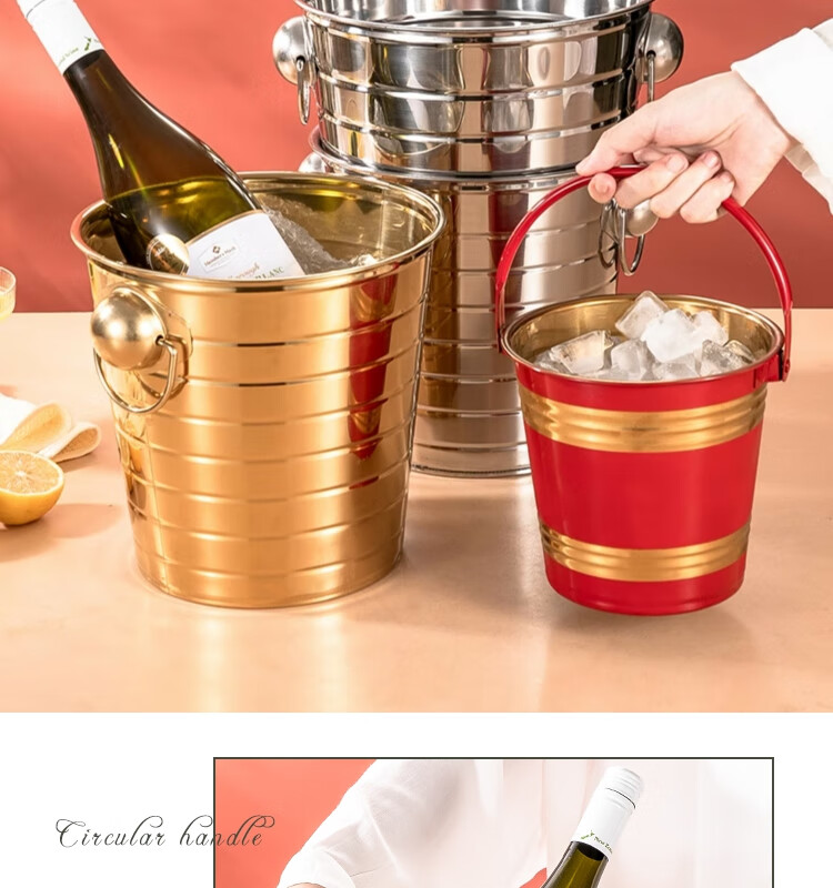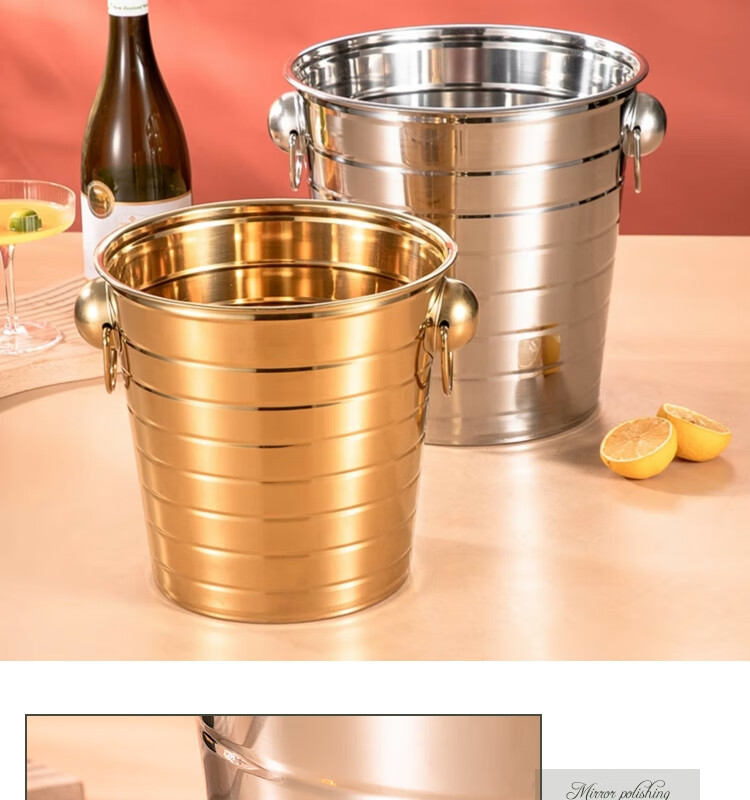Yanxing thickened stainless steel ice bucket KTV champagne bucket red wine ice cube ice grain bucket bar beer bucket large hotel supplies silver seven-line champagne bucket portable 18cm (3L)