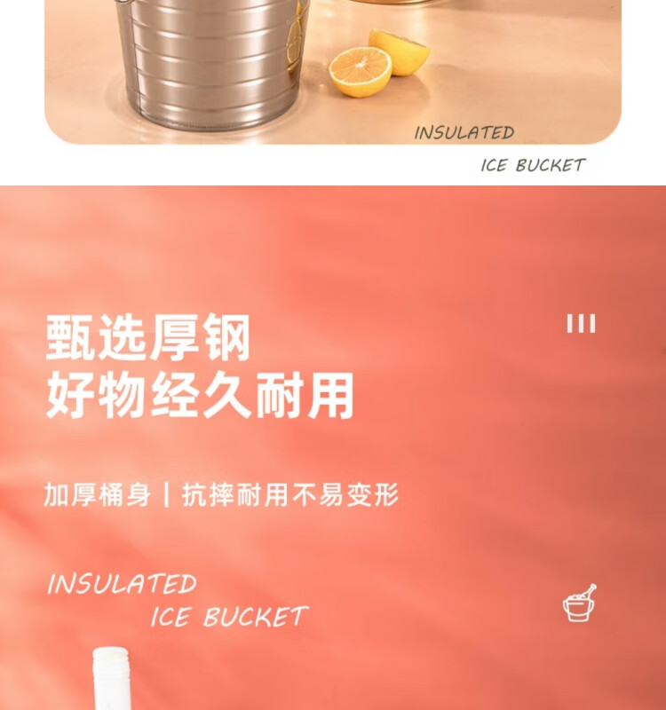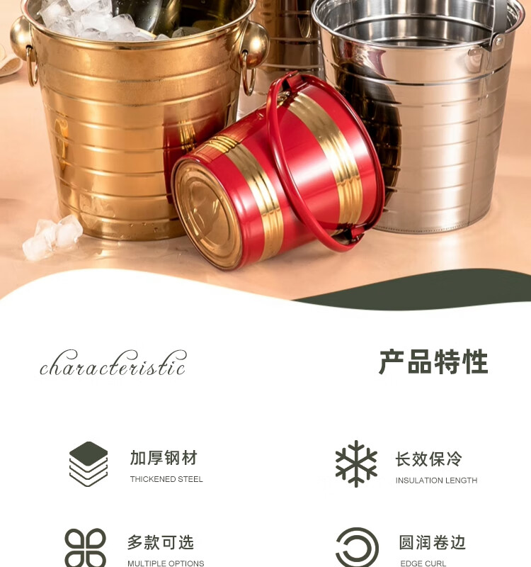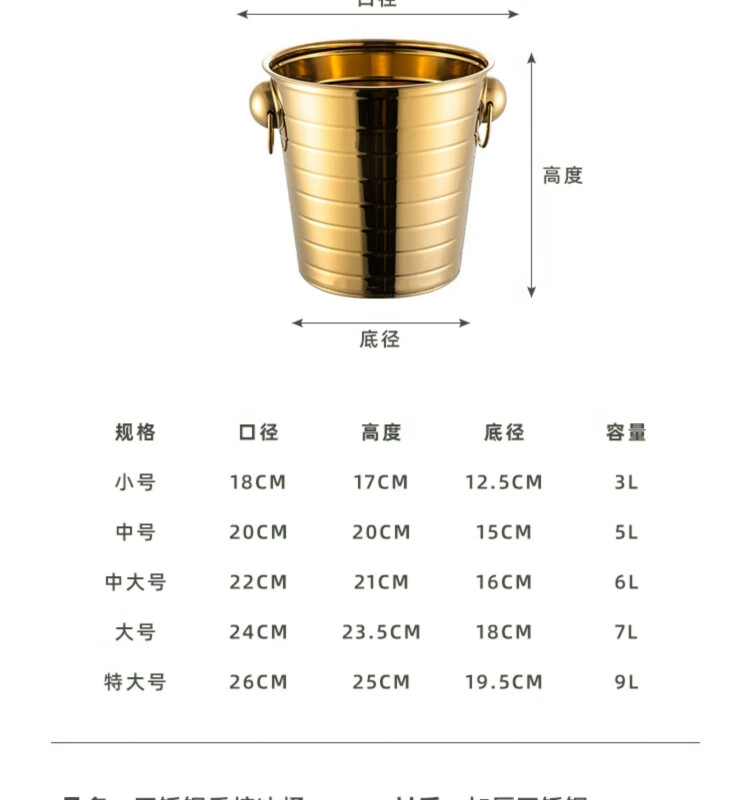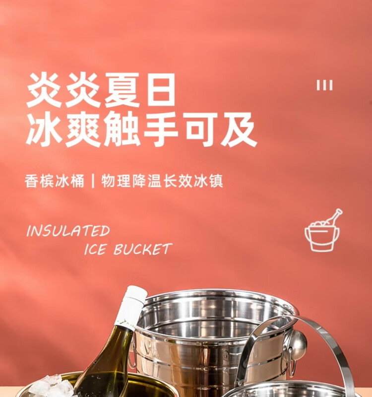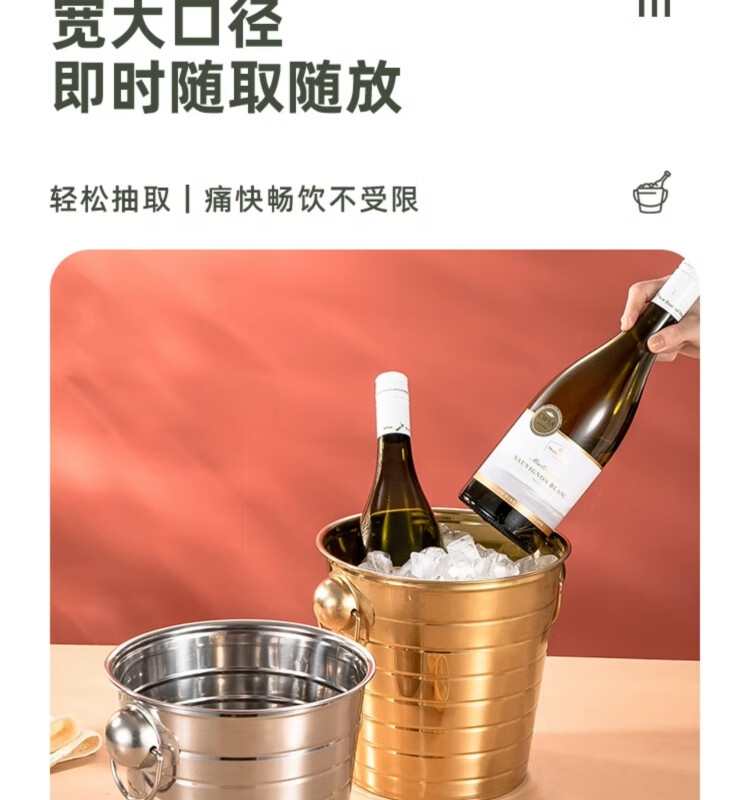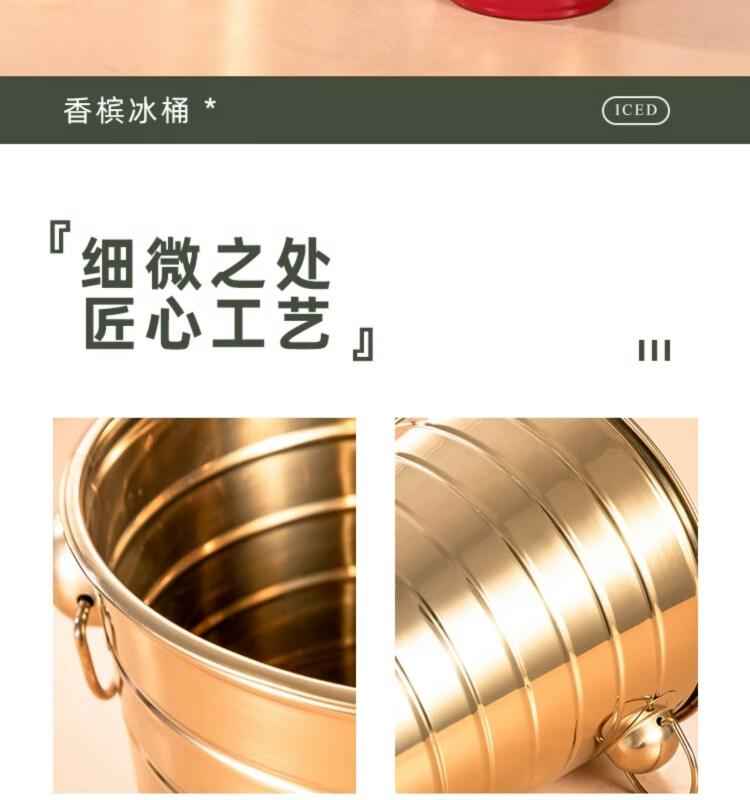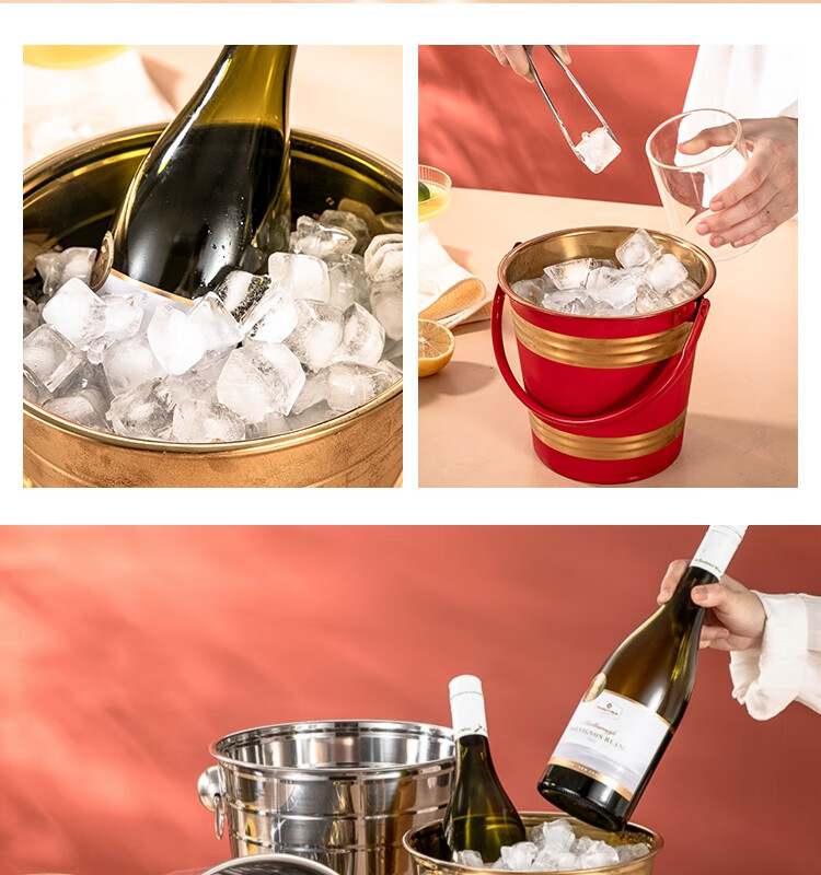 Yanxing thickened stainless steel ice bucket KTV champagne bucket red wine ice cube ice grain bucket bar beer bucket large hotel supplies silver seven-line champagne bucket portable 18cm (3L)