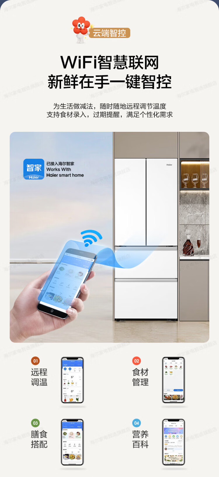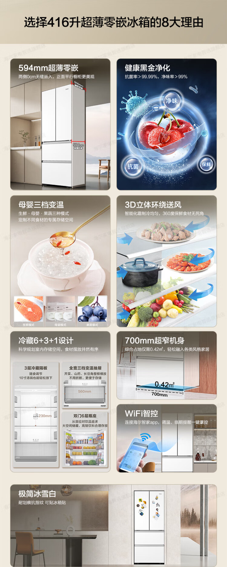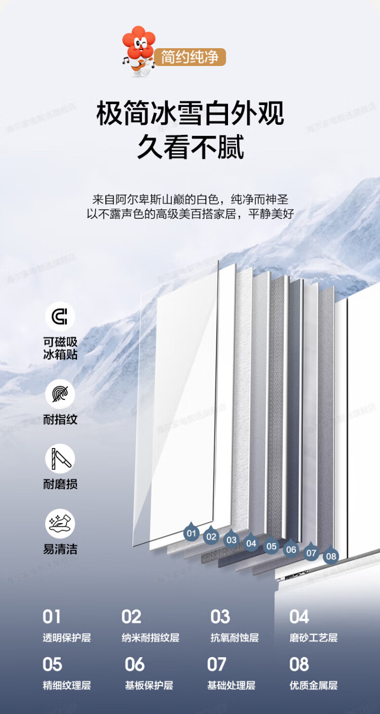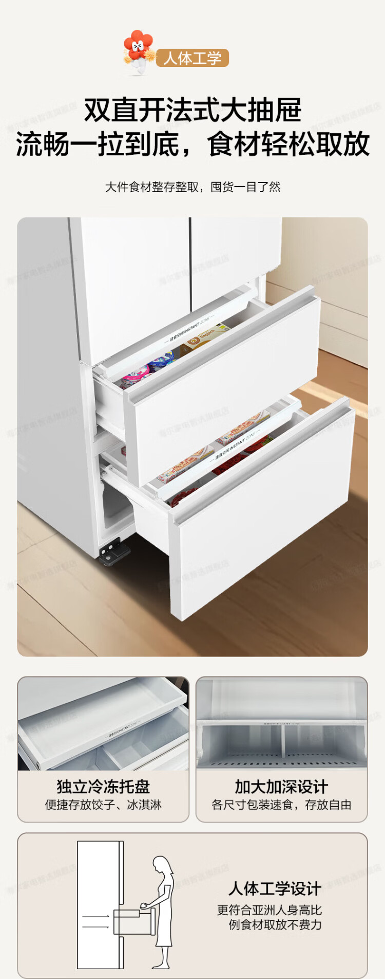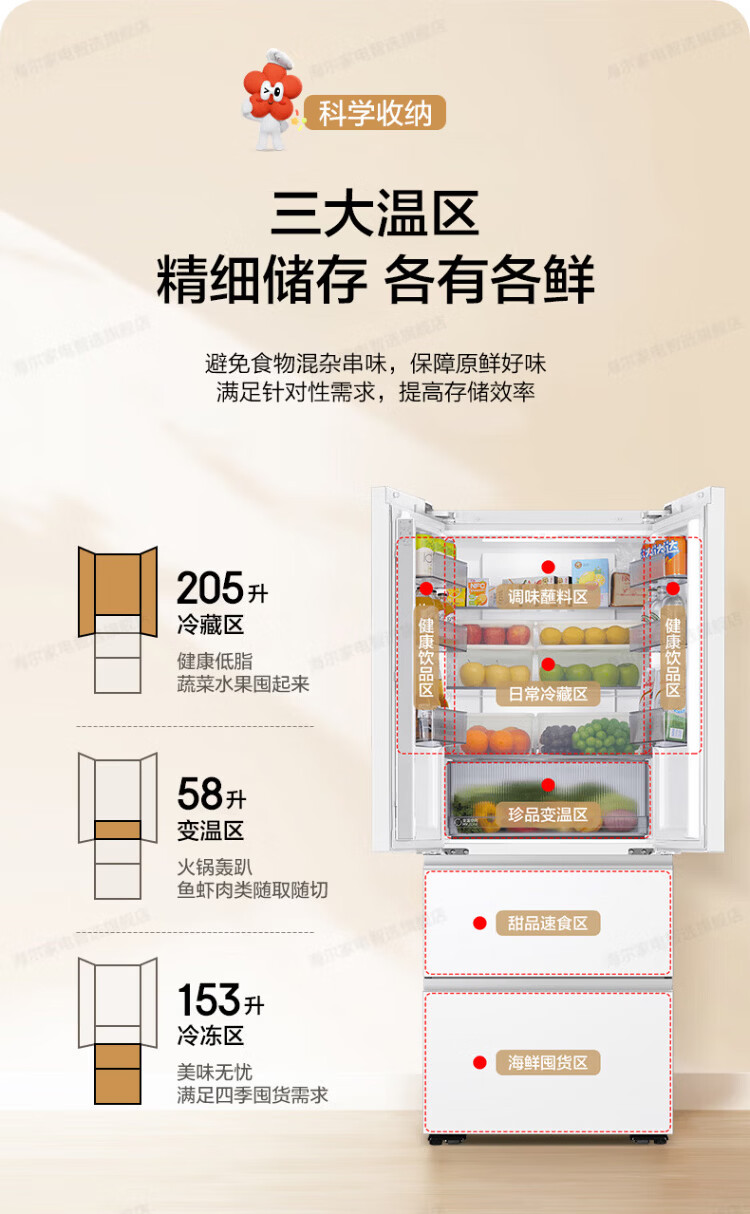 Haier refrigerator 416 liters ultra-thin zero-distance freely embedded within 60cm French style multi-door four-opening double-door Xiaohonghua series first-class energy efficiency dual frequency conversion large capacity state subsidy 416L+healthy black gold purification+maternal and infant three-speed temperature change+WiFi intelligent control