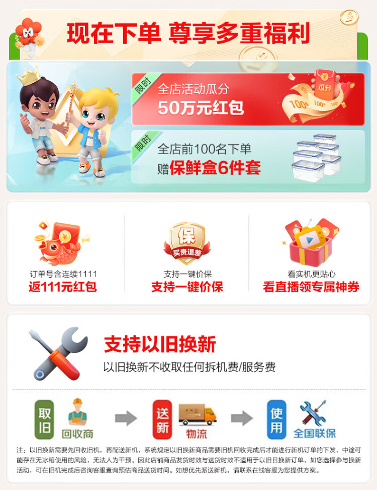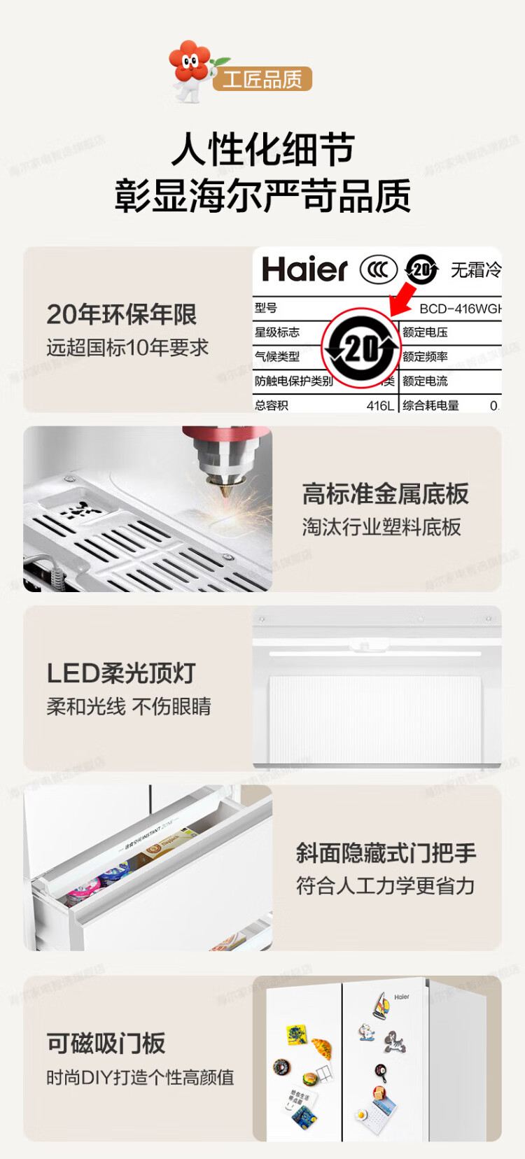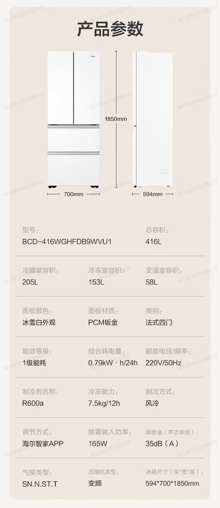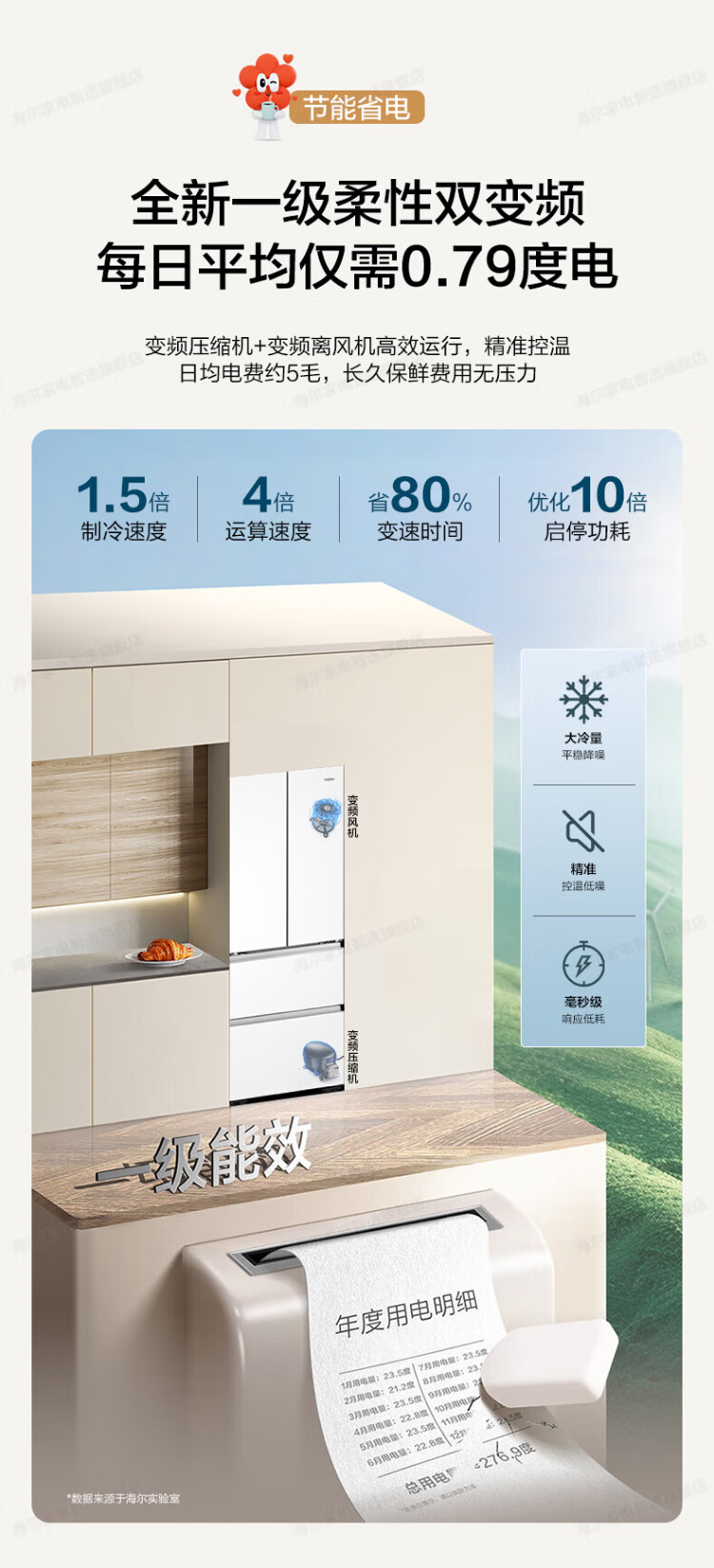 Haier refrigerator 416 liters ultra-thin zero-distance freely embedded within 60cm French style multi-door four-opening double-door Xiaohonghua series first-class energy efficiency dual frequency conversion large capacity state subsidy 416L+healthy black gold purification+maternal and infant three-speed temperature change+WiFi intelligent control