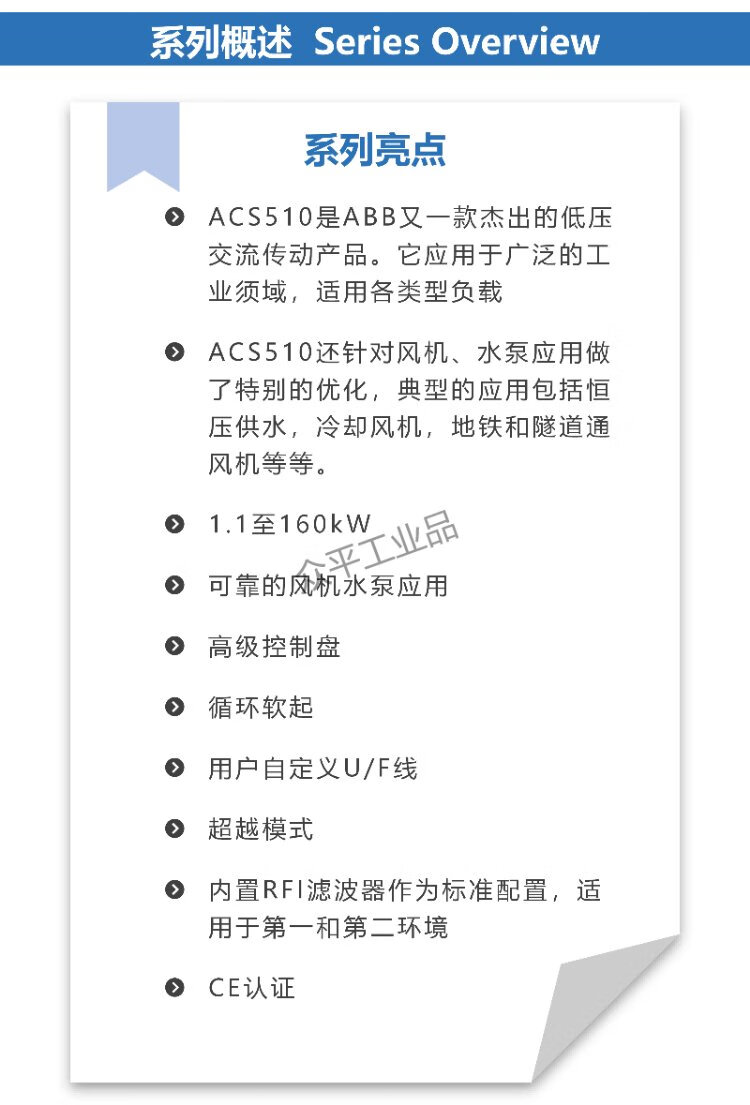 ABB frequency converter ACS510-01-012A-4/017/025/031/038/03/046/04/05/060/072/07/088/09/125A-4 control panel needs to be purchased separately ACS510-01-025A-4丨11kW