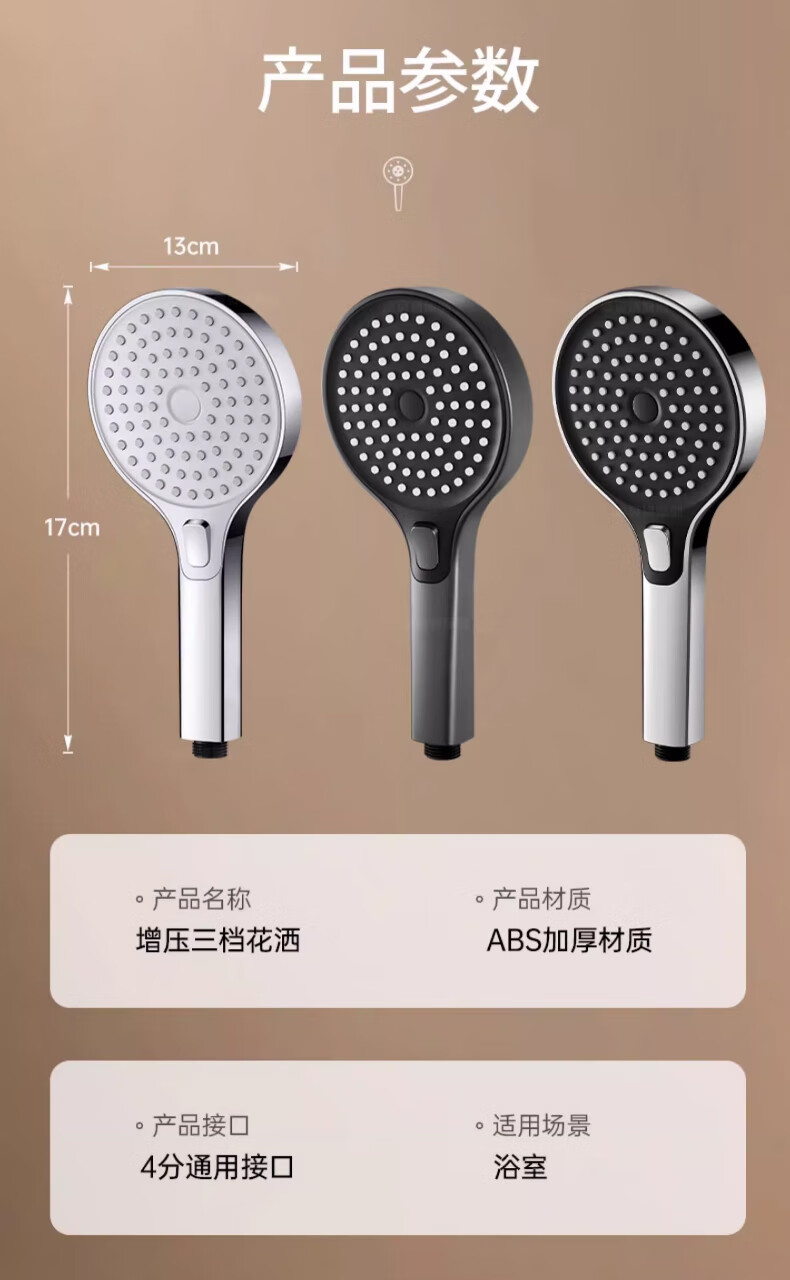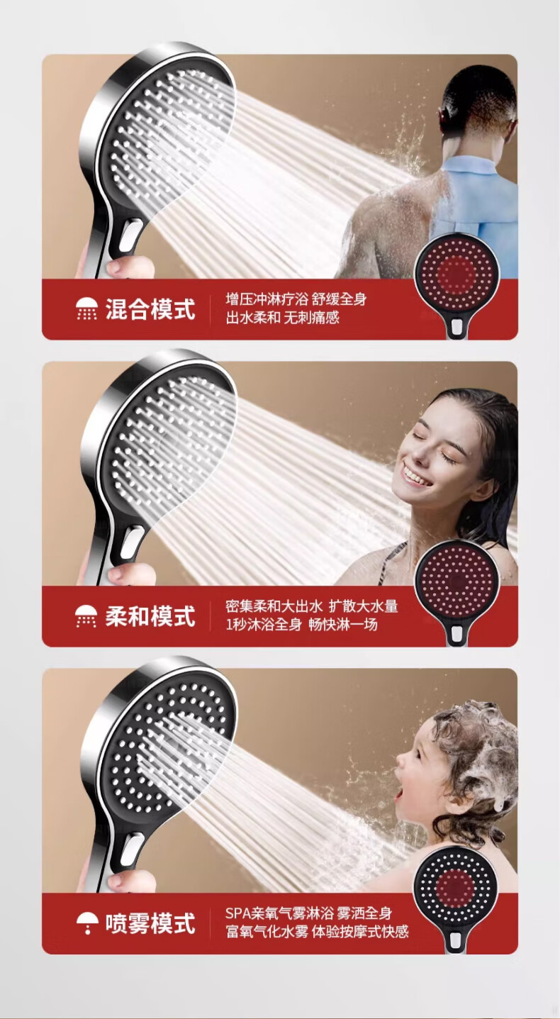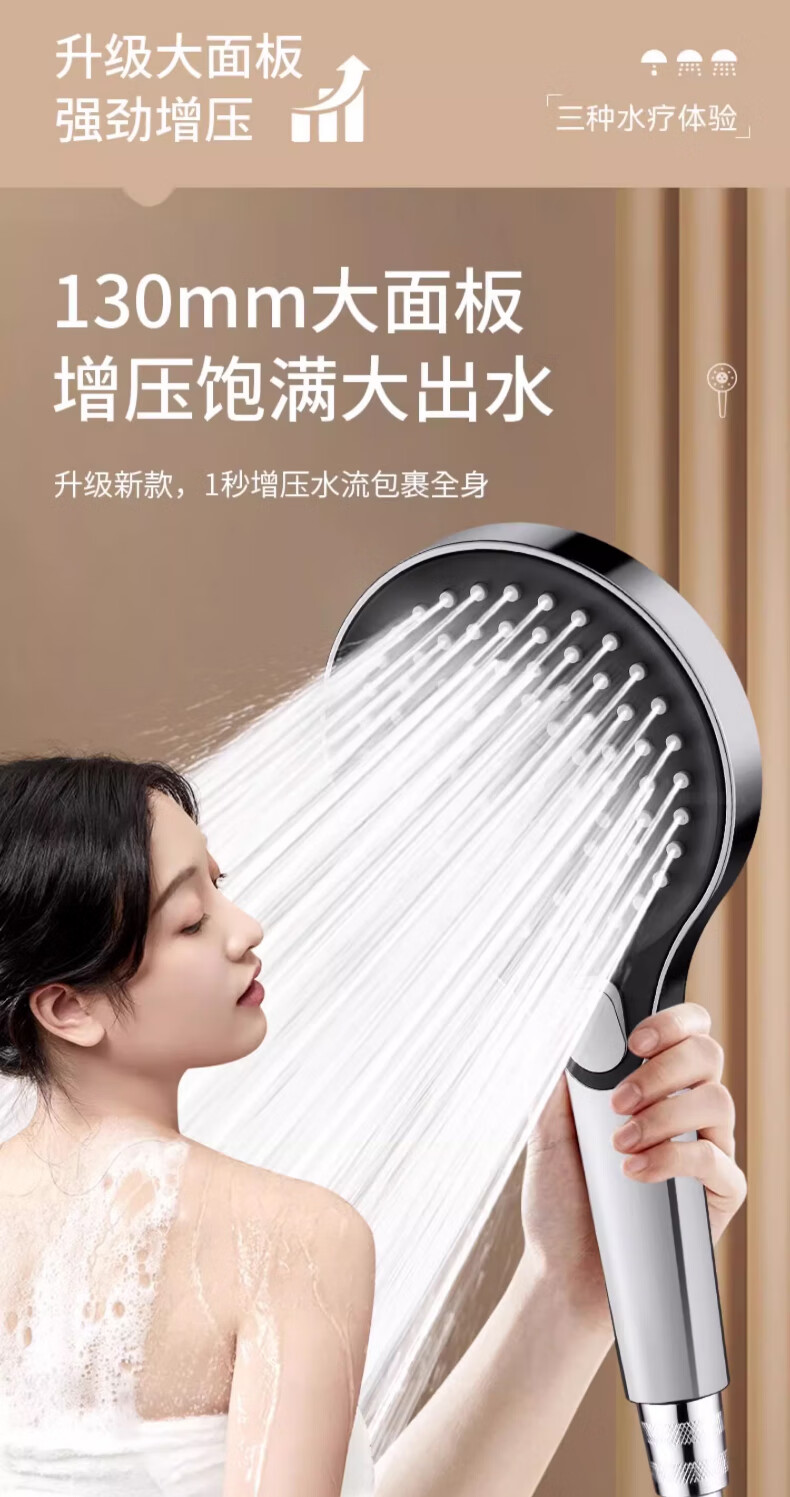 Dee's German turbocharged shower head super pressure shower faucet large water output shower head set gun gray 3-speed supercharged shower head super version