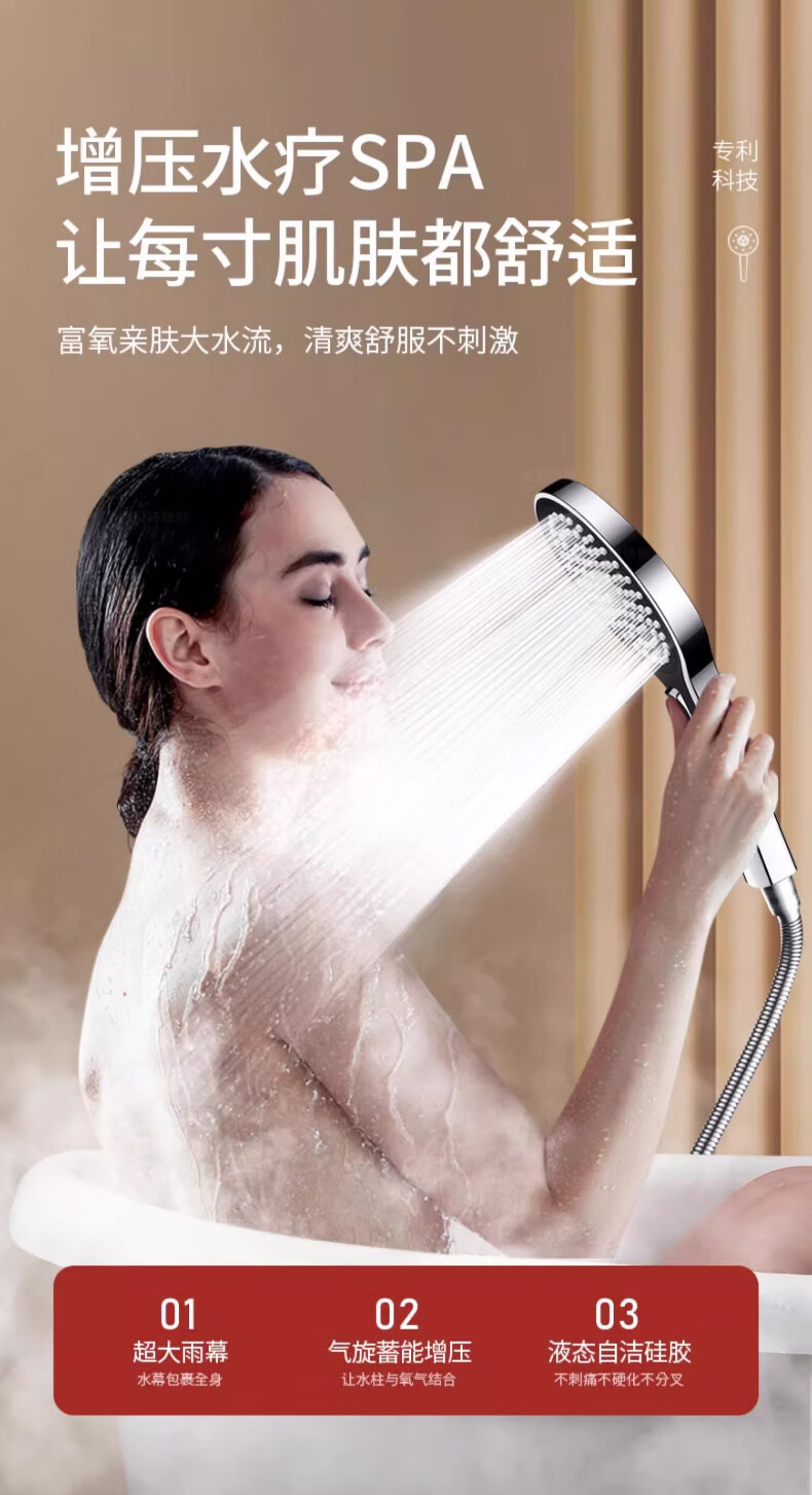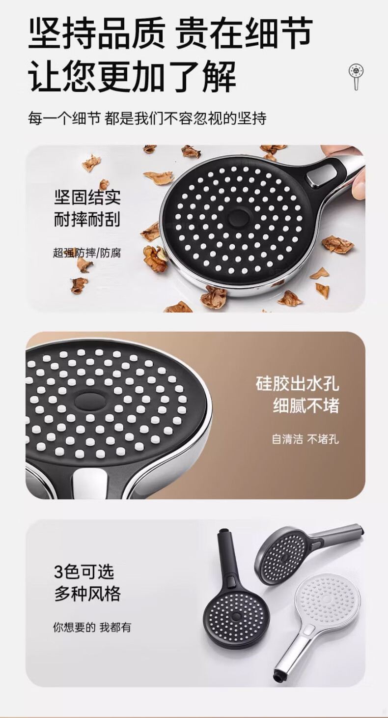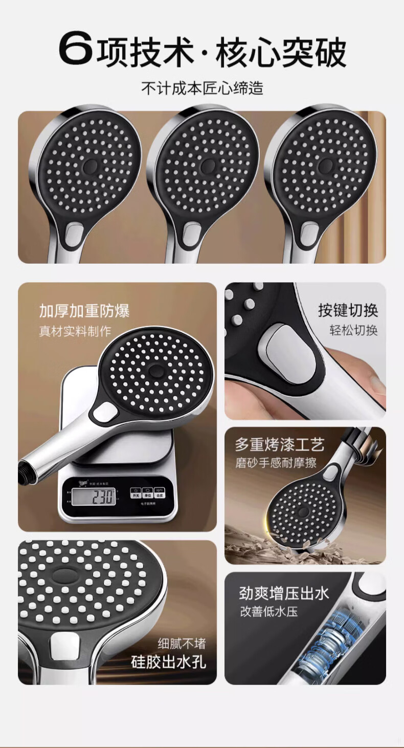 Dee's German turbocharged shower head super pressure shower faucet large water output shower head set gun gray 3-speed supercharged shower head super version
