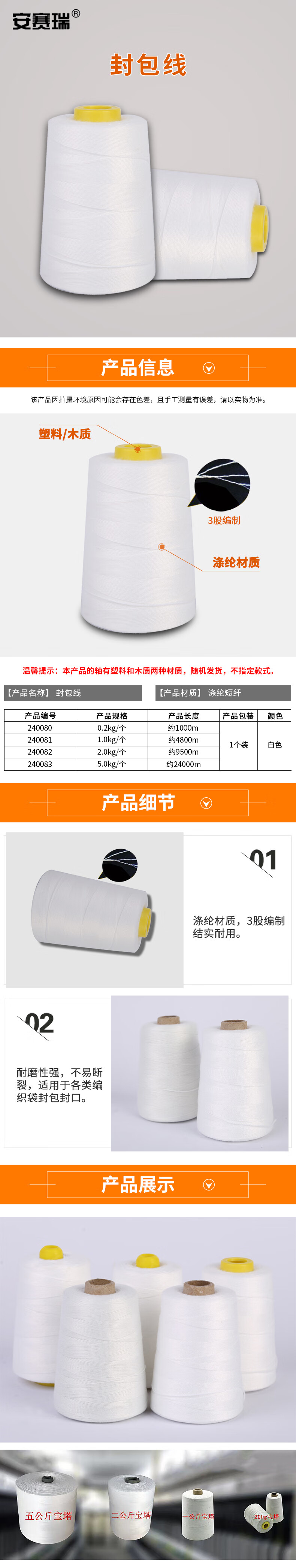Ansery sewing thread, woven bag snakeskin bag sealing thread, sealing thread, portable electric sewing machine sewing thread wrapping thread, white, about 24,000 meters 240083