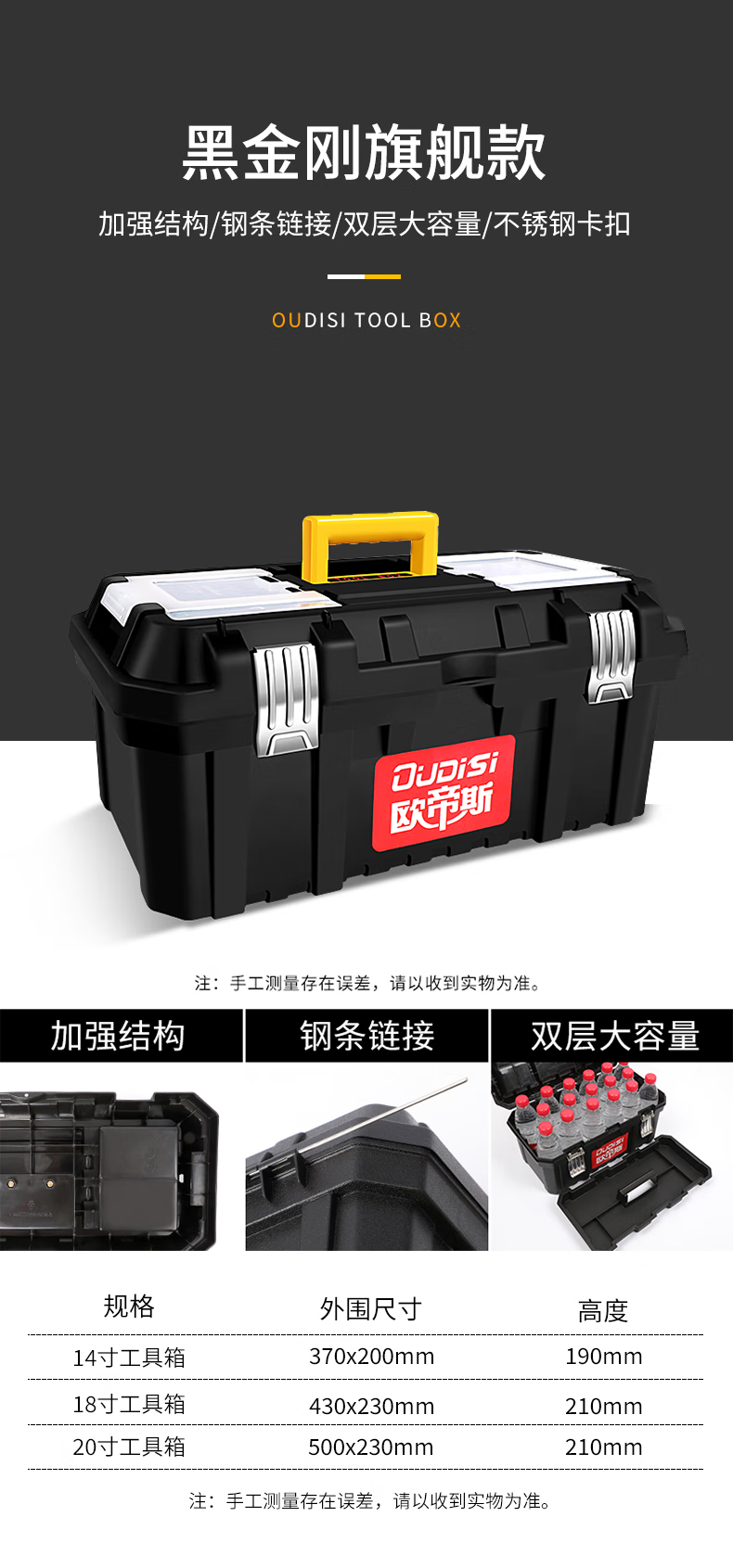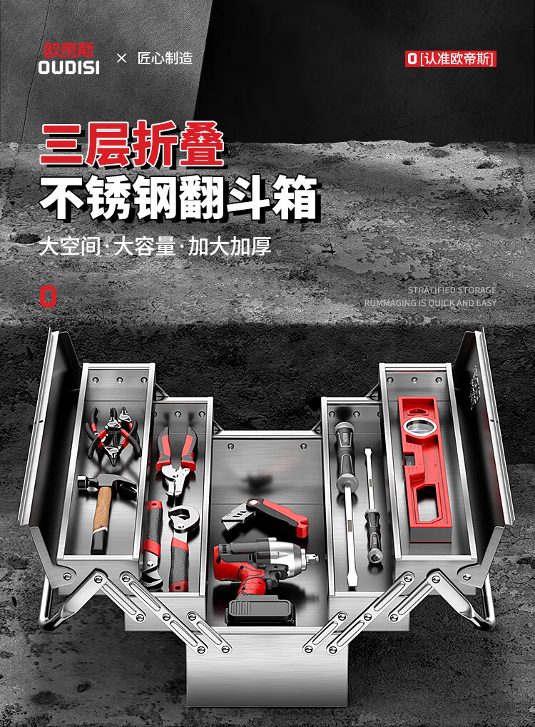 Otis tool box storage box industrial-grade three-layer folding stainless steel tool box full set of household hardware car storage box 17-inch economical double-layer tool box