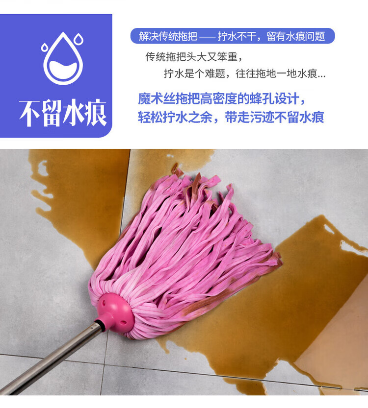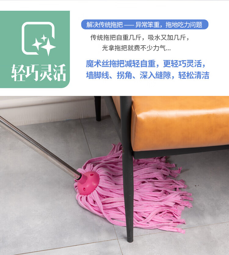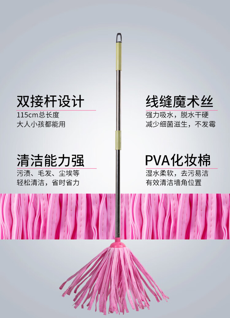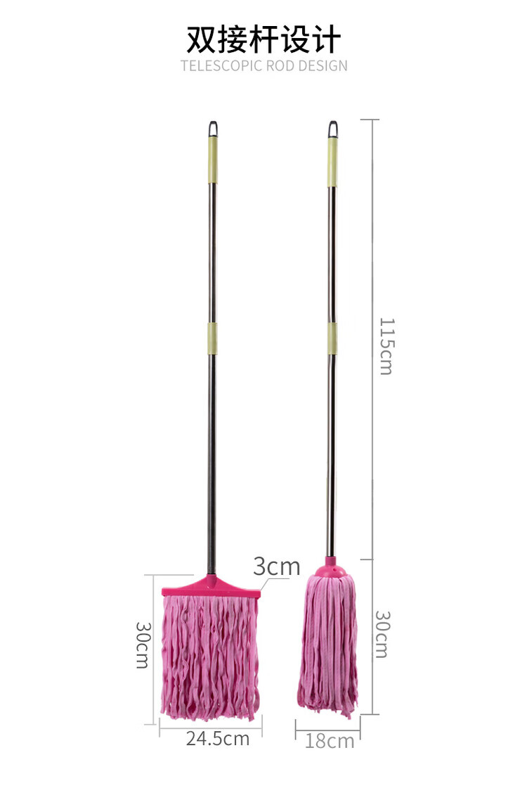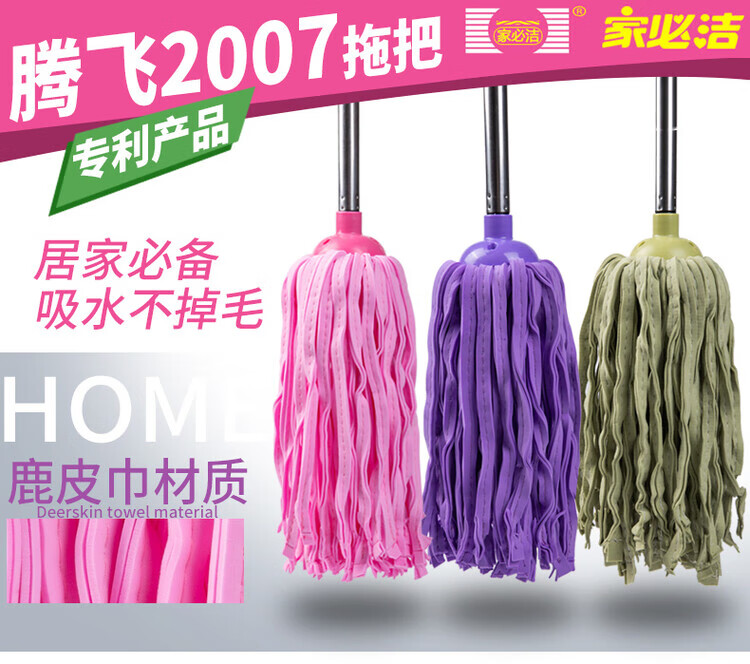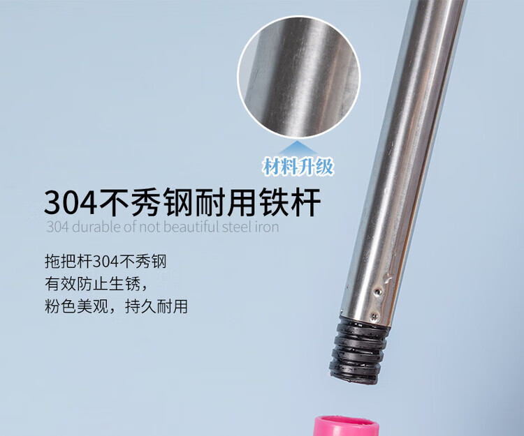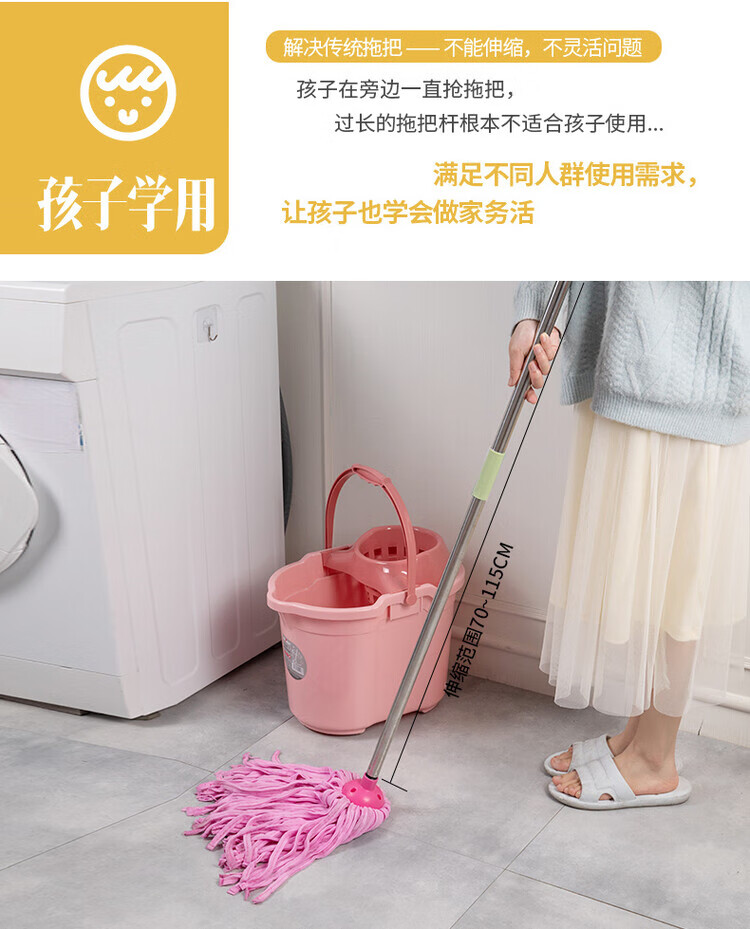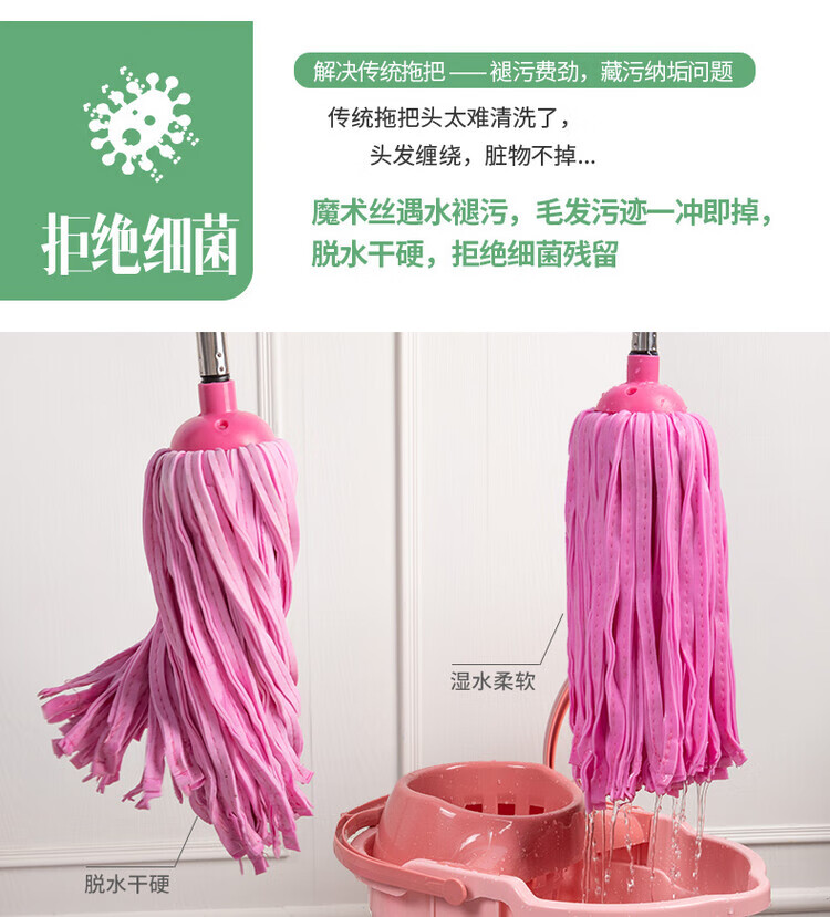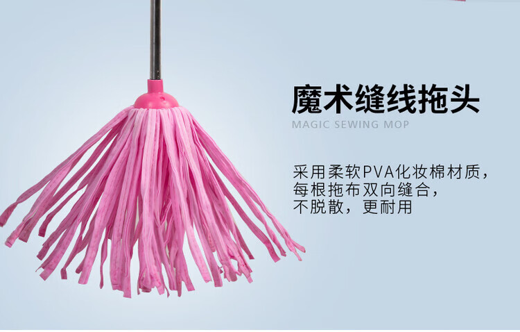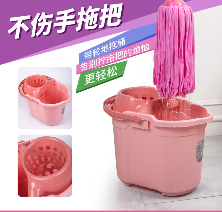 Deerskin mop with bucket towel chicken skin squeeze water household mop sponge soaring mop water absorbent stainless steel (round) pink 1 rod + 1 head