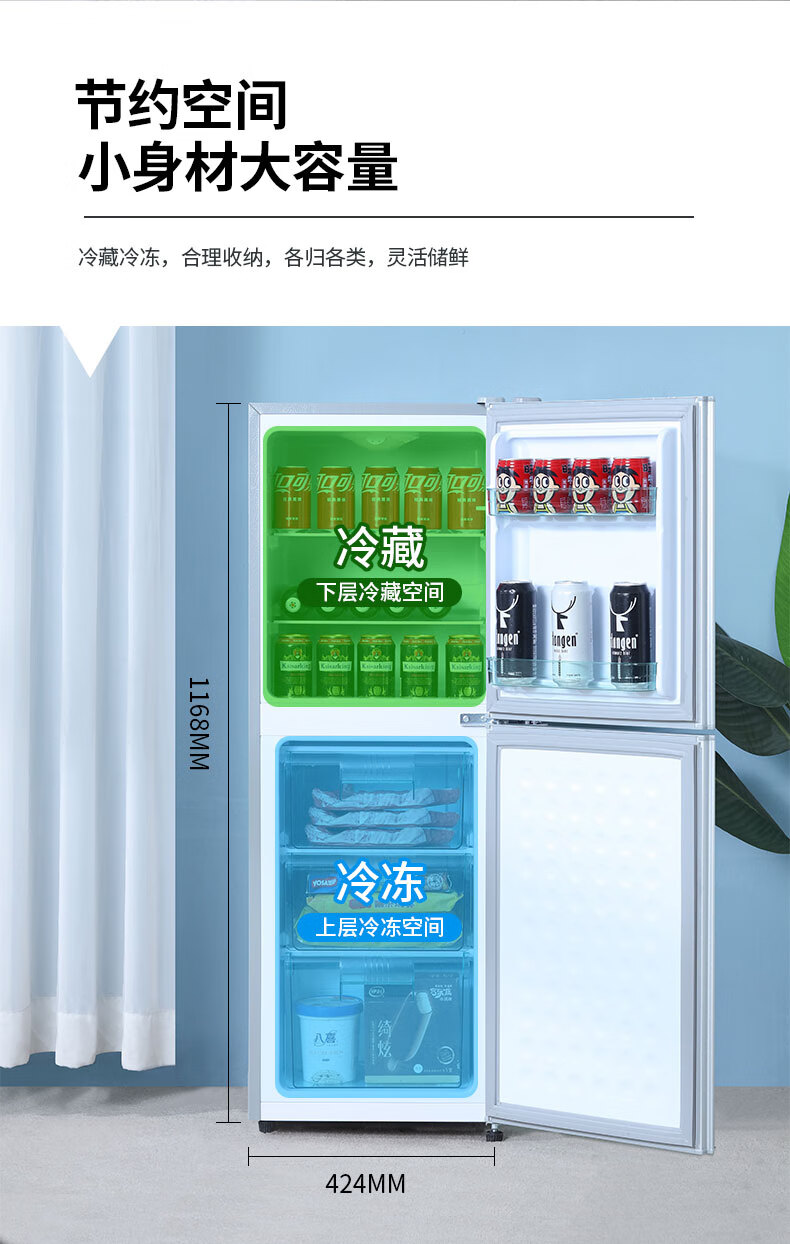 Oaks refrigerator household small refrigerated and frozen dual-purpose rental housing dormitory office medium-sized large-capacity refrigerator energy-saving drawer model 228 upgraded model 3 layers of freezer 4 layers of refrigeration 130L