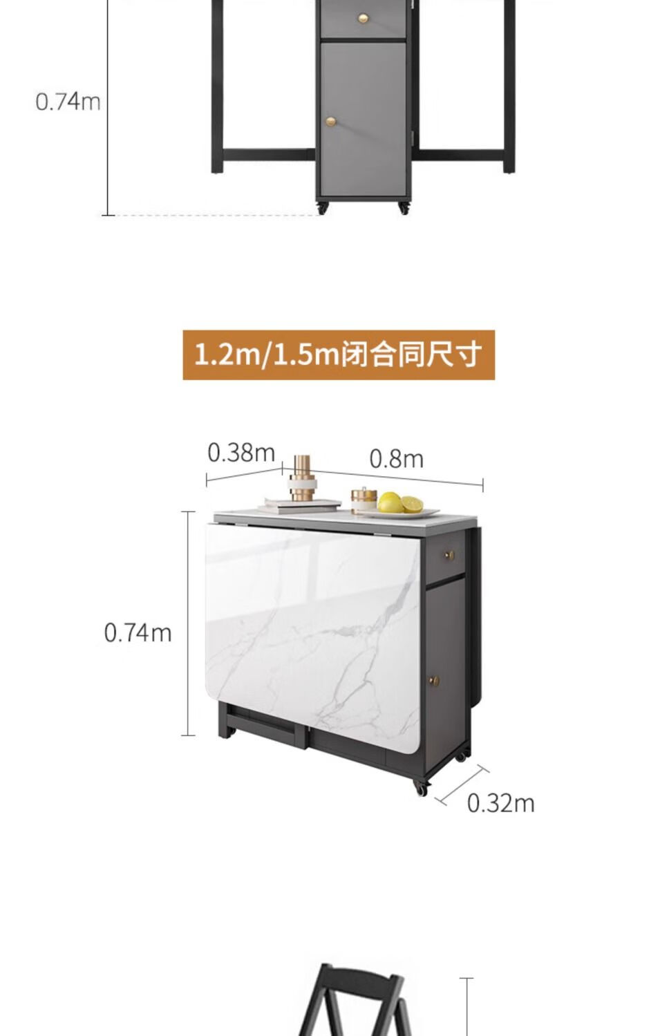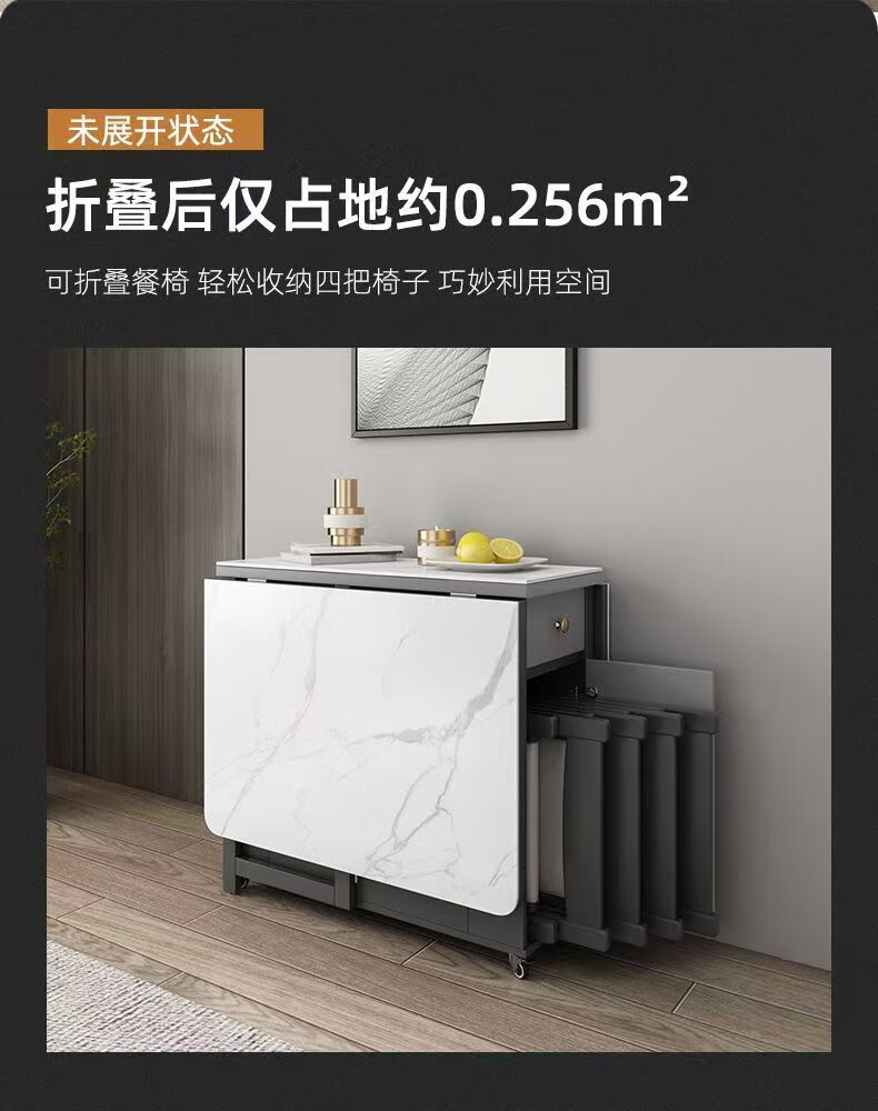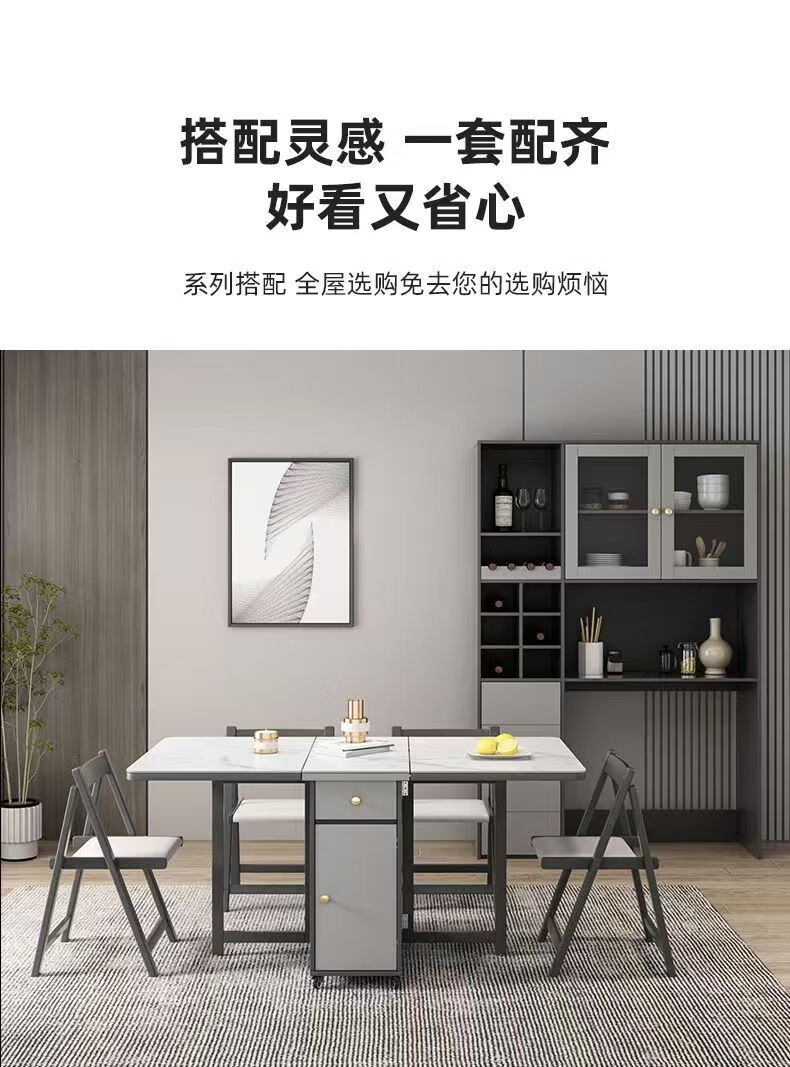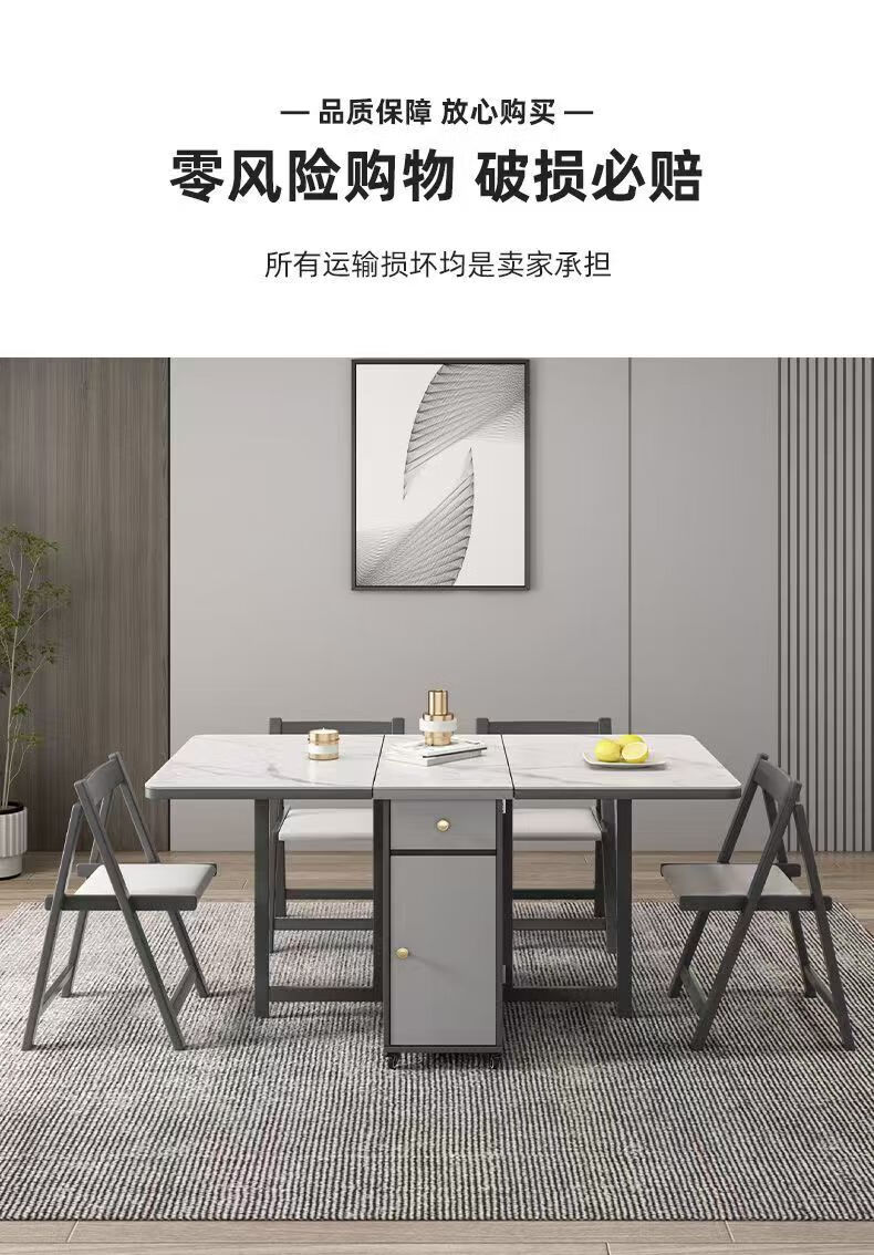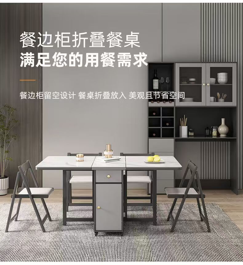 Jinni Yilan slate folding dining table modern simple household small apartment retractable folding dining table and chair combination movable table with sideboard (1.2*0.4*1.85)