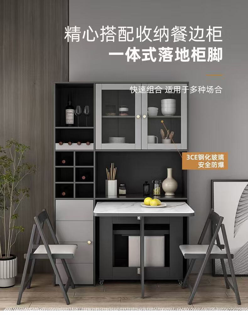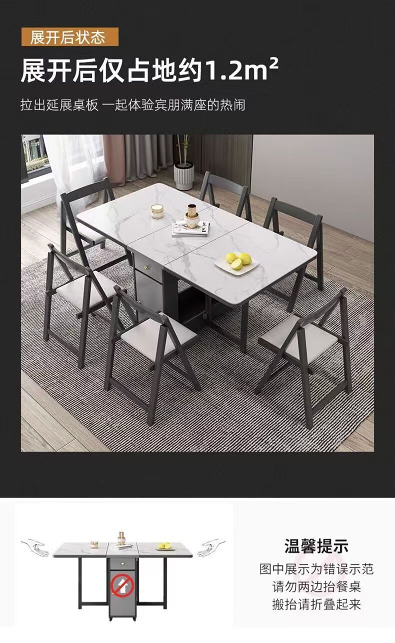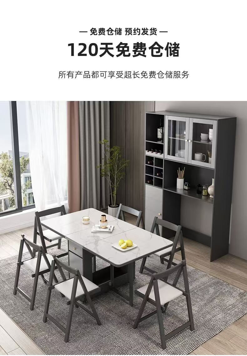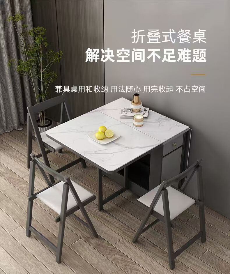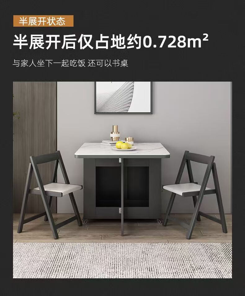 Jinni Yilan slate folding dining table modern simple household small apartment retractable folding dining table and chair combination movable table with sideboard (1.2*0.4*1.85)