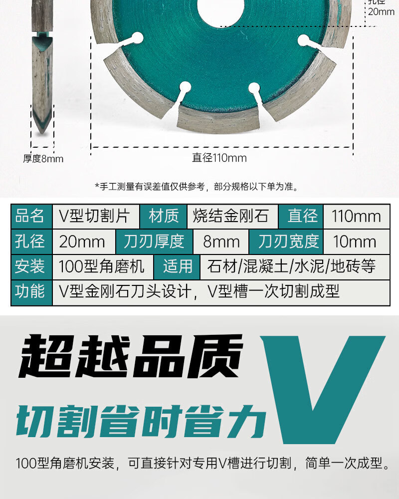 Shushe V-shaped slotted floor floor crack repair angle grinder grinding wheel expansion joint cutting piece stone thickened saw blade V-shaped 110 cutting blade thickened 7mm