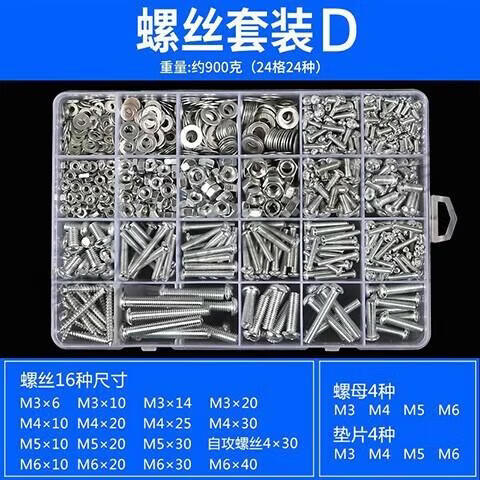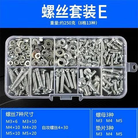Shantou Lincun screw nut set round head cross washer machine screw bolt screw cap M3M4M5M6 self-tapping screw household E set of 13 kinds about 250 grams