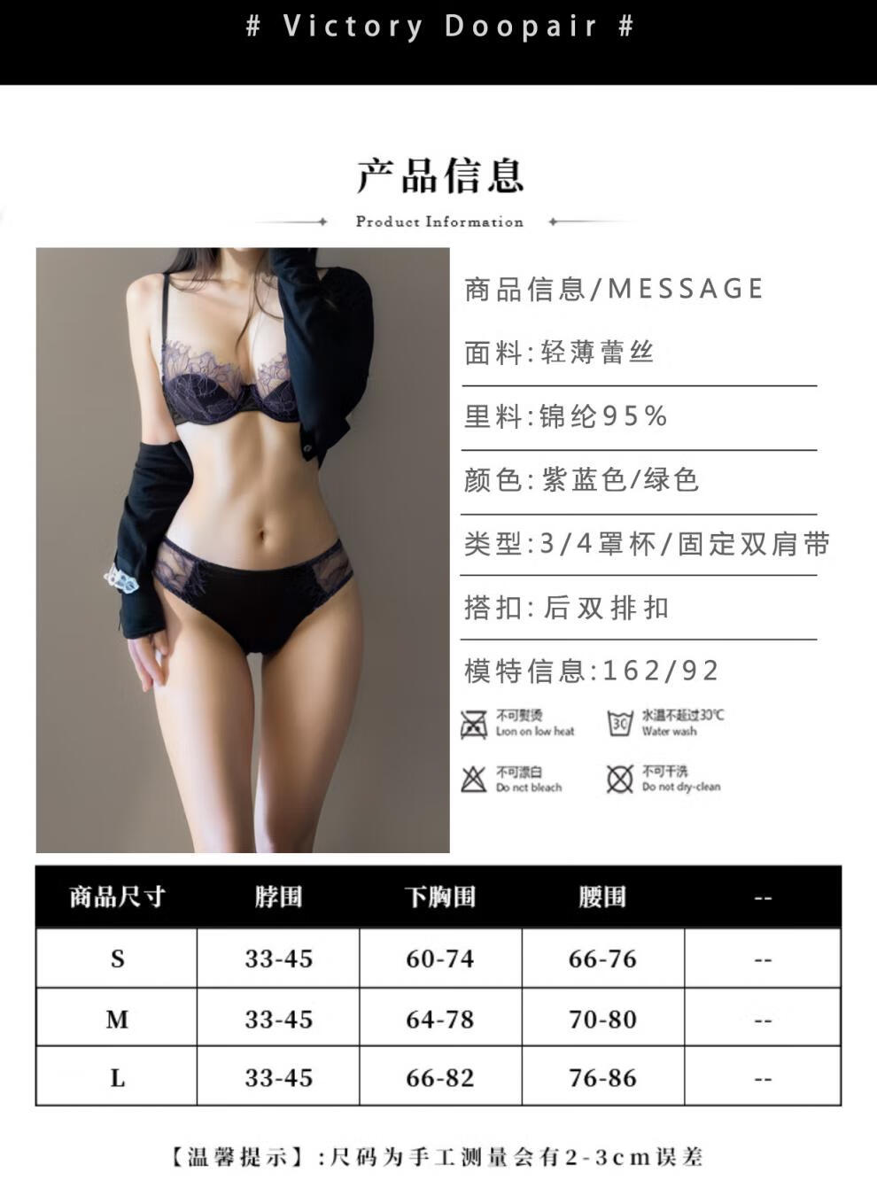 Victoria's Secret Sexy Lace Underwear Set Women's Thin Push-Up No-Empty Cup Big Breast Showing Small Pure Desire Bra Green Set 75B 34