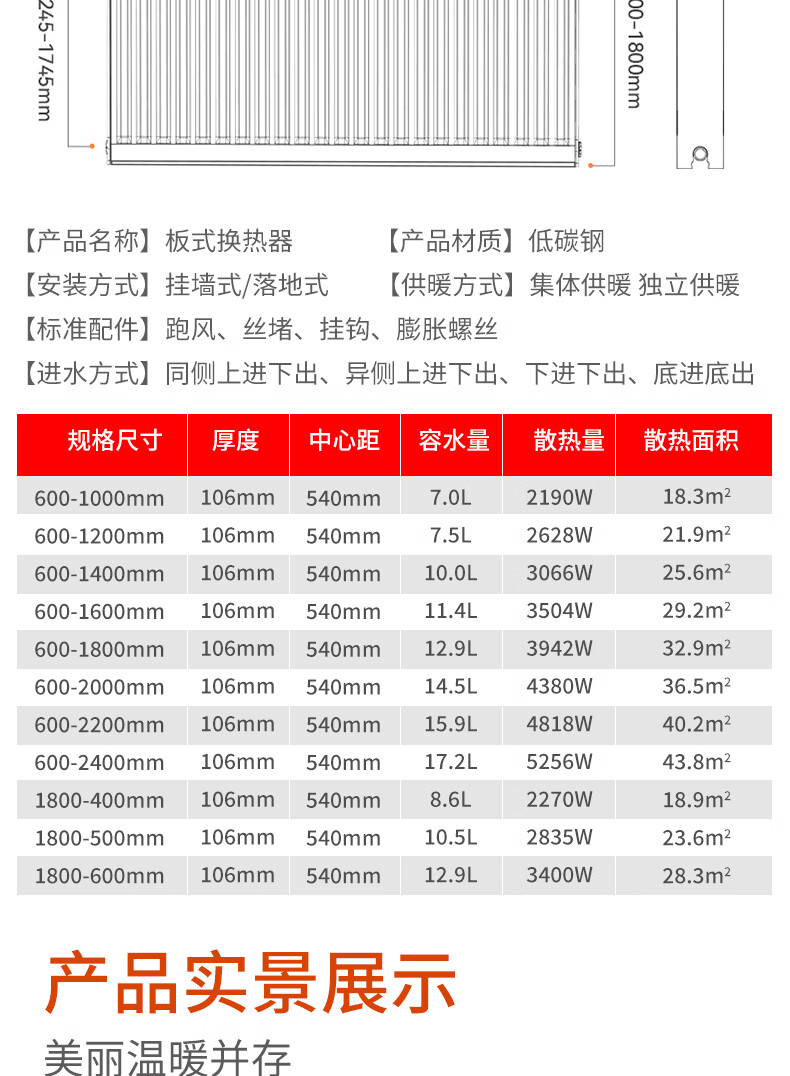 Pupan imported steel plate radiator wall-mounted home decoration plumbing wall-mounted radiator wide water channel large flow 600 height long 600 heating 7-9 square meters
