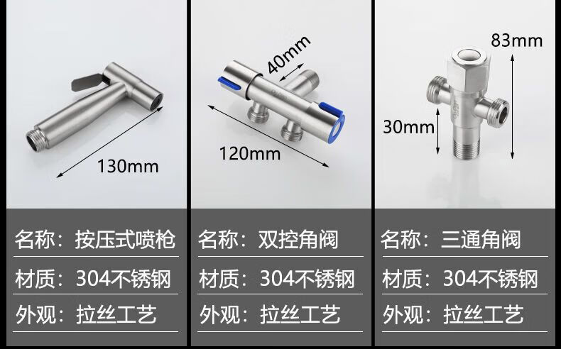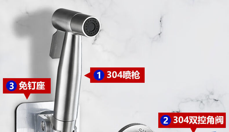 Jiumu Wangshijia JMOOWO304 stainless steel toilet spray gun faucet bidet booster nozzle toilet bathroom companion flushing water gun spray gun + 1.5 meter pipe + no punching + three-way angle valve