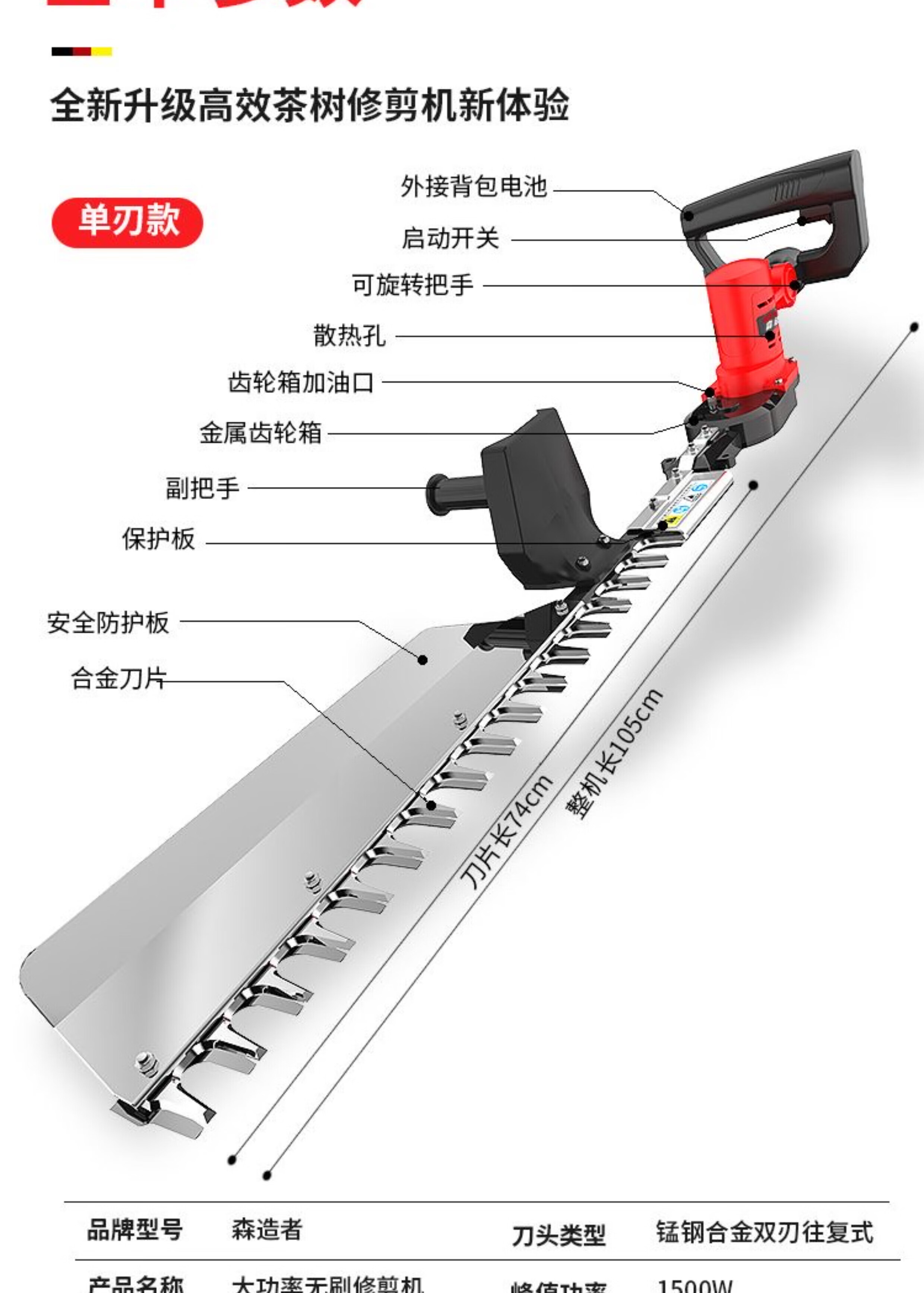 Ai style new brushless electric hedge trimmer rechargeable tea tea tree pruning machine landscaping community lithium pruning machine 24V dual with 20A backpack battery/8 hours