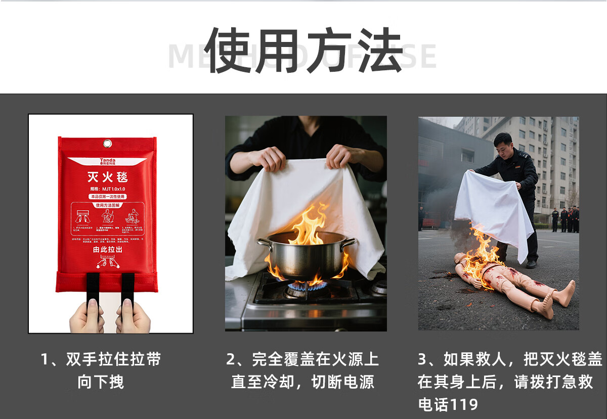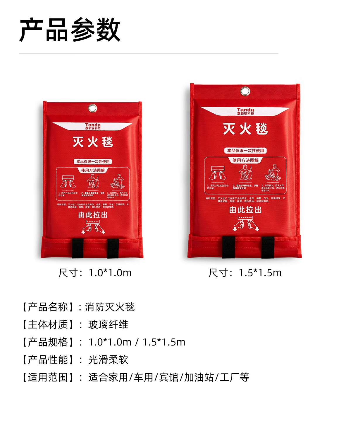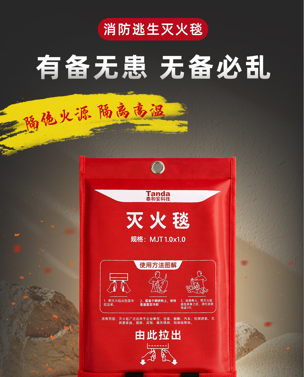 Taihean Tanda fire blanket 1m*1m fiberglass national standard fire blanket kitchen home hotel office building fire escape thermal insulation flame retardant fire blanket 1m*1m 500