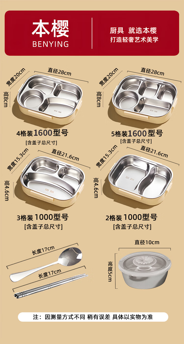 Honsakura 316 stainless steel food grade insulated lunch box for office workers with lunch box, microwaveable separate lunch box for students rice brown green-two compartments 1L medical grade 316 stainless steel (antibacterial rate 99%)