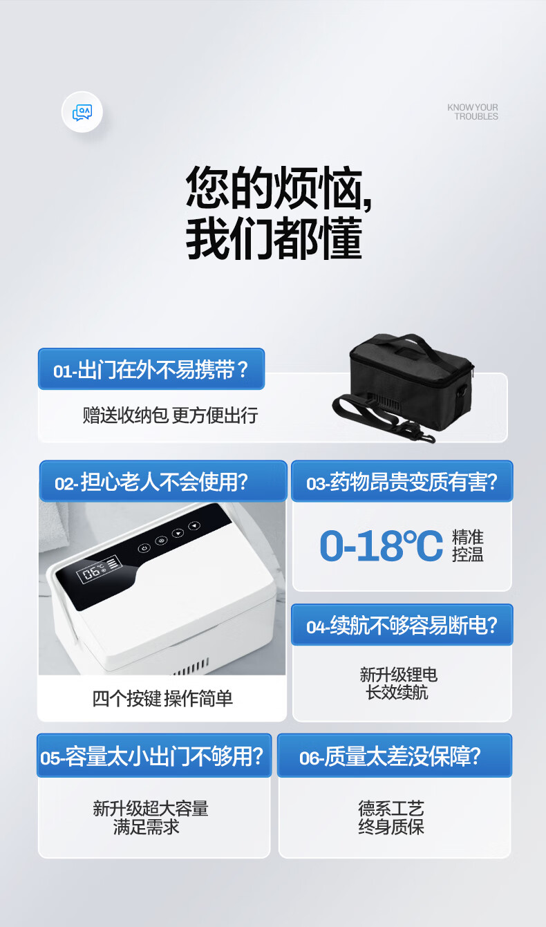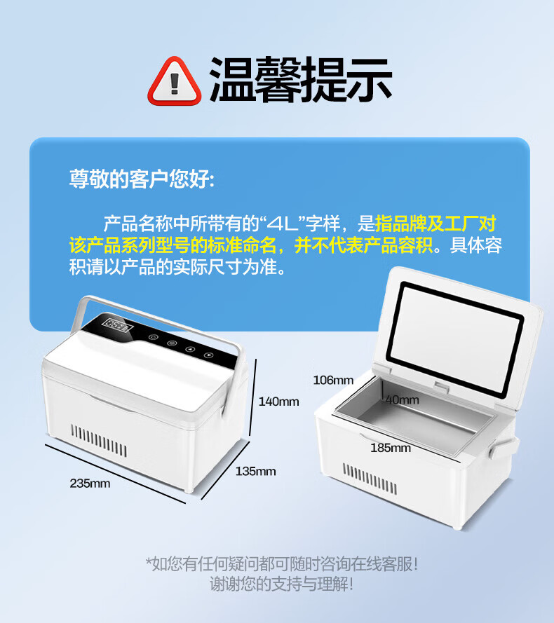 Mengxuan Insulin Special Refrigerator Carry-On 2-8 Degree Medical Refrigerator Pharmaceutical Growth Hormone Thermostat Super Capacity Top-Quality - Four Battery Life 24-48H 4L Large Capacity Rechargeable Portable Small Refrigerator Specially Used for Carry-On and Store Medicines