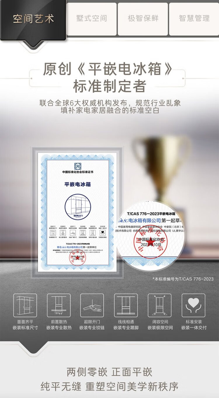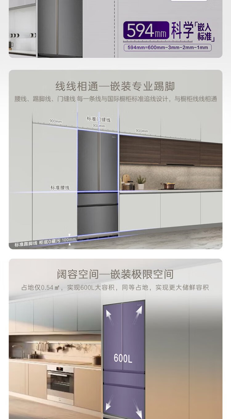 Casarte ultra-thin refrigerator 594mm 600 liter French refrigerator Original flat-mounted MRA low-oxygen storage and freshness automatic ice making machine Zhijing series Zhijing series + 600 liters + automatic ice making machine