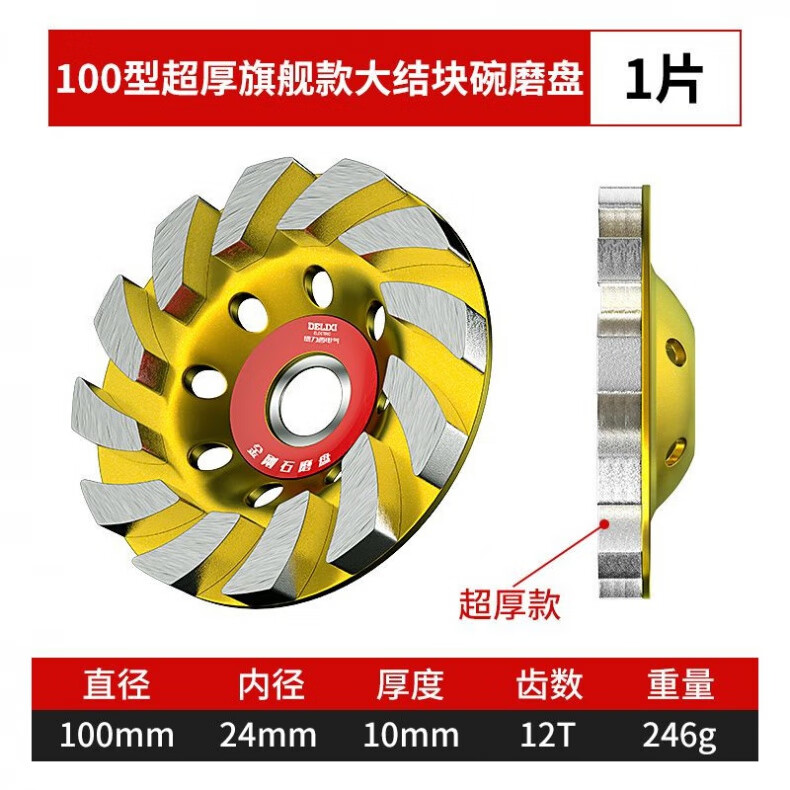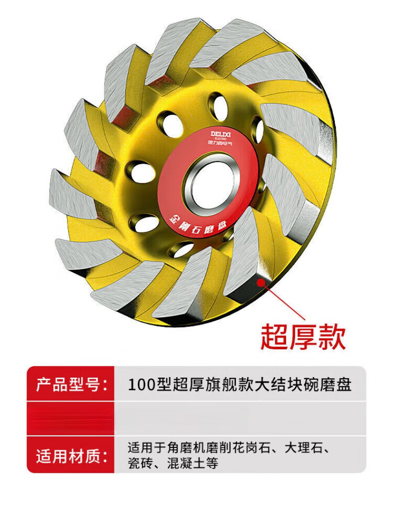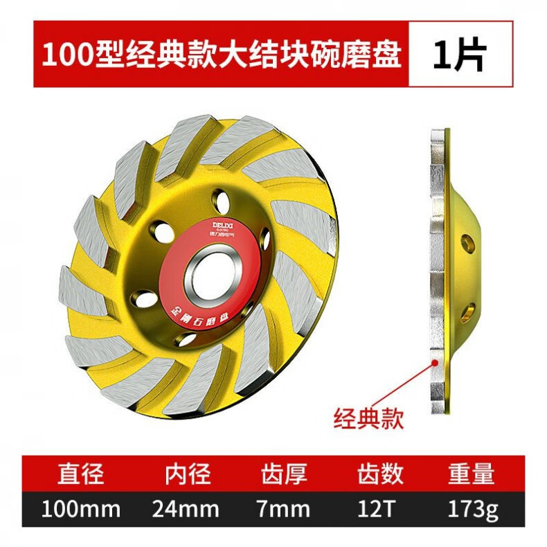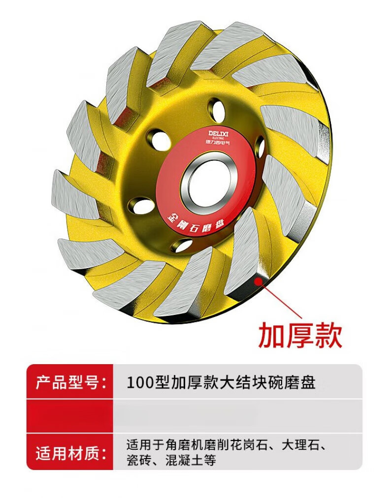 Delixi diamond angle grinder grinding disc cement floor wall concrete stone grinding disc polishing machine artifact bowl grinding disc 100 type classic large agglomeration bowl grinding disc 1 piece