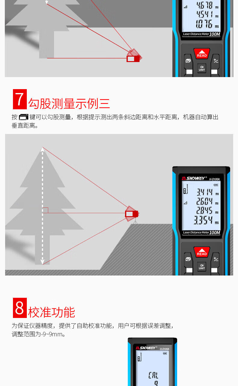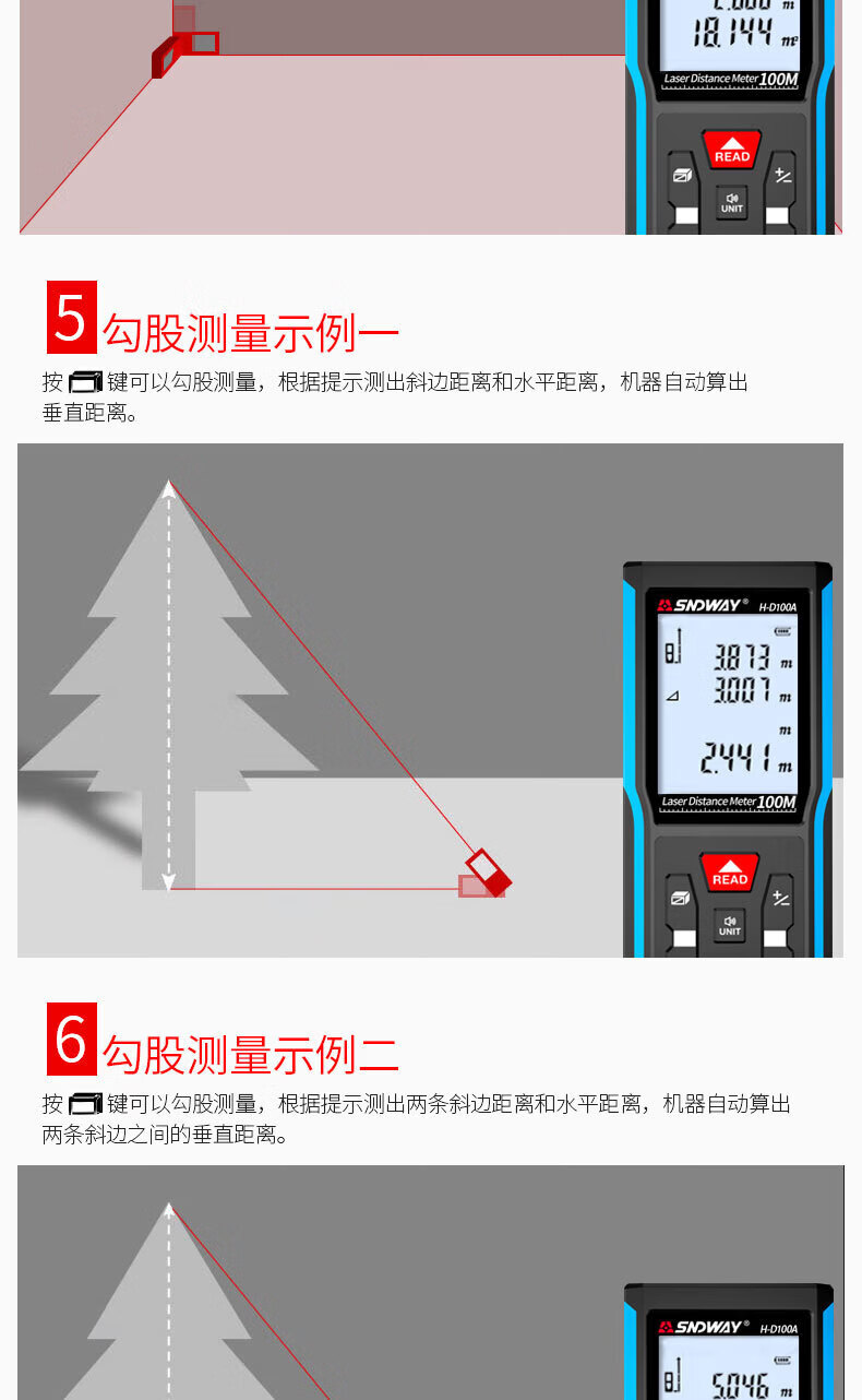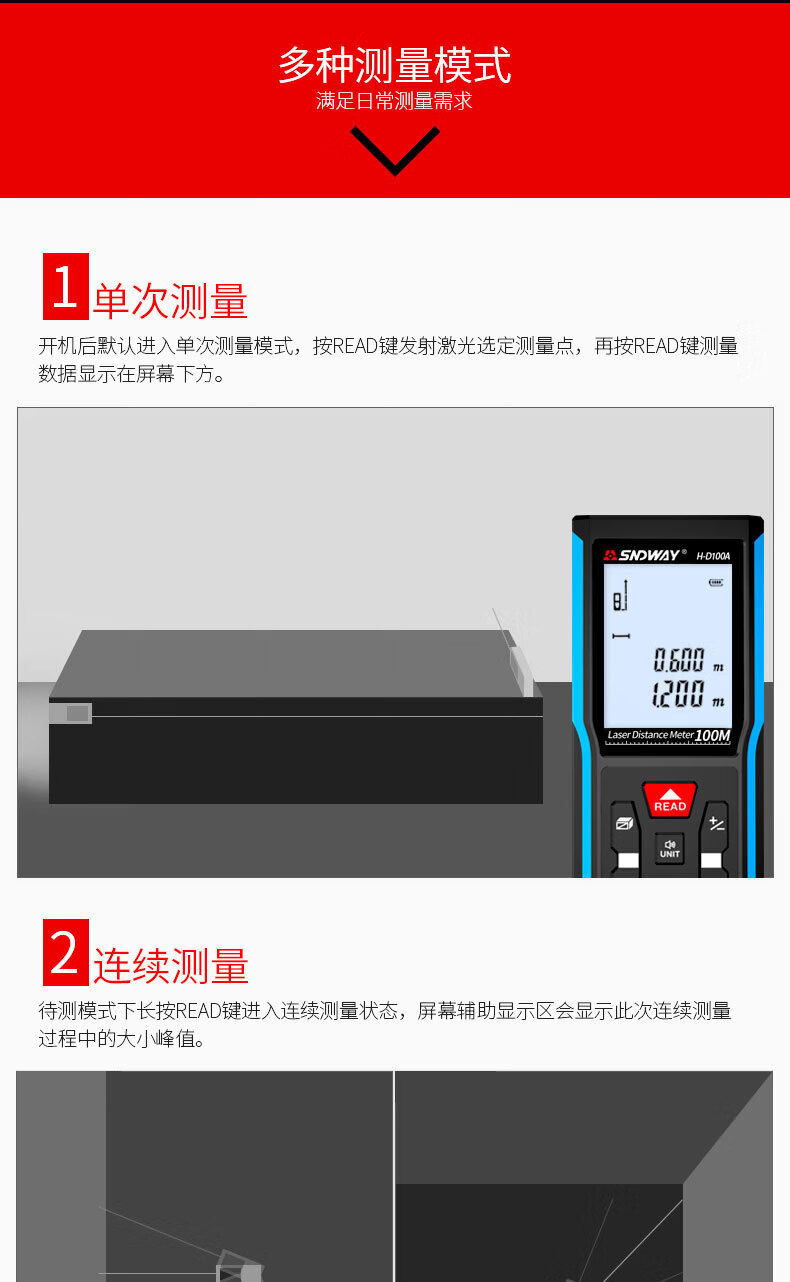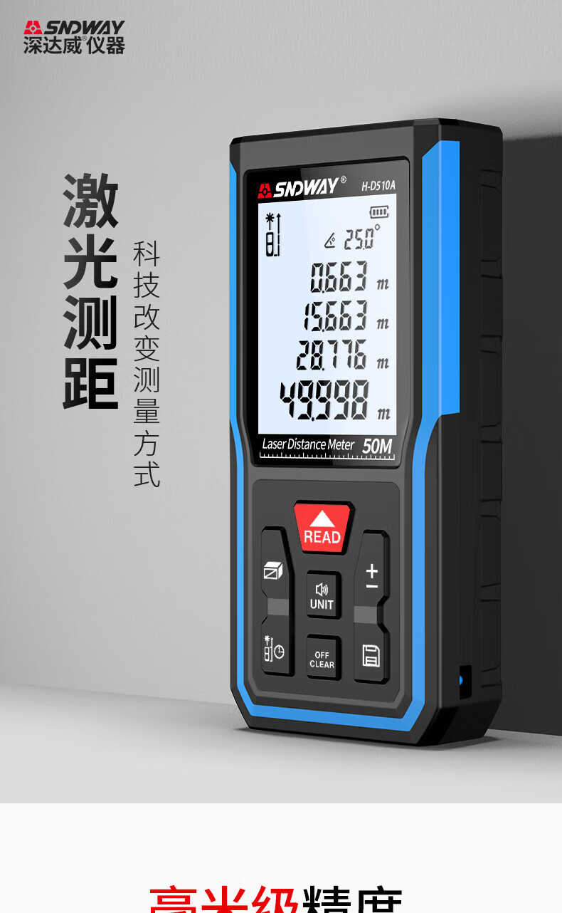 SNDWAY laser distance meter electronic meter ruler high-precision infrared laser ruler indoor and outdoor distance meter H-D100 ordinary battery model 100 meter distance meter