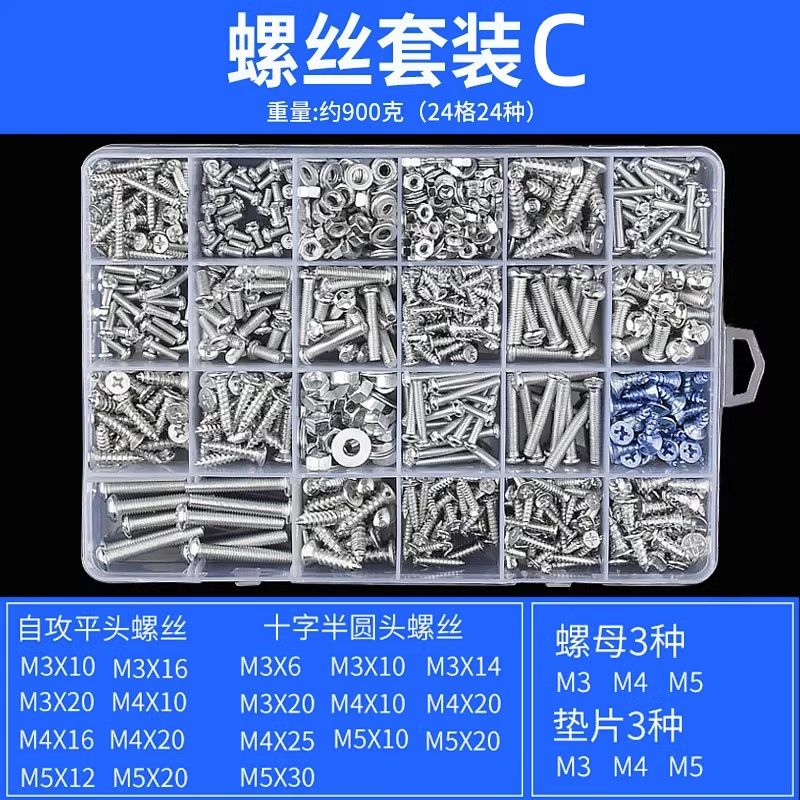 Haiyiduo household screws screw box set nuts nuts screws washers self-tapping screws set M2M3M4M5M6 B set 18 kinds about 500 grams