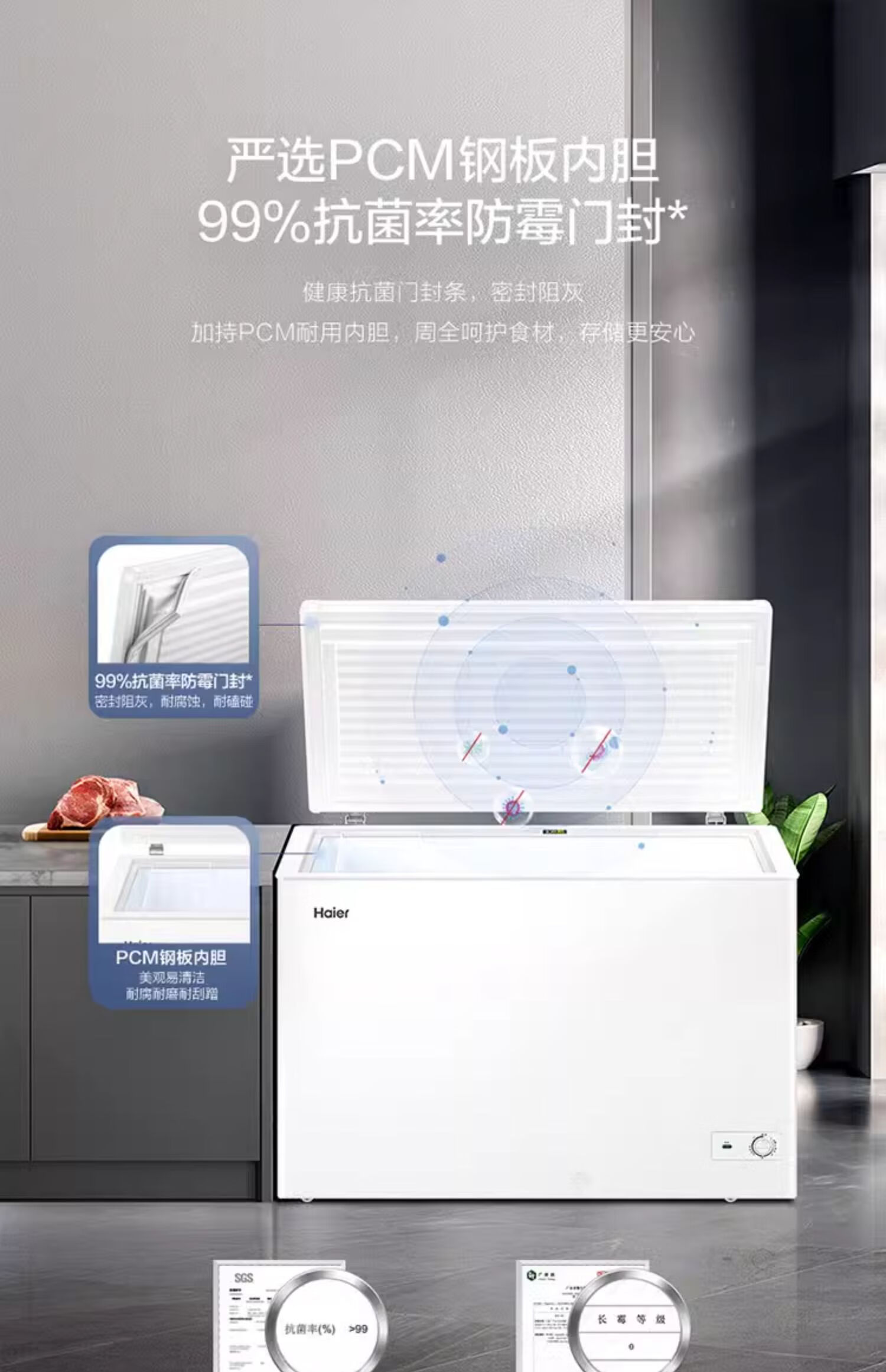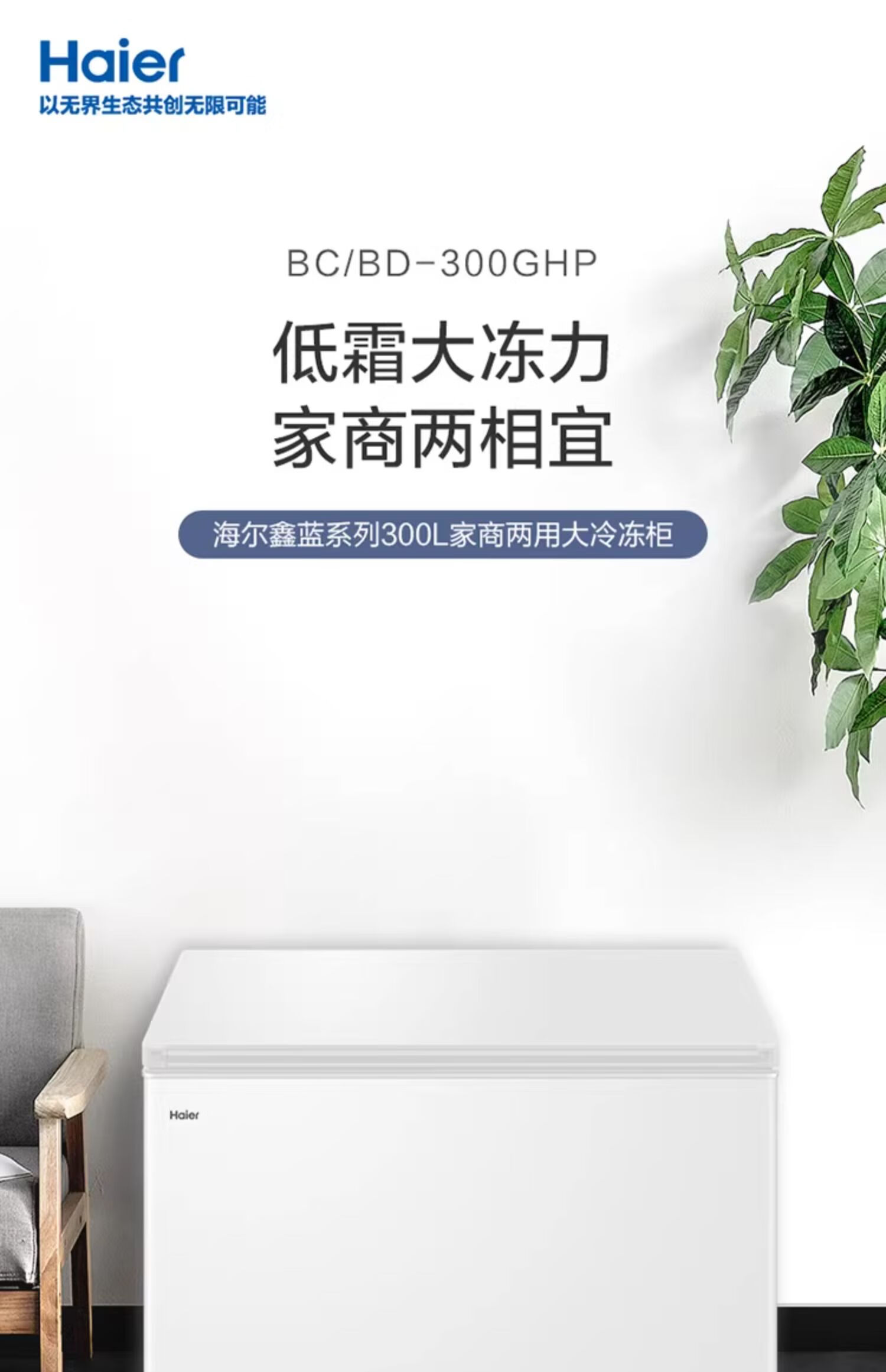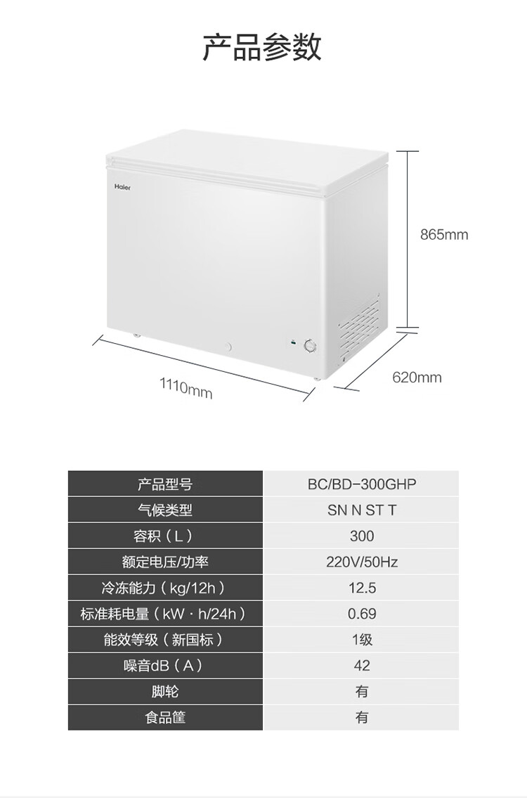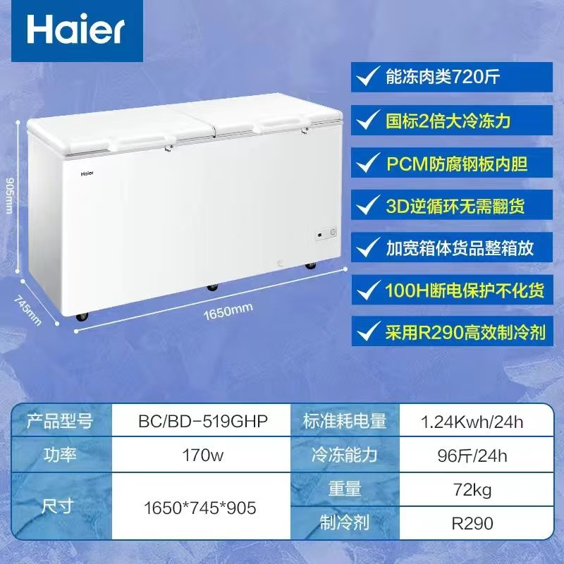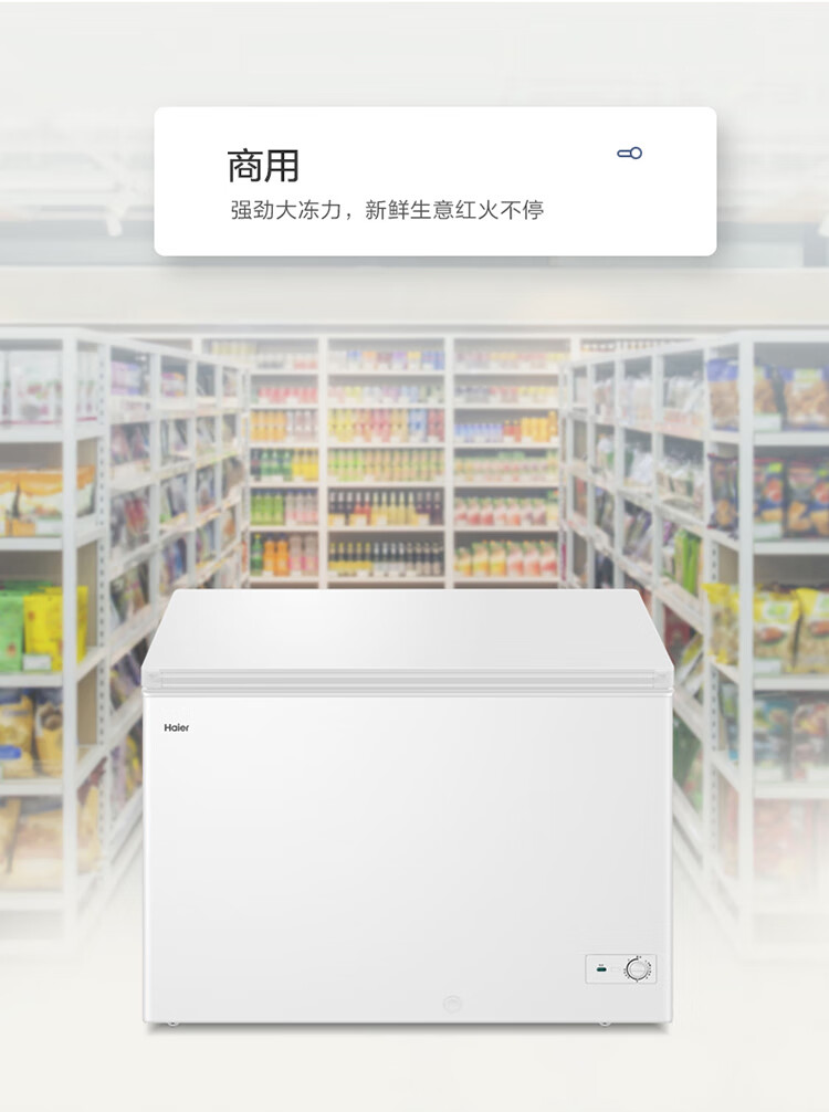 Haier Haier Freezer 300L Refrigerated Refrigeration Conversion Large Capacity White Horizontal Commercial Freezer Household Single Temperature Freezer Commercial Refrigeration Level 1 Energy Efficiency Freezer 379L