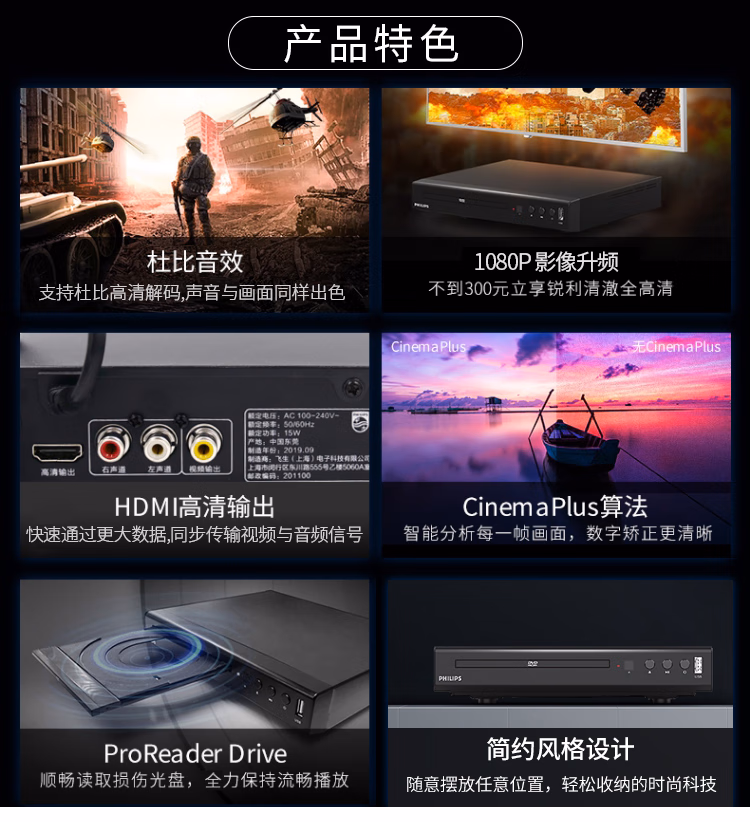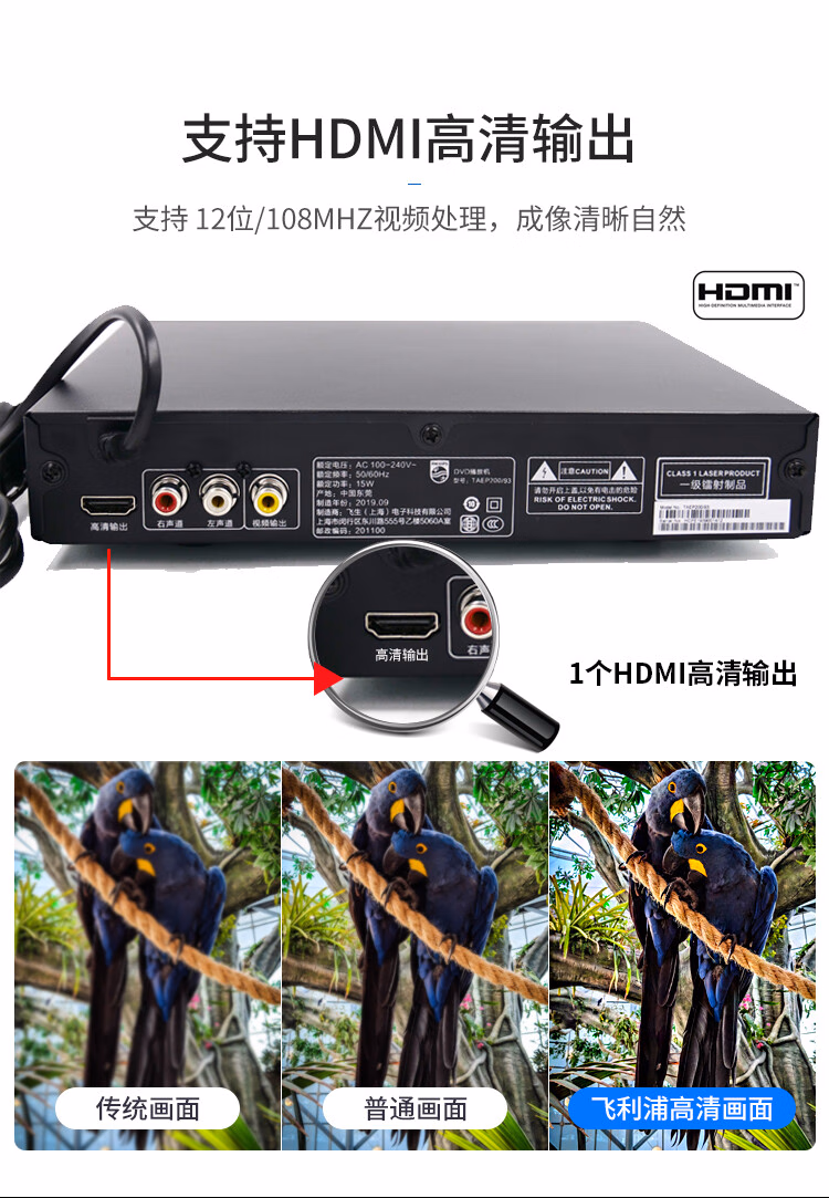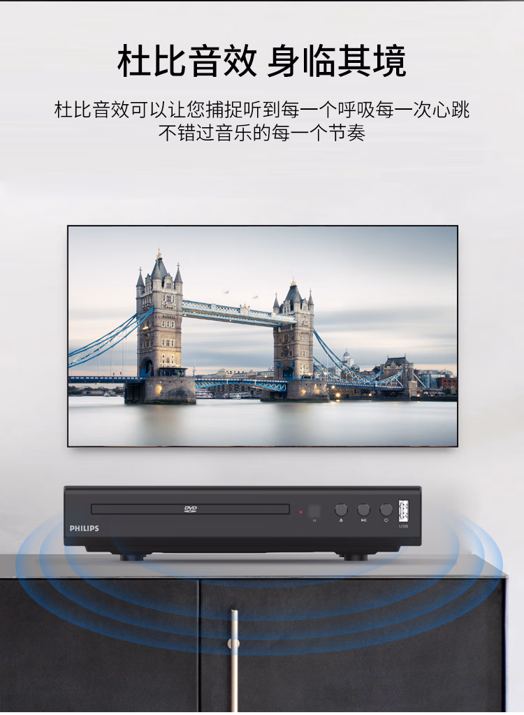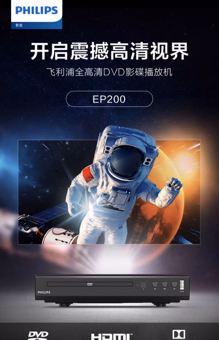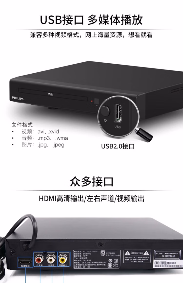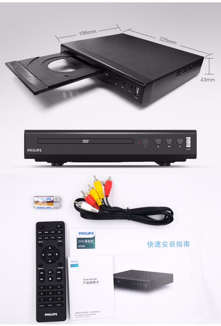 Philips (PHILIPS) TAEP200 powerful disc reading CD VCD DVD player home playback machine non-Blu-ray USB playback TAEP200+HDMI high-definition cable